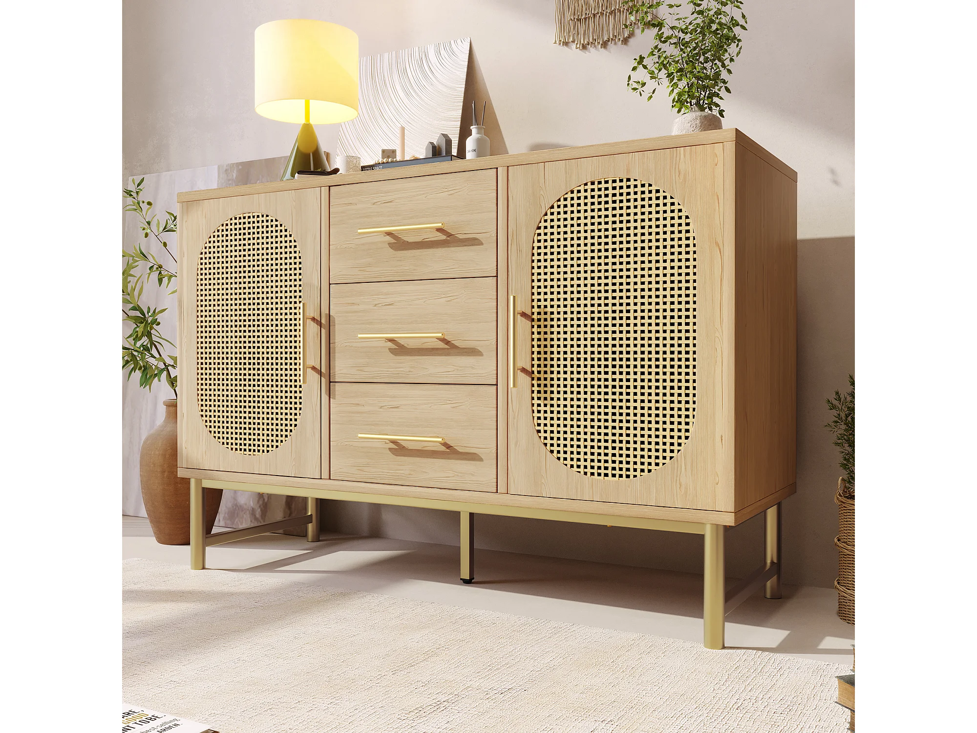 Buffet 120x40x74 cm, 3 tiroirs et 2 portes, étagère réglable, métal et panneaux de particules, chêne Sonoma
