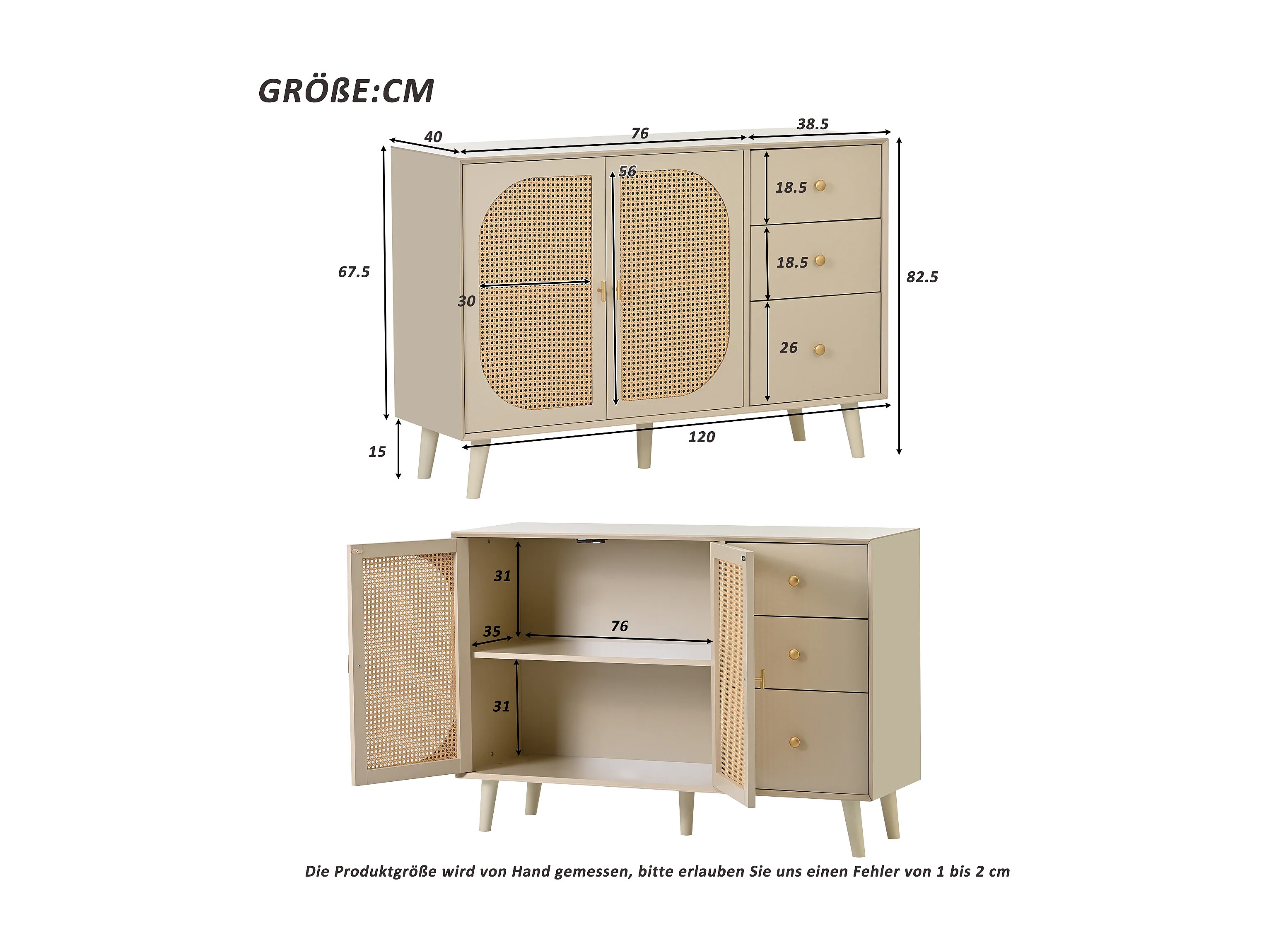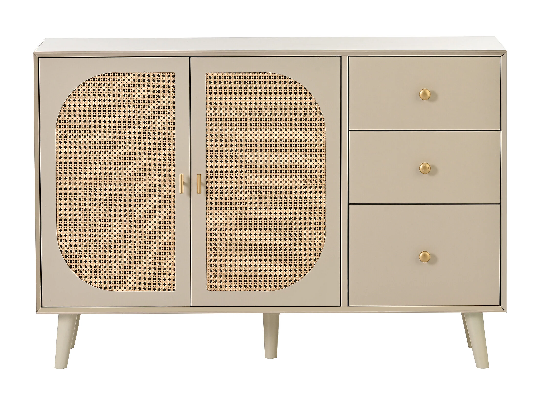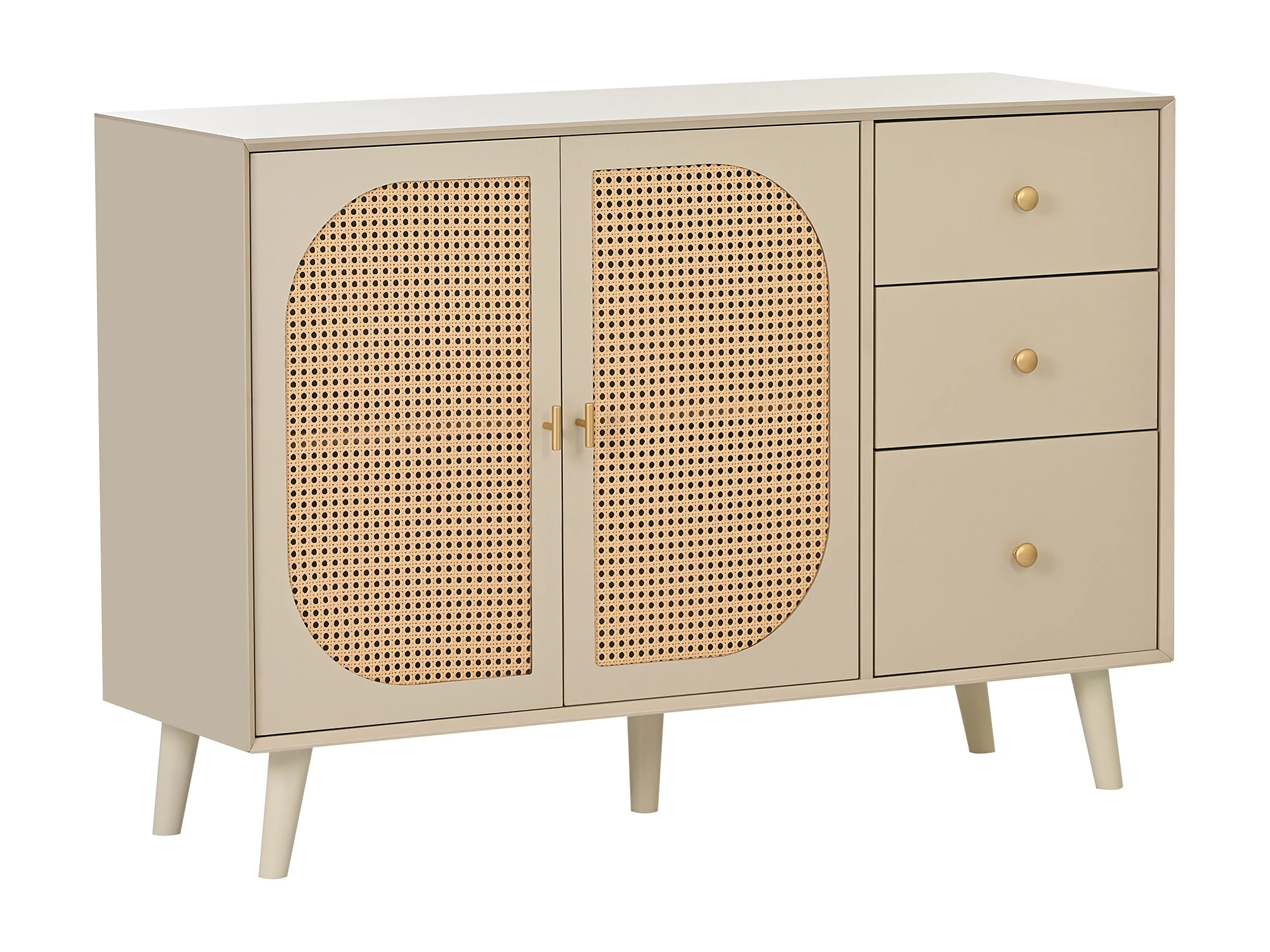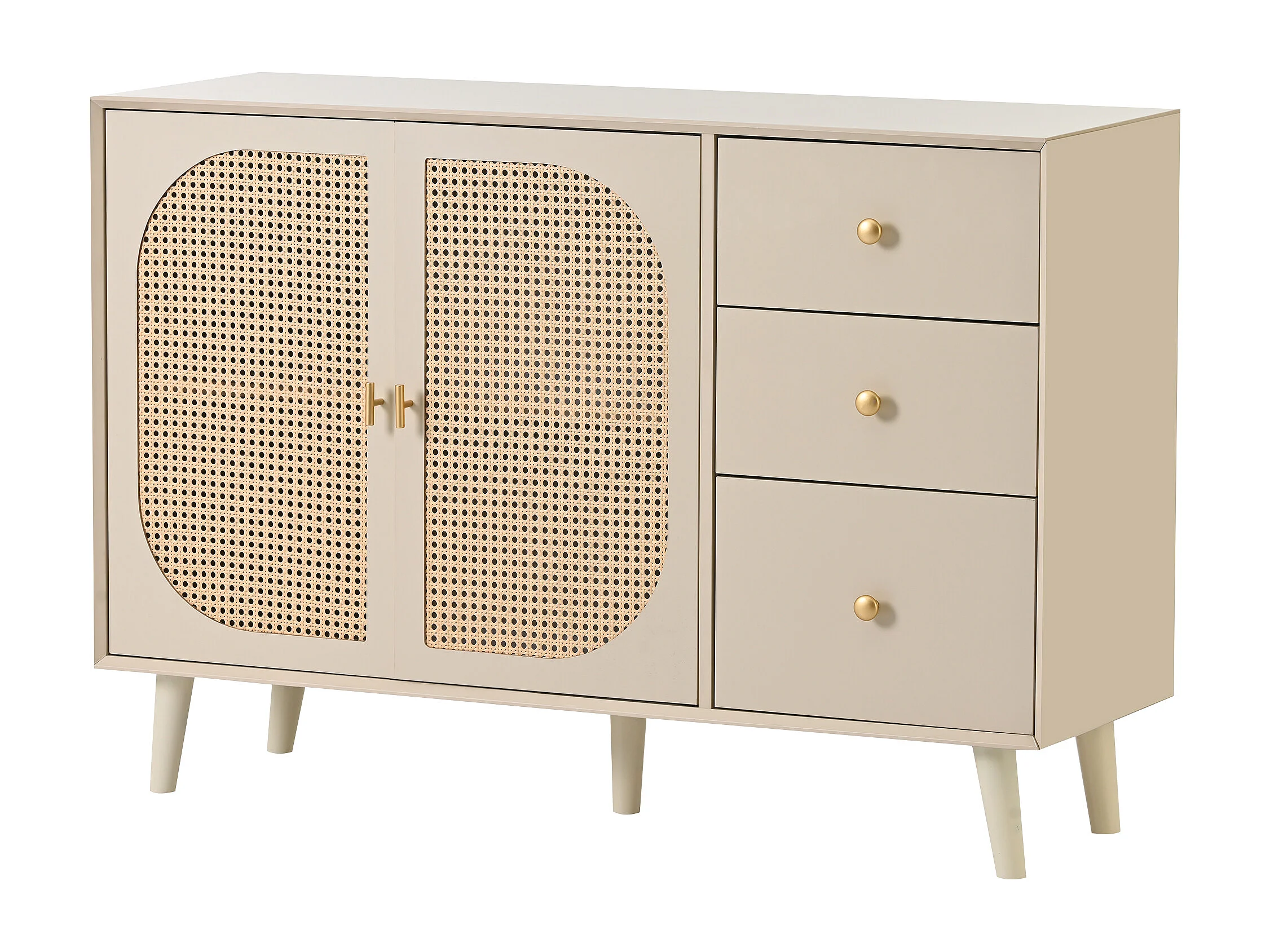 Buffet 120x40x82.5 cm, 2 portes et 3 tiroirs, push to open, panneaux de particules, blanc cassé