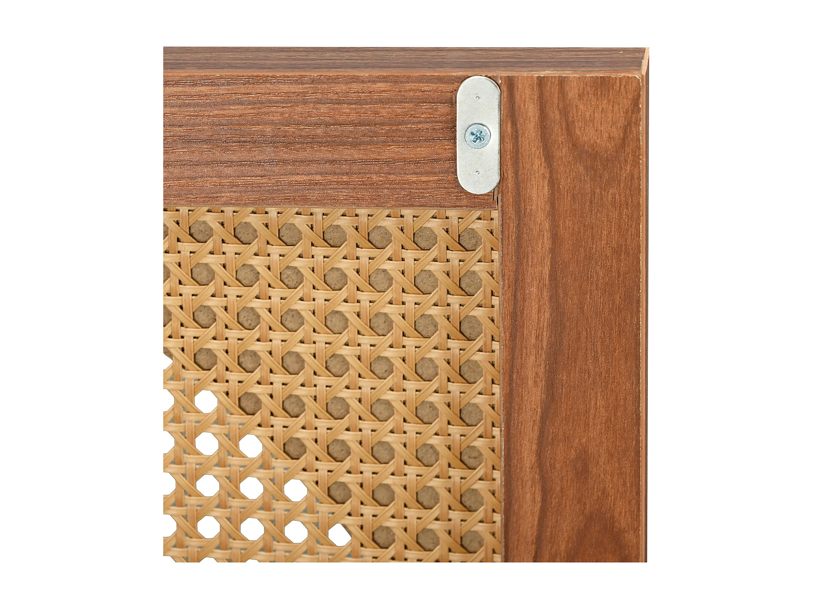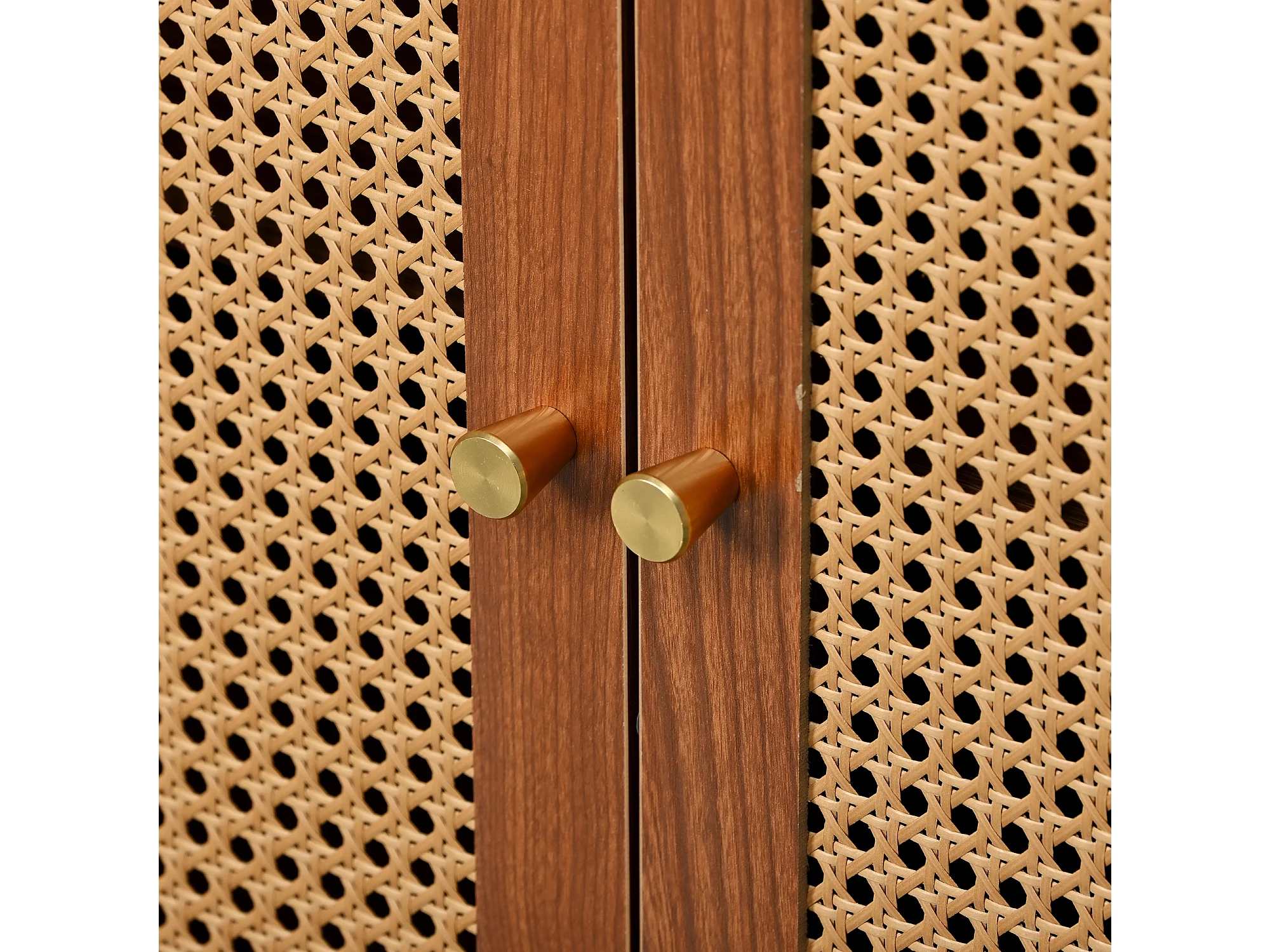 Buffet 129.8x40x76 cm bois 3 portes en rotin meuble de rangement- pieds en métal - noyer
