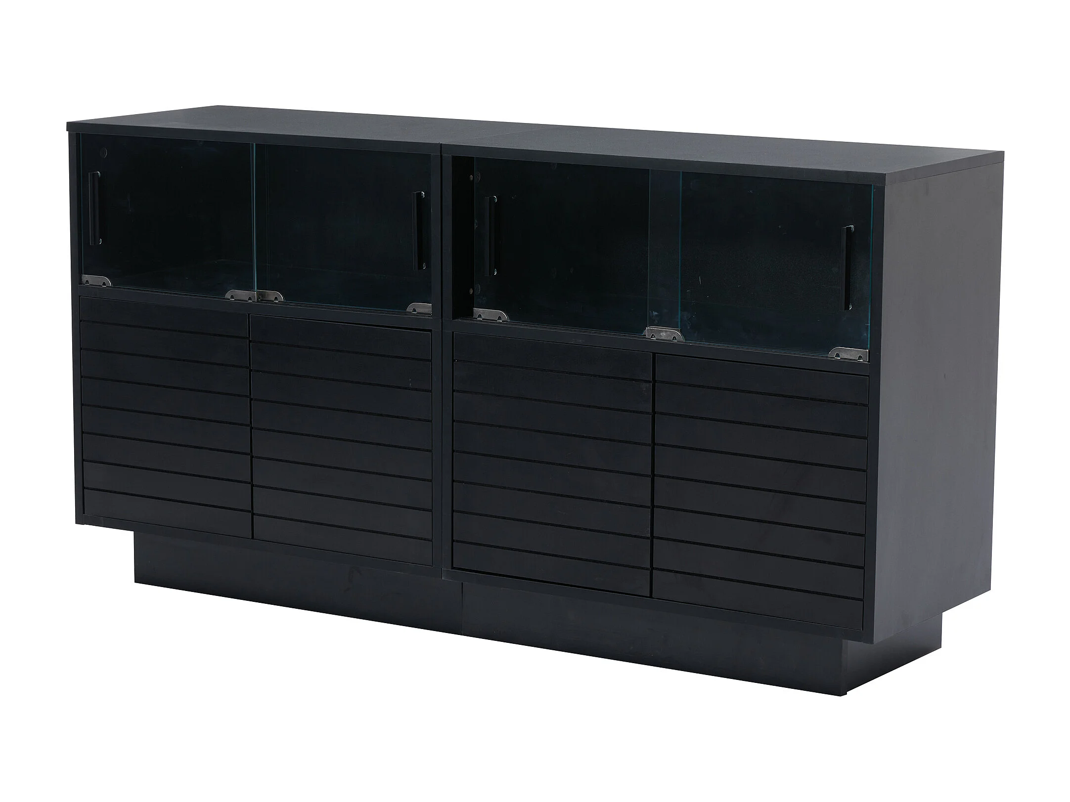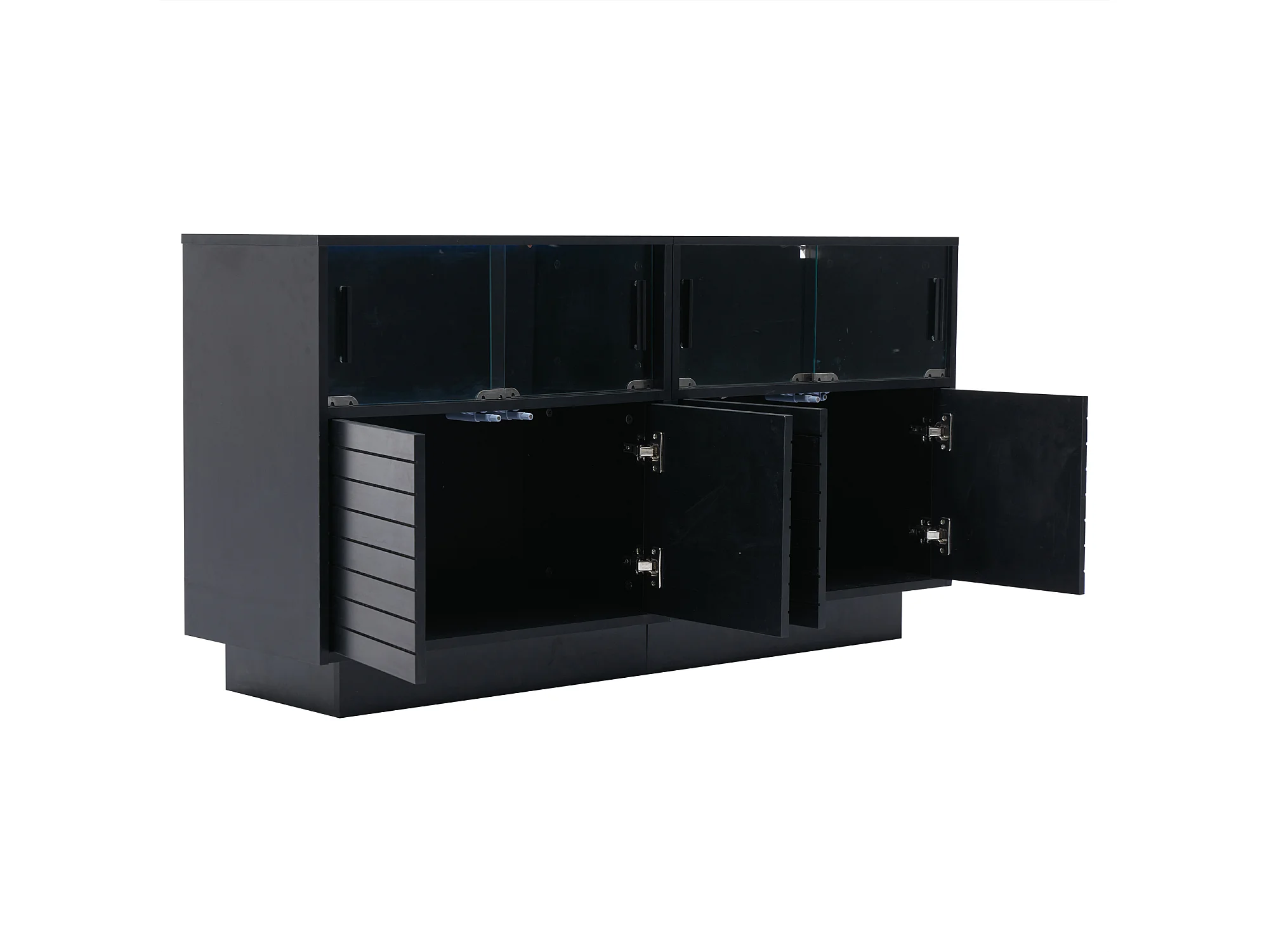 Buffet 130x35x68 cm LED avec 4 portes et 4 portes vitrées - meuble de rangement en bois - noir