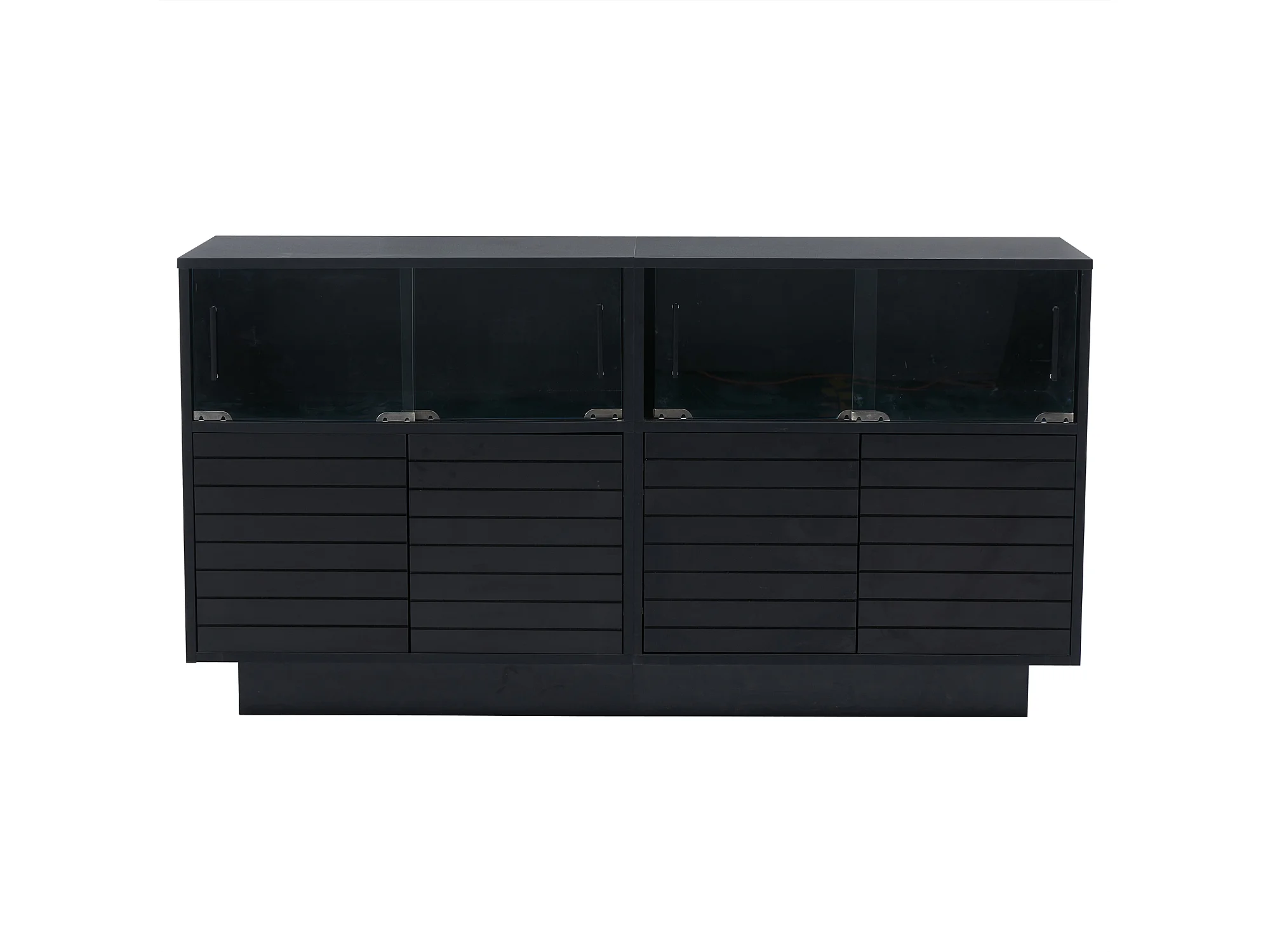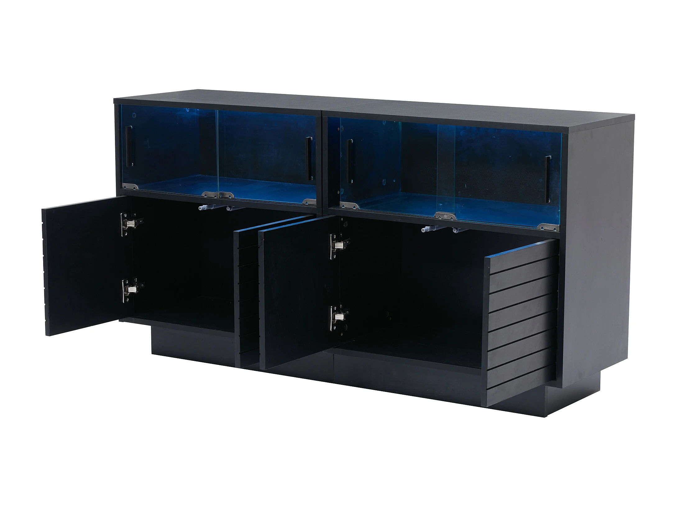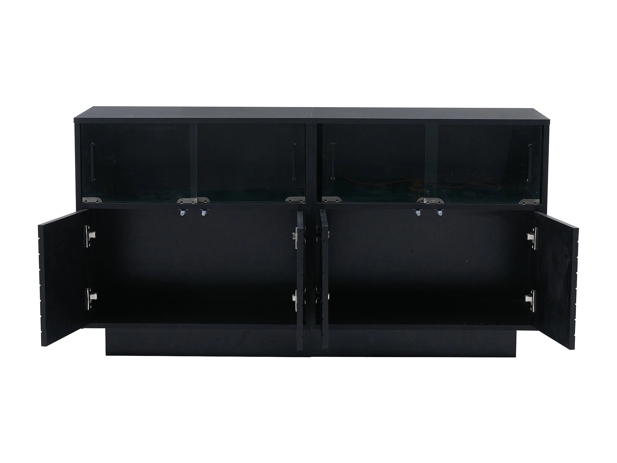Buffet 130x35x68 cm, 4 portes coulissantes en verre, LED USB, grand rangement, panneaux de particules noir