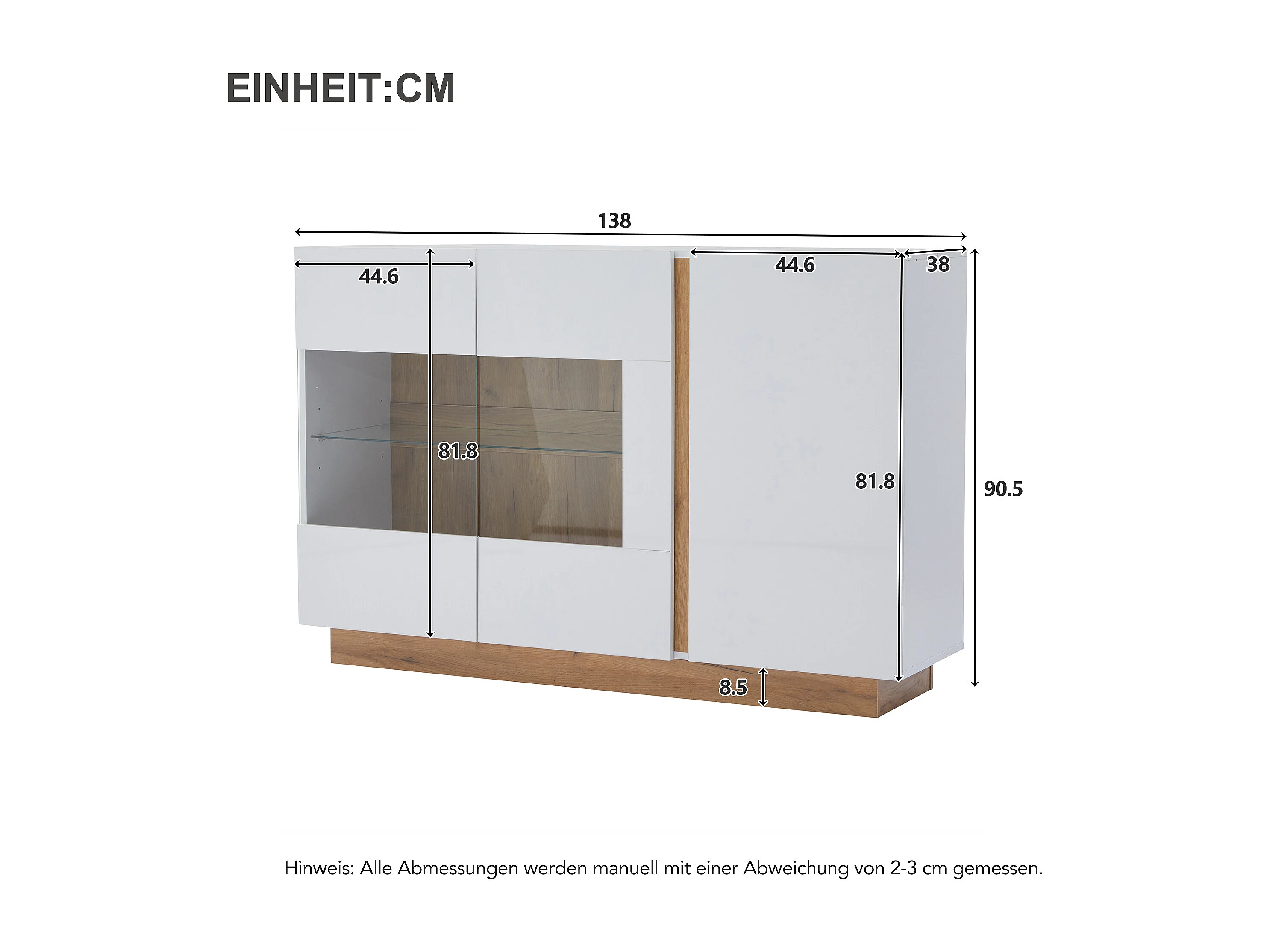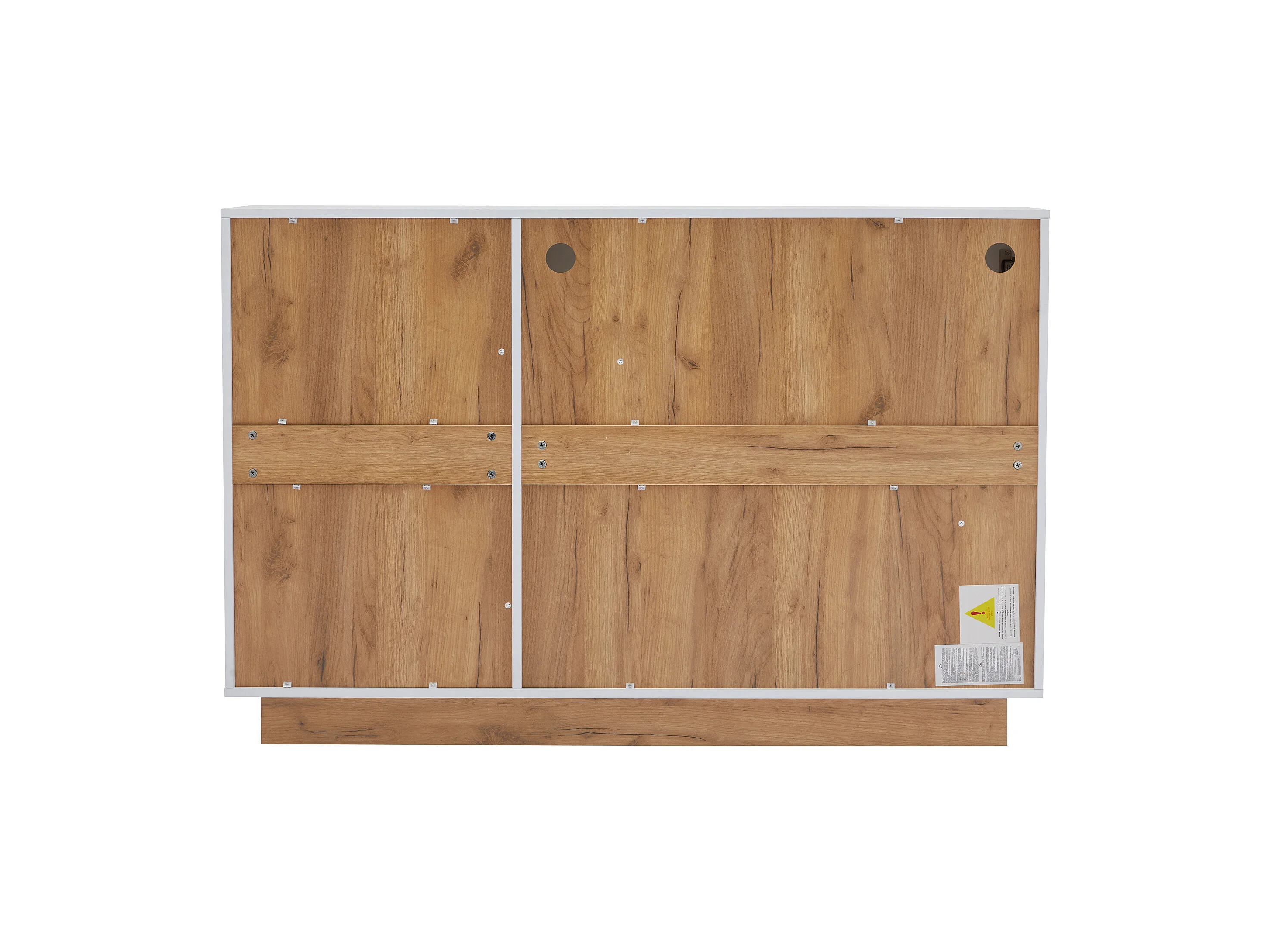 Buffet 138x38x90.5 cm LED avec 3 portes et verre décoratif - meuble de rangement - bois - blanc