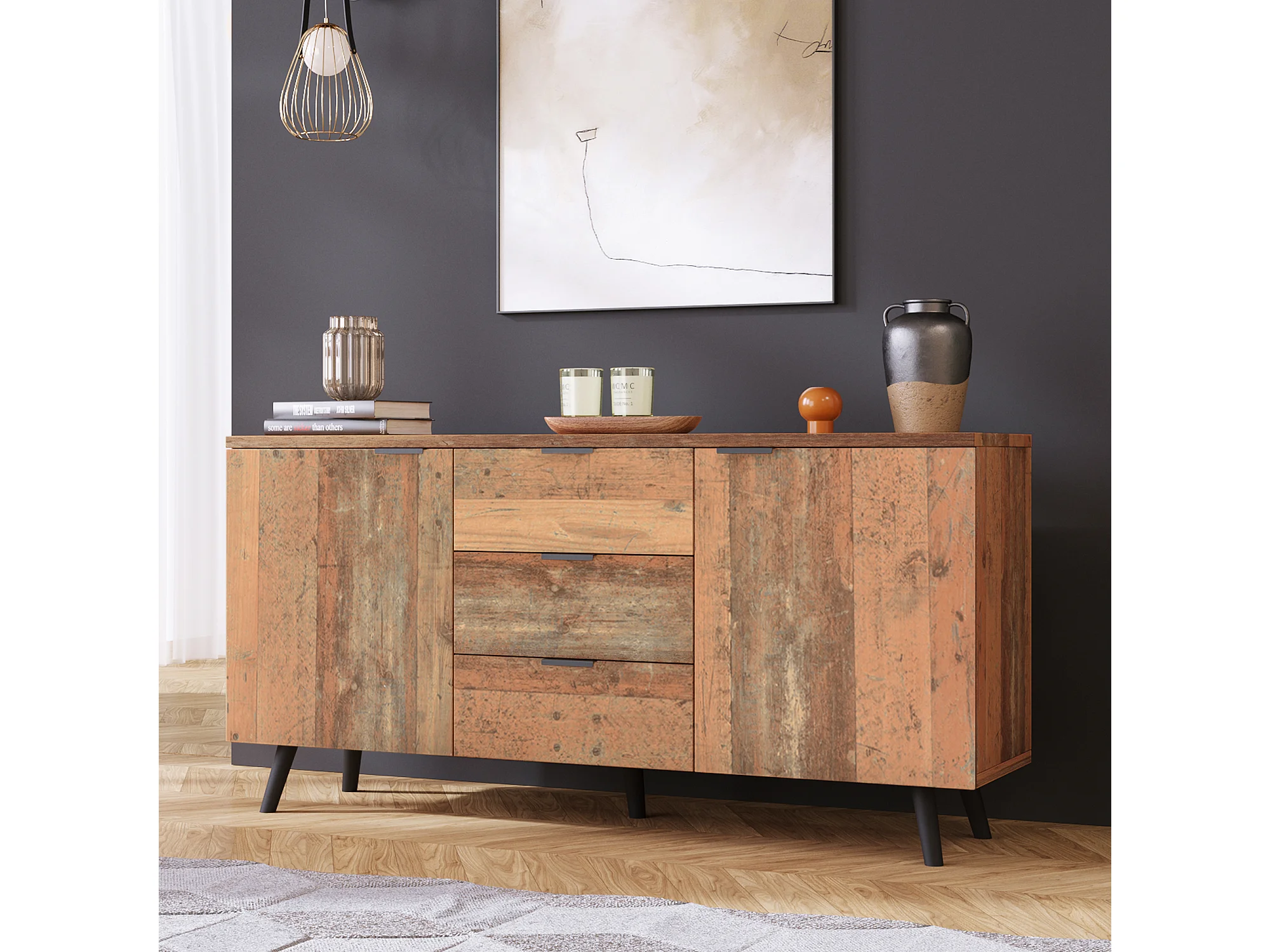 Buffet 140x35x70 cm avec 2 portes 3 tiroirs de rangement - étagères réglables - bois - marron