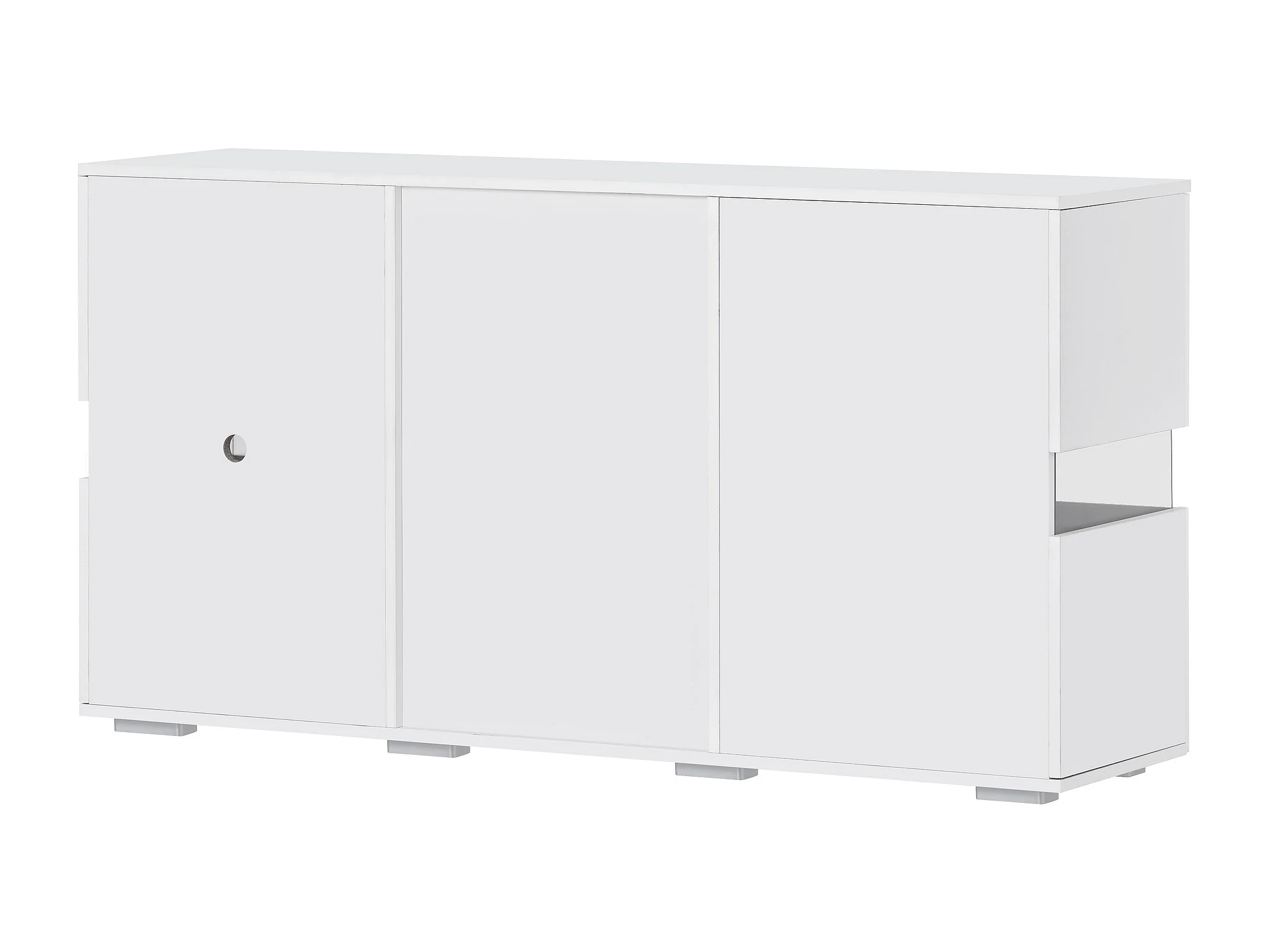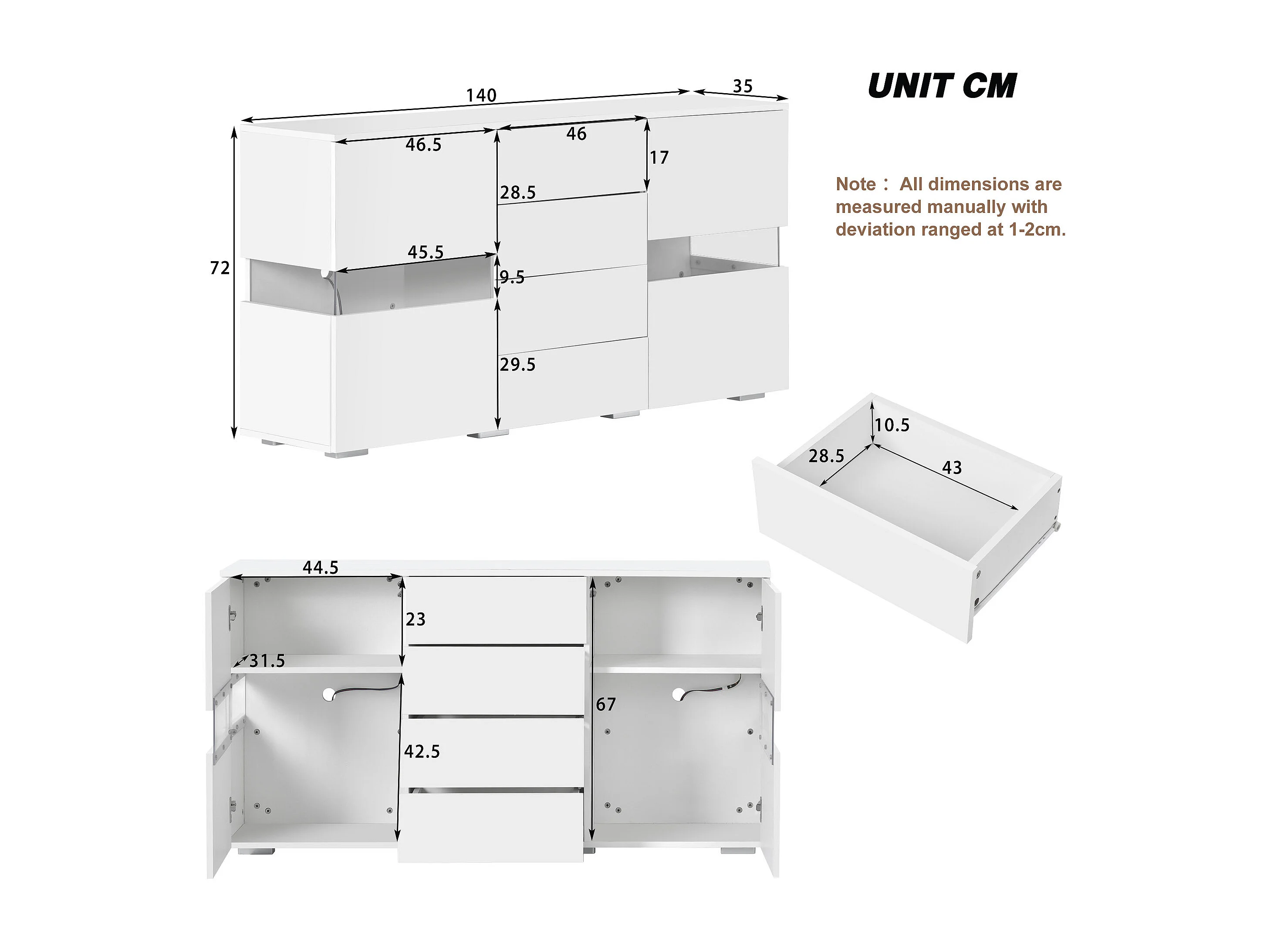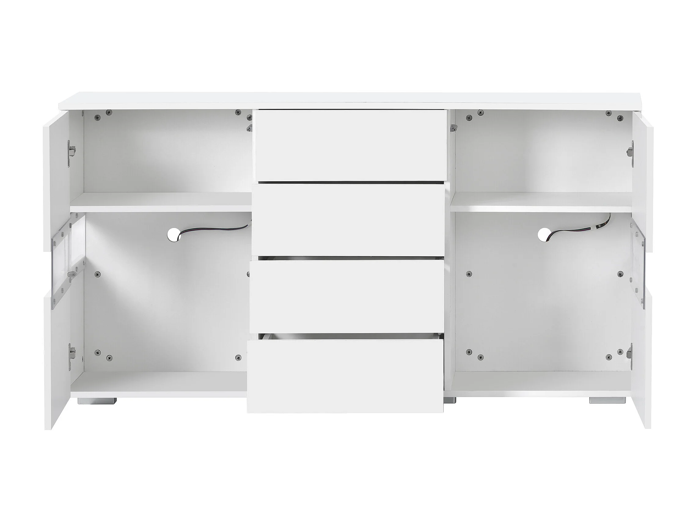 Buffet 140x35x72 cm LED avec 2 portes 4 tiroirs - meuble de rangement - bois - blanc