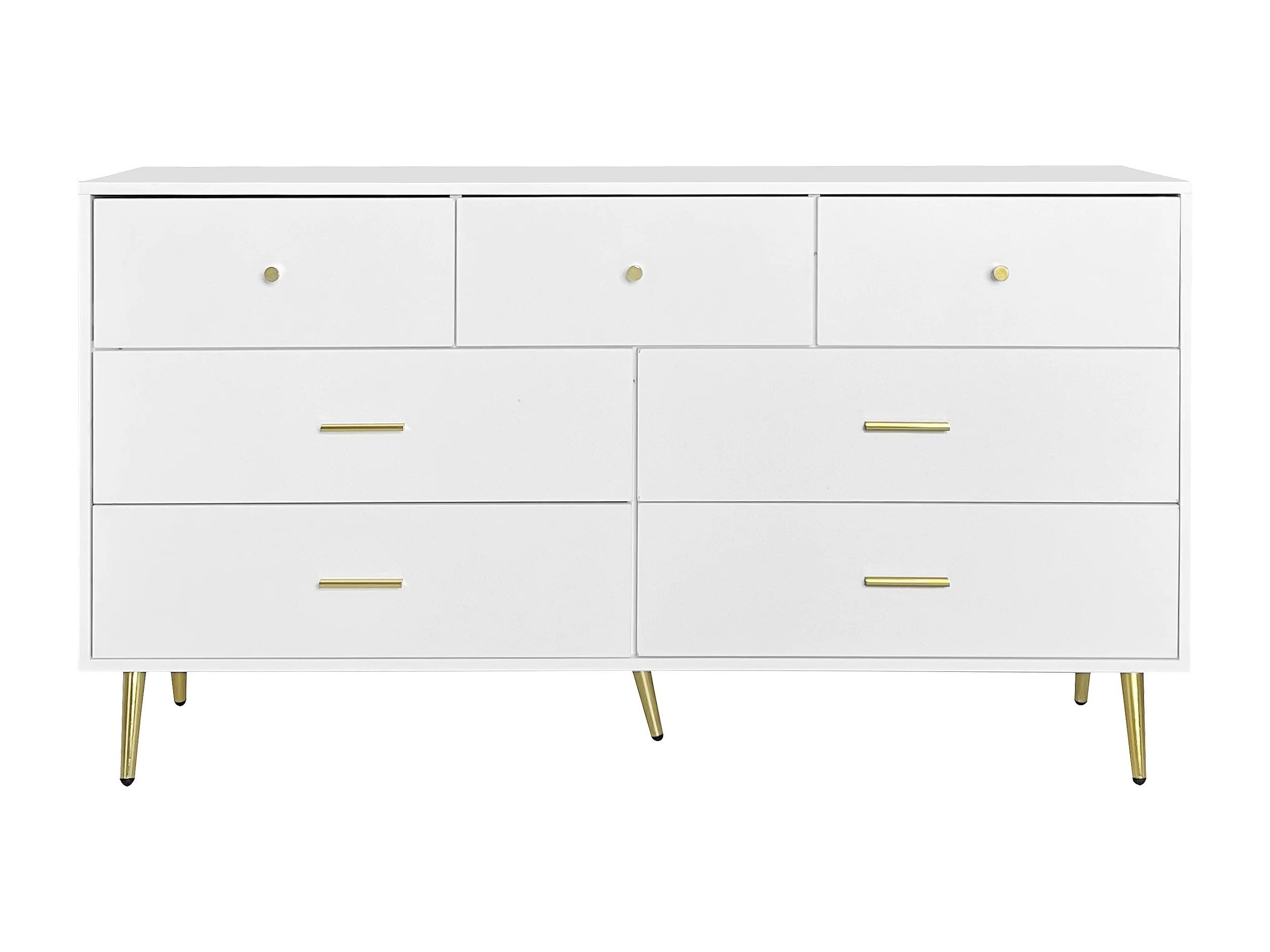 Buffet 140x35x76 cm bois avec 7 tiroirs - meuble de rangement - pieds en métal - blanc