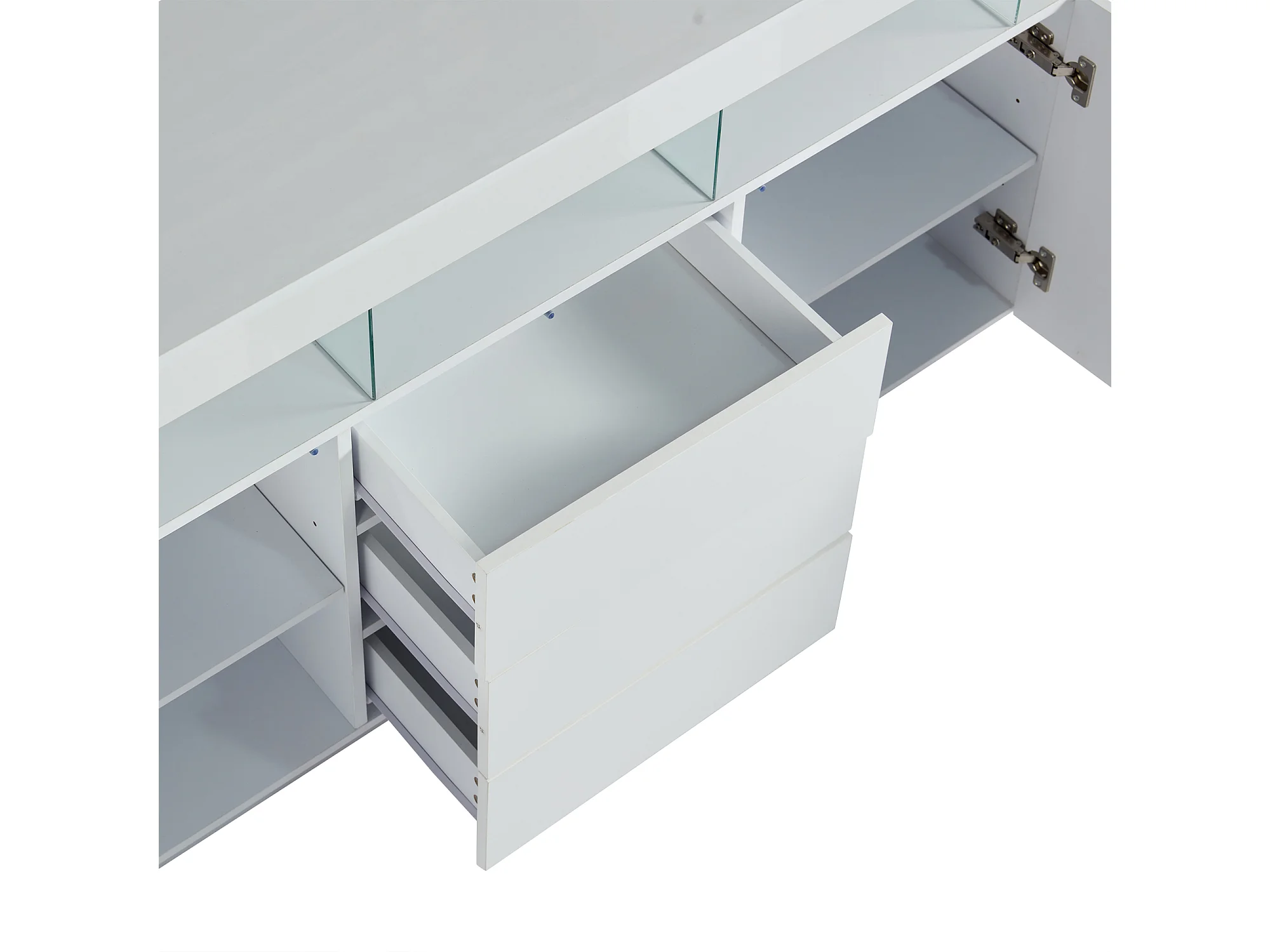 Buffet 140x35x80 cm LED 2 portes 3 tiroirs meuble de rangement en bois - blanc