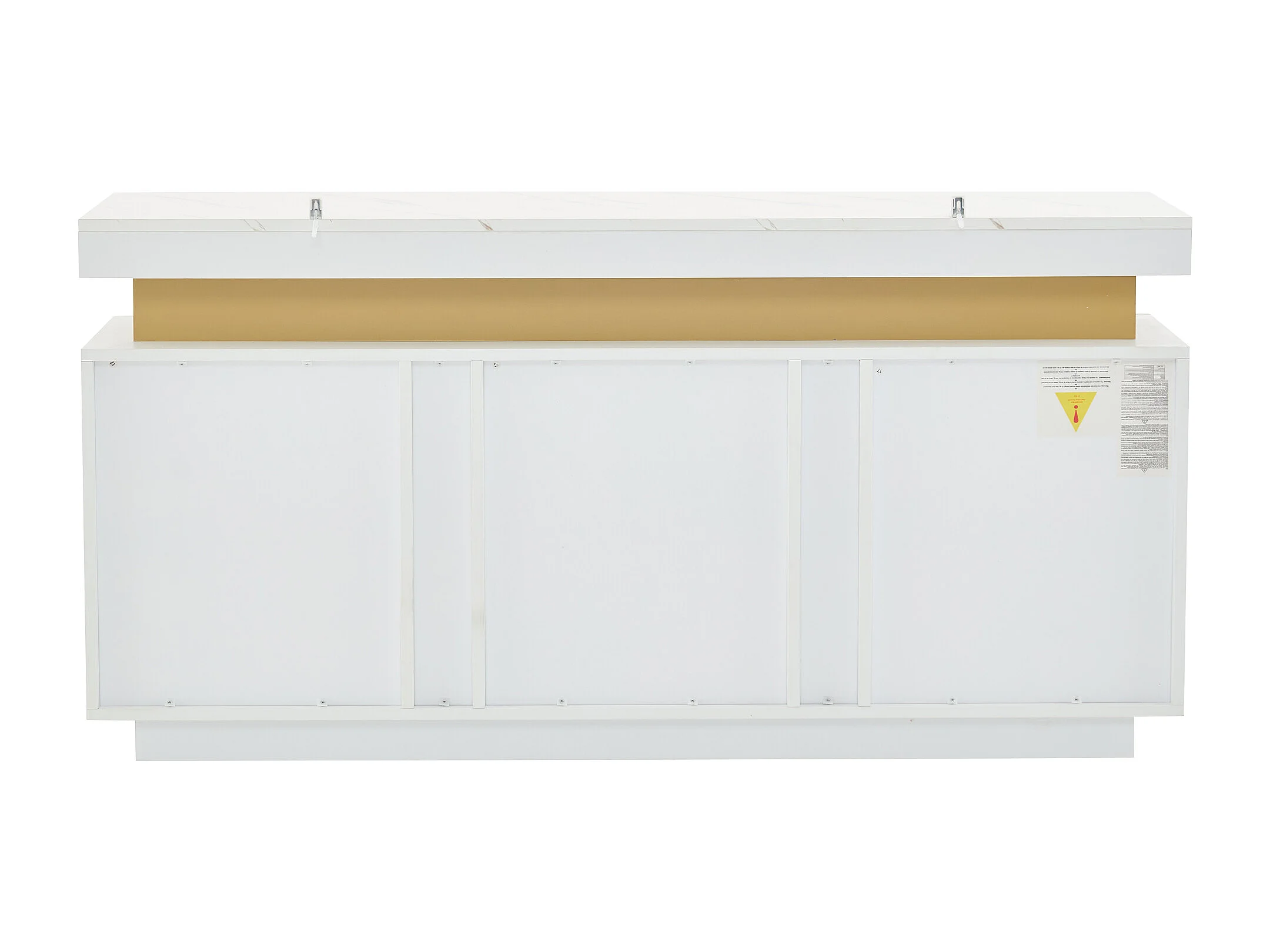 Buffet 140x38x70 cm avec 3 portes - plan de travail en marbre imitation et étagères réglables - bois - blanc
