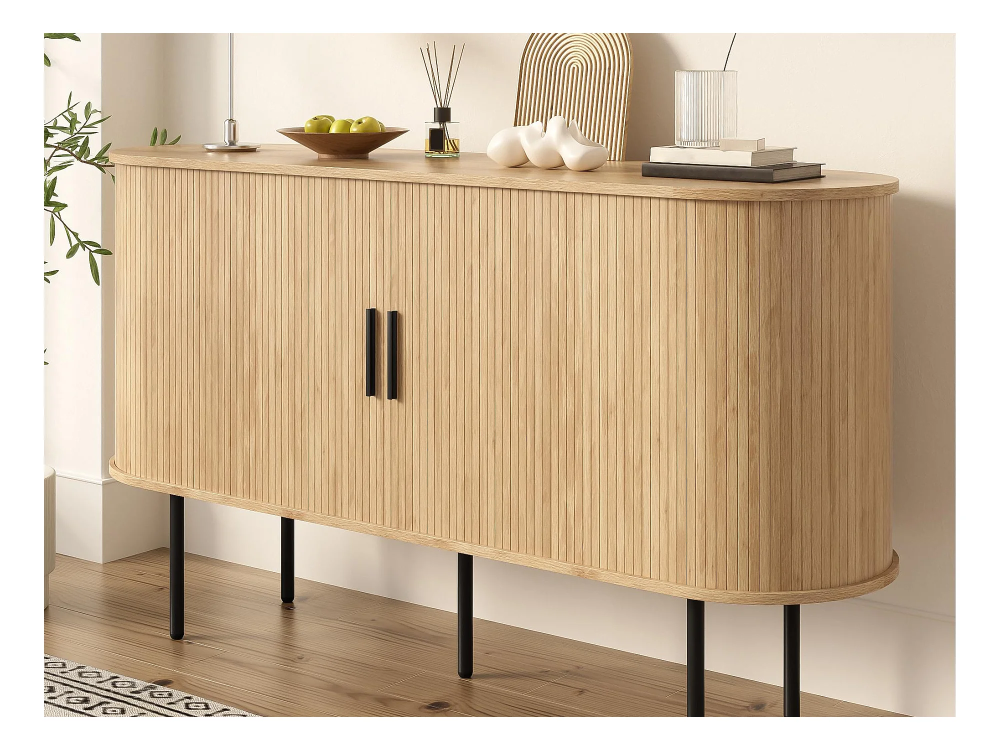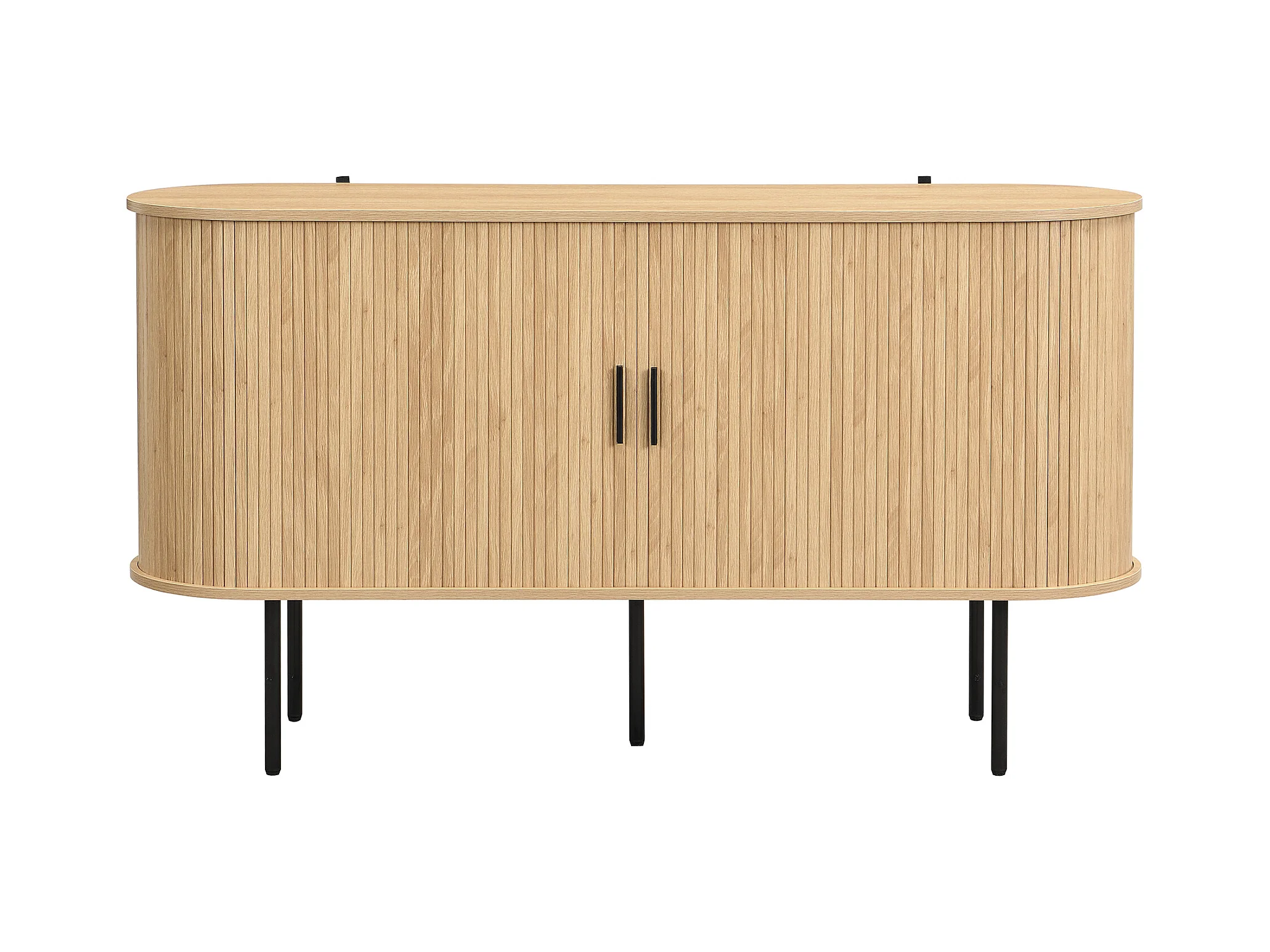 Buffet 140x40x78 cm - 1 porte coulissante - avec étagères - Pieds en fer - MDF - Naturel