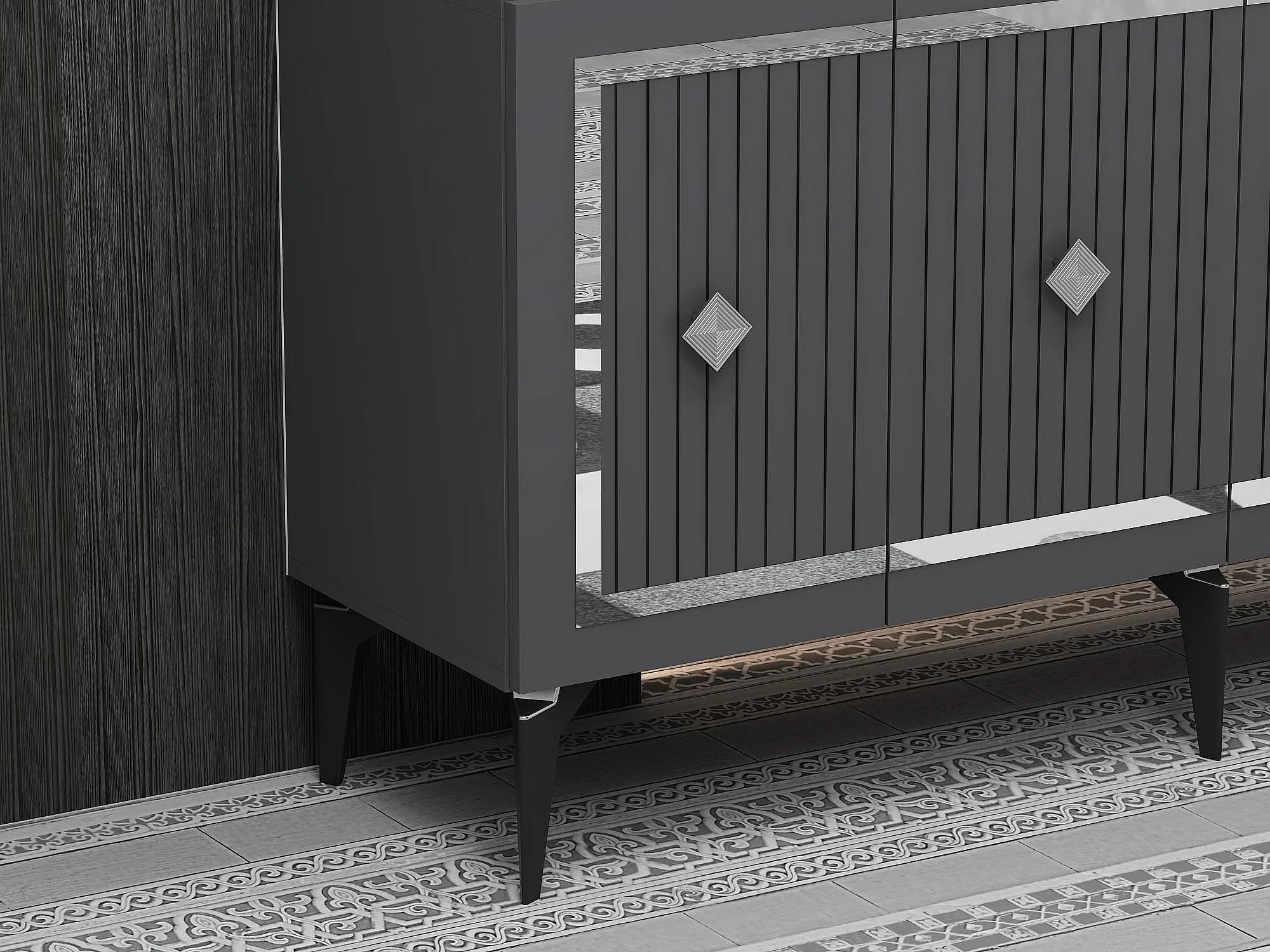 Buffet – 150 cm x 79 cm x 40 cm – Anthracite et Argent – Aggloméré