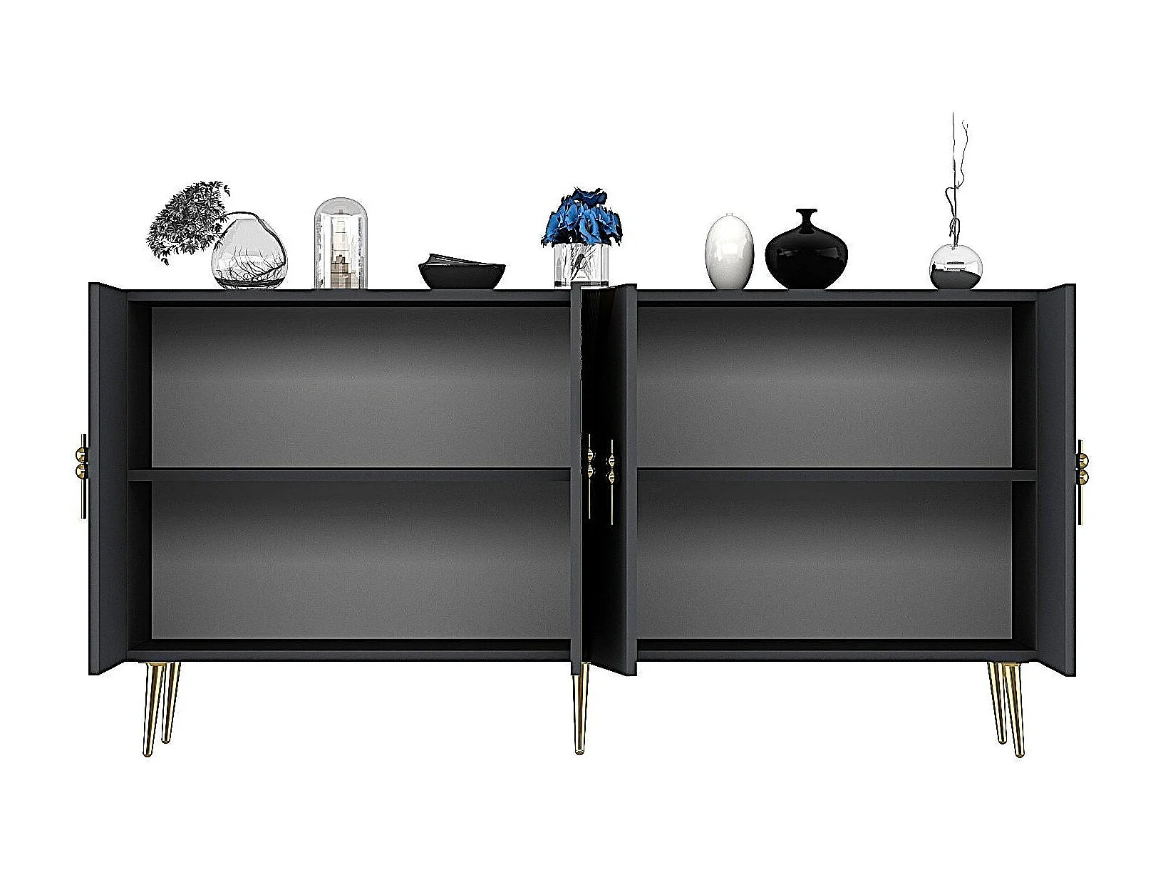 Buffet bas design 4 portes battantes Selly L150cm Anthracite et Or