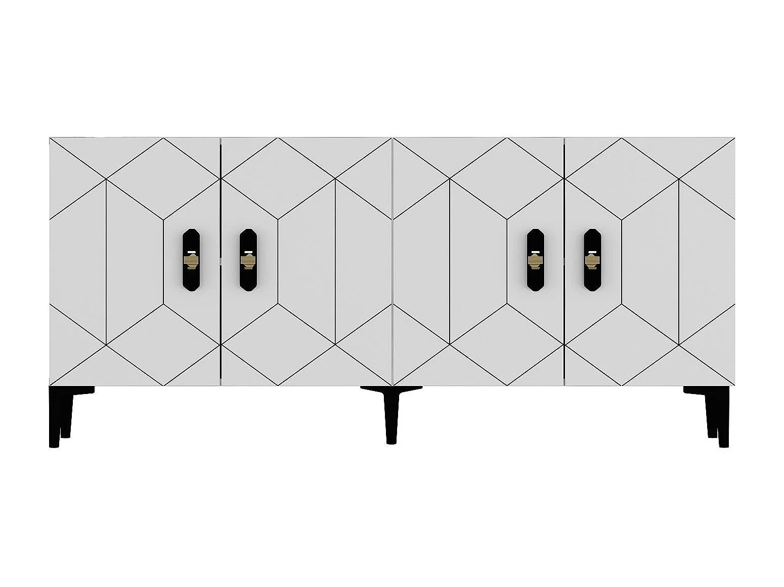 Buffet – 150 cm x 75 cm x 35 cm – Blanc et Argent – Aggloméré