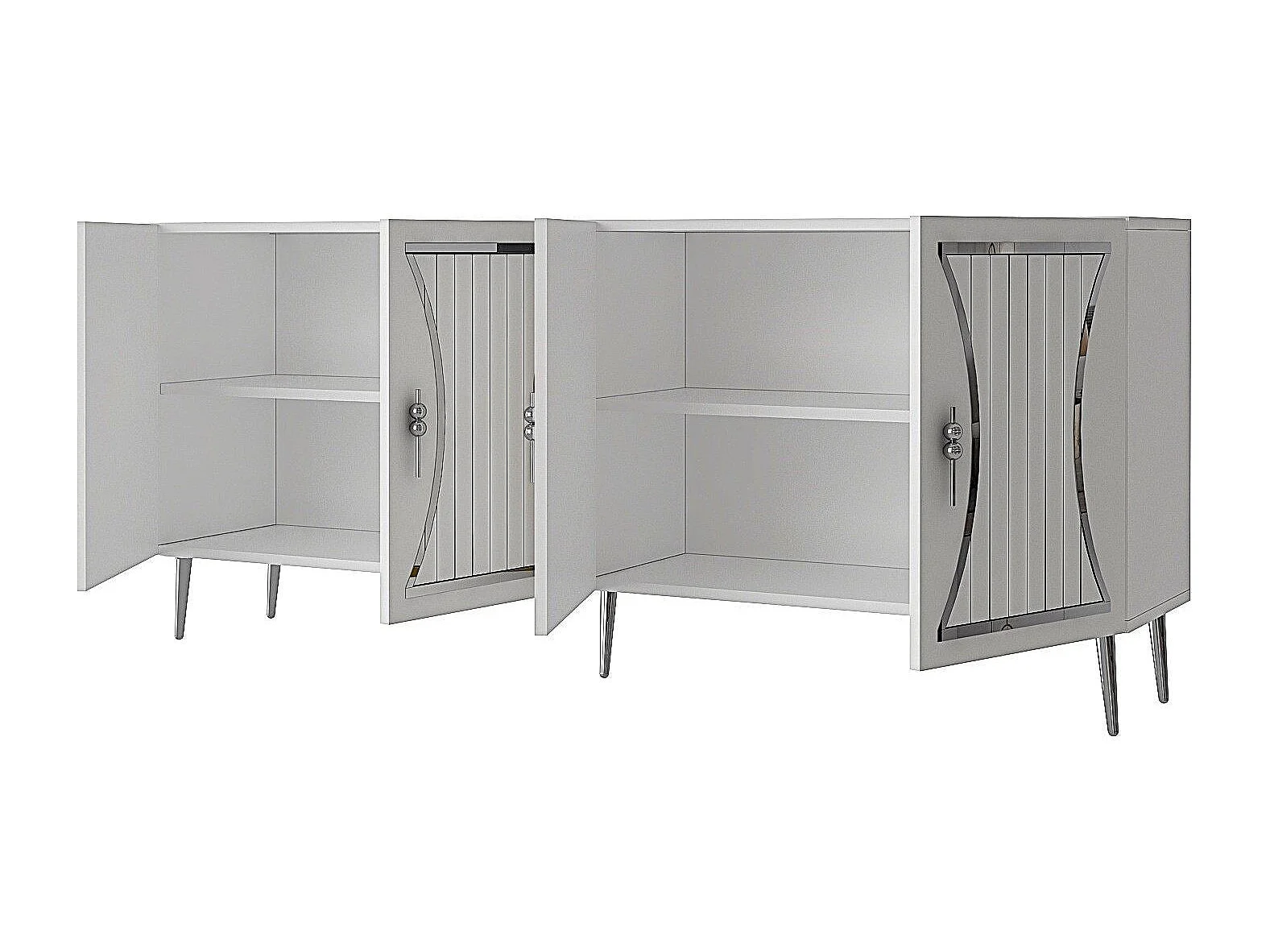 Buffet – 150 cm x 75 cm x 35 cm – Blanc et Argent – Mélamine