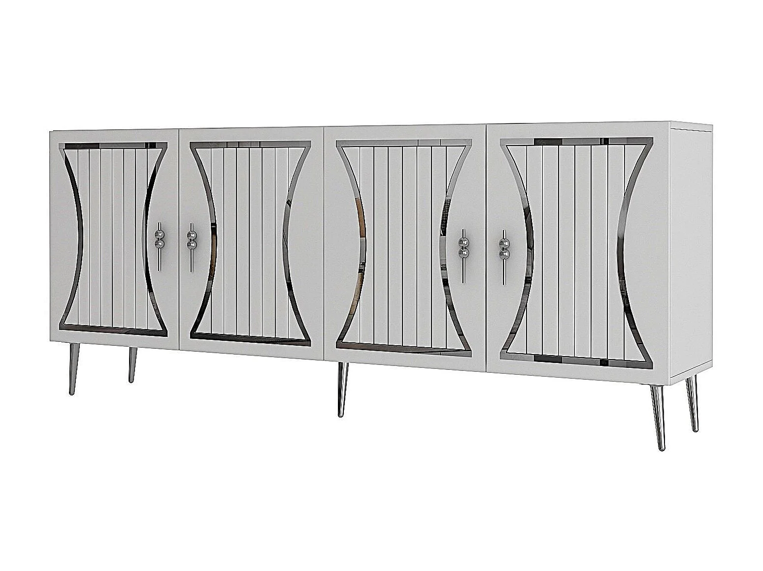 Buffet – 150 cm x 75 cm x 35 cm – Blanc et Argent – Aggloméré