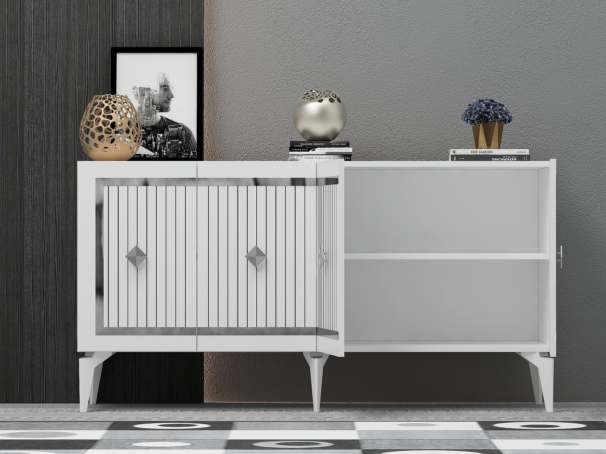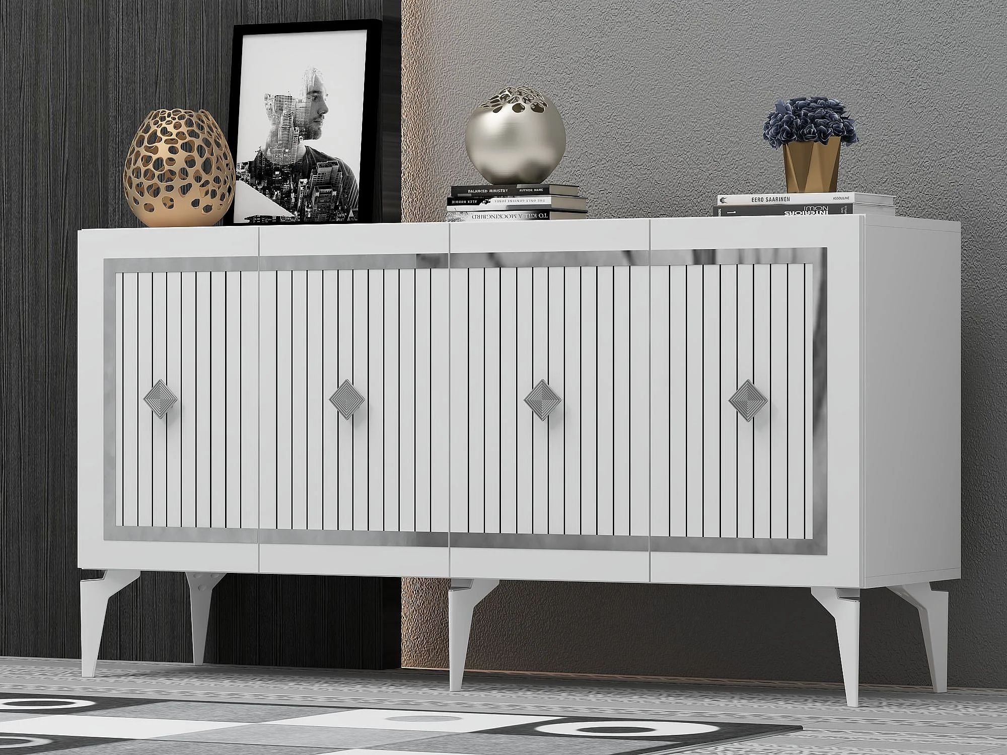Buffet – 150 cm – Blanc et Argent – Aggloméré