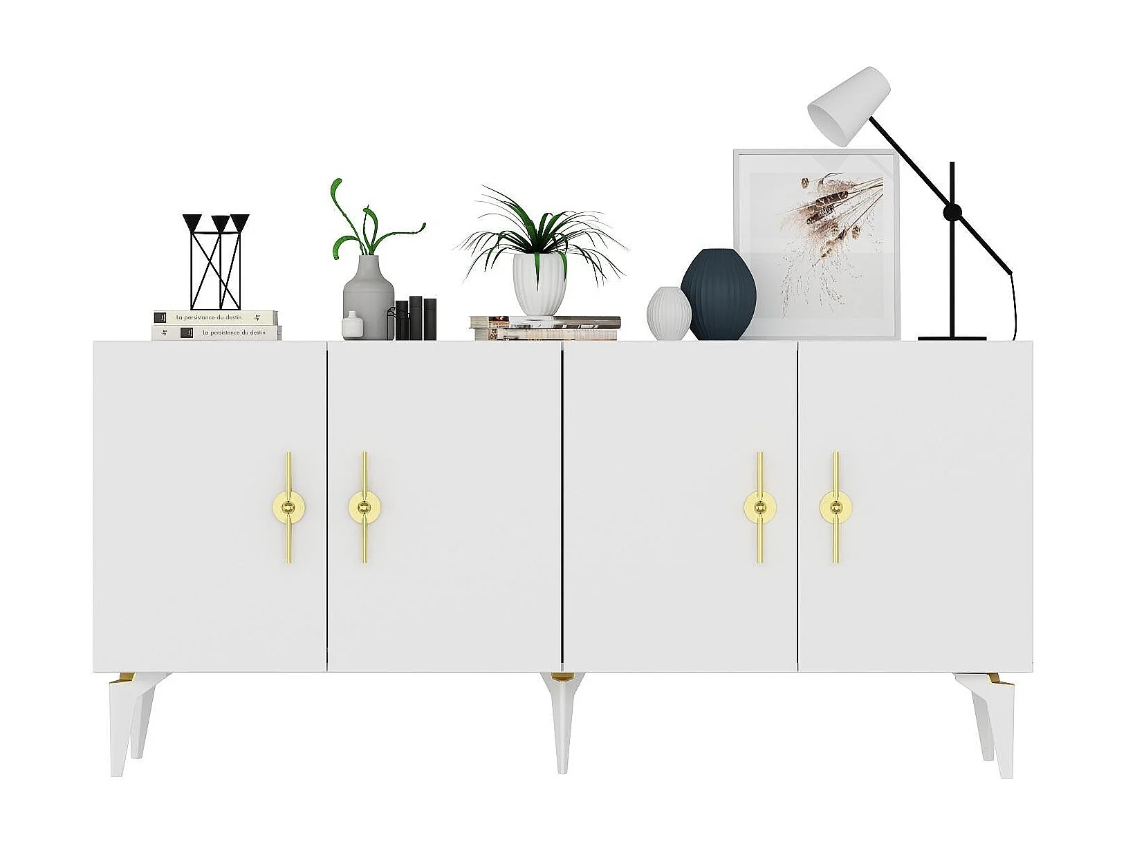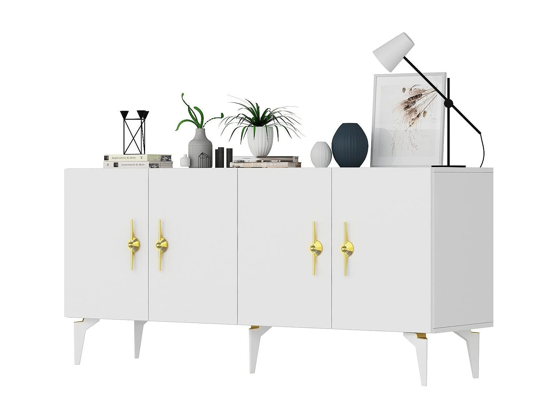 Buffet – 150 cm x 79 cm x 40 cm – Blanc et Or – Aggloméré