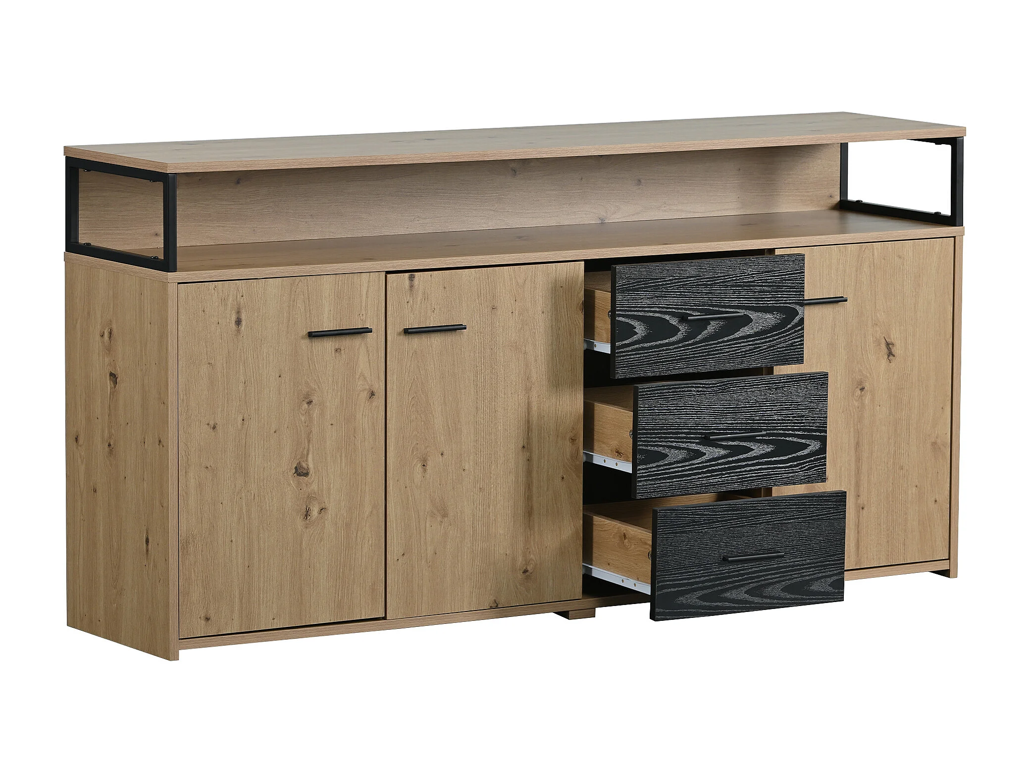 Buffet 150x35x75.9 cm avec 3 portes 3 tiroirs de rangement - poignées métalliques - bois - marron