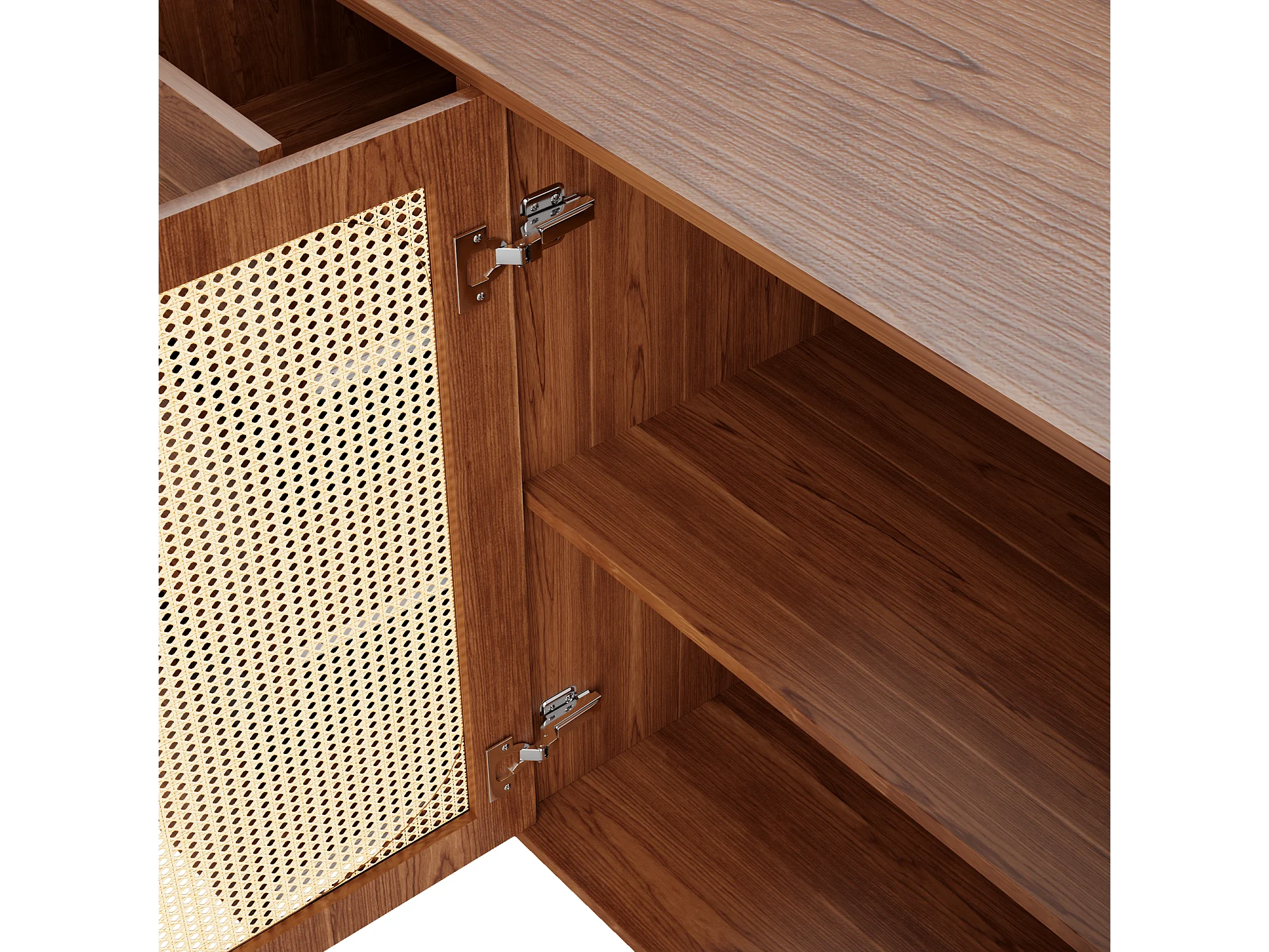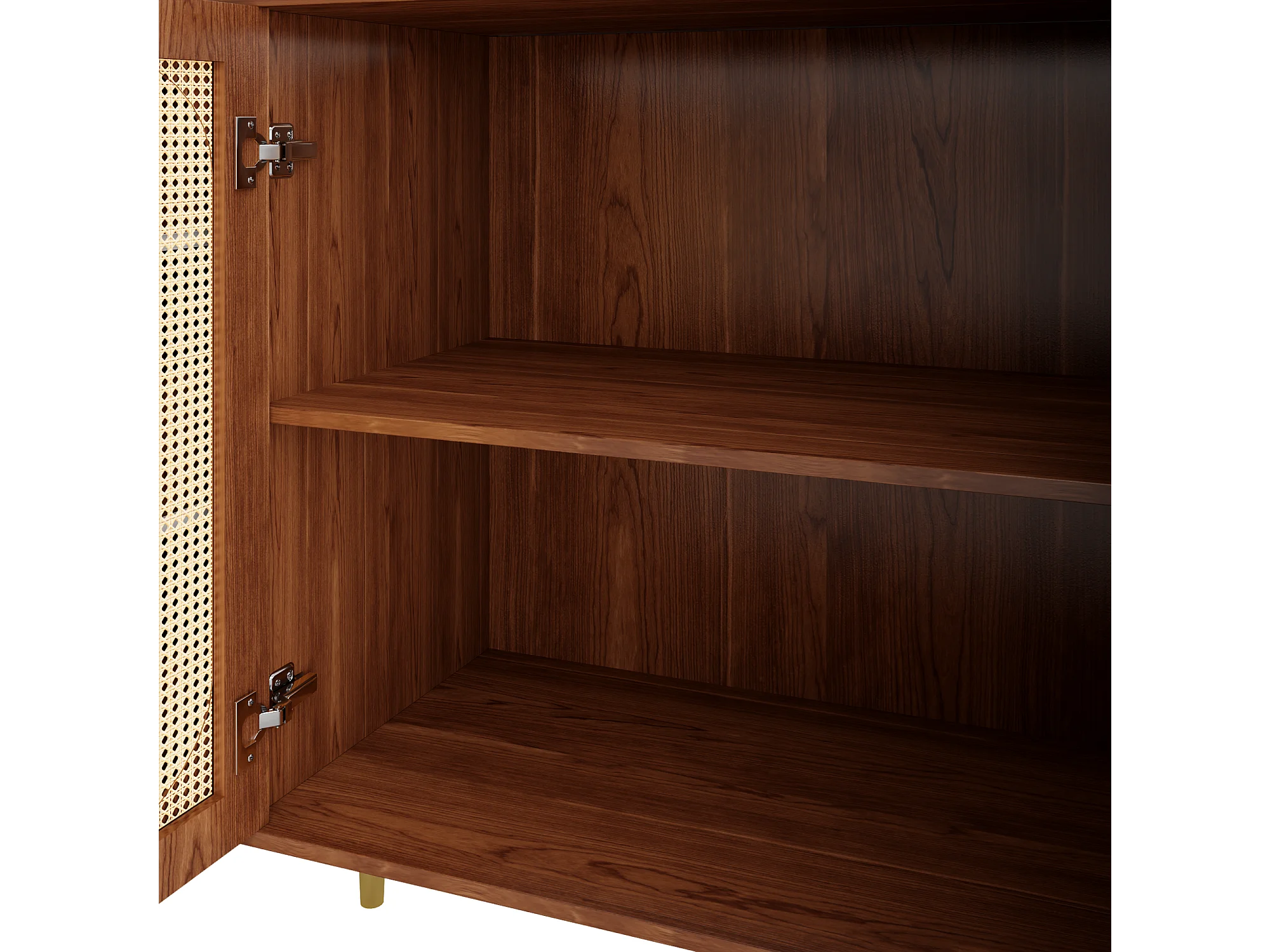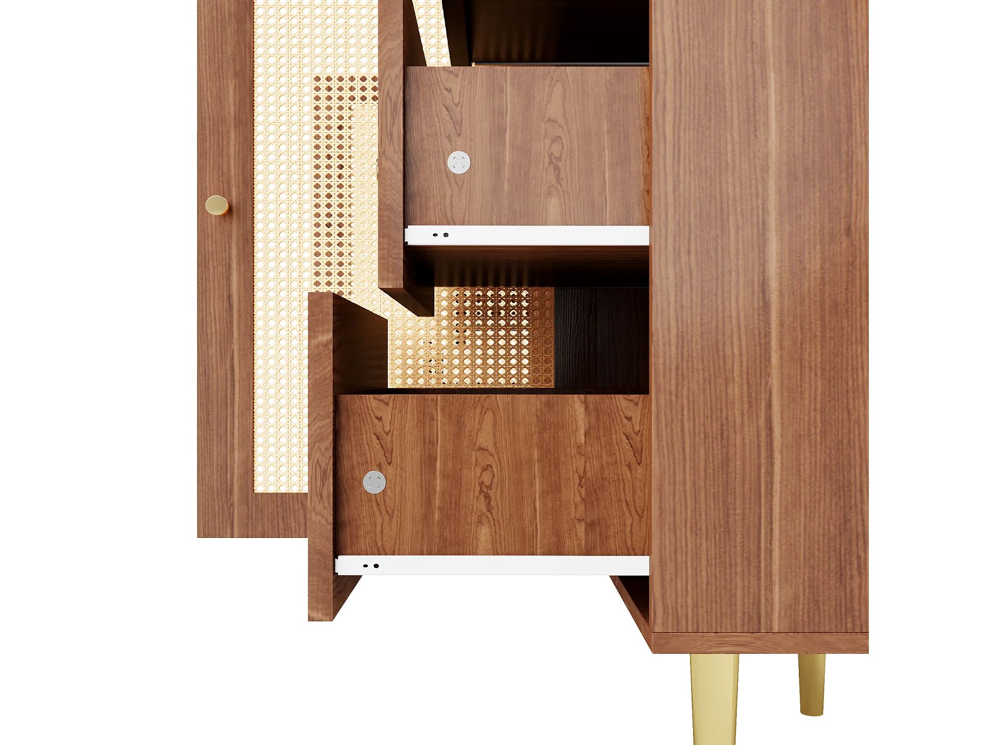 Buffet 160x40x75 cm 2 portes en rotin 6 tiroirs rangement - poignées et pieds en doré - marron