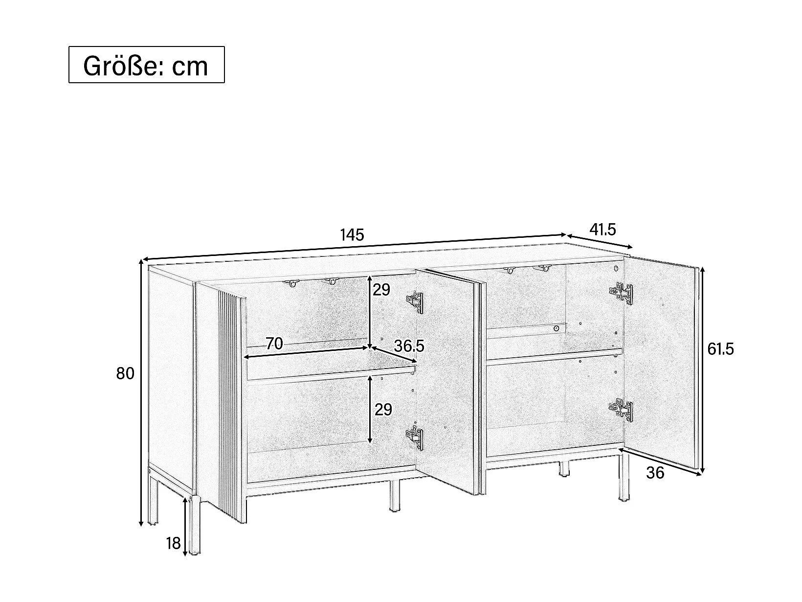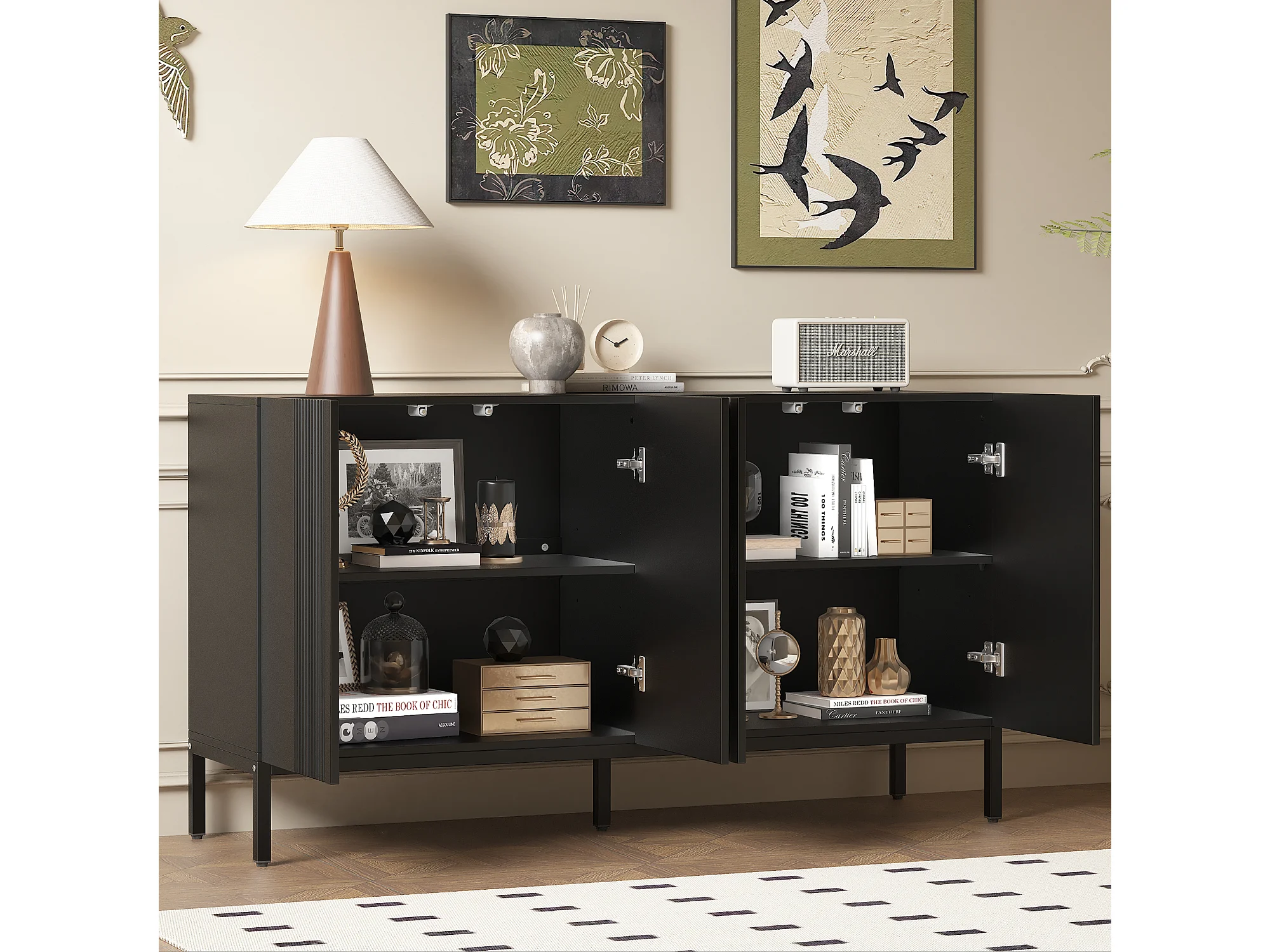Buffet 2 portes, étagères réglables, ouverture sans poignée, MDF, noir