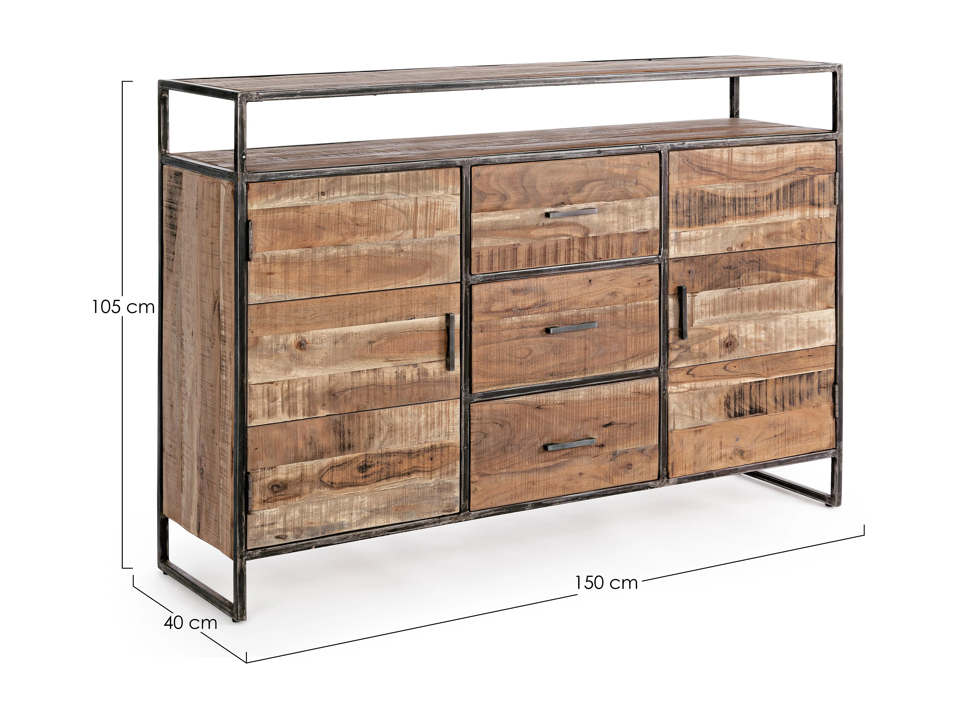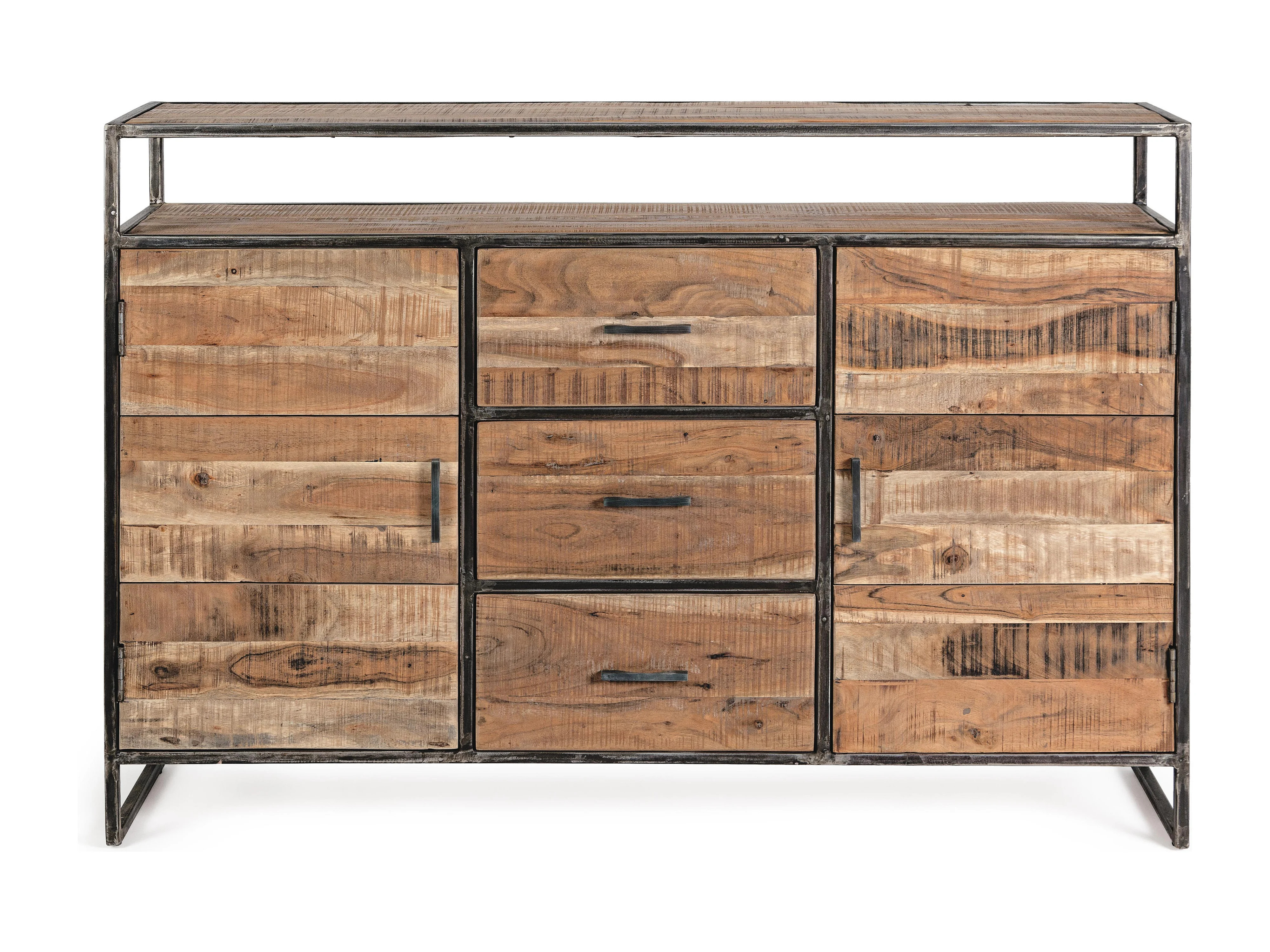 Buffet 2 portes 3 tiroirs bois d'acacia clair et acier vieilli Kadone 150cm