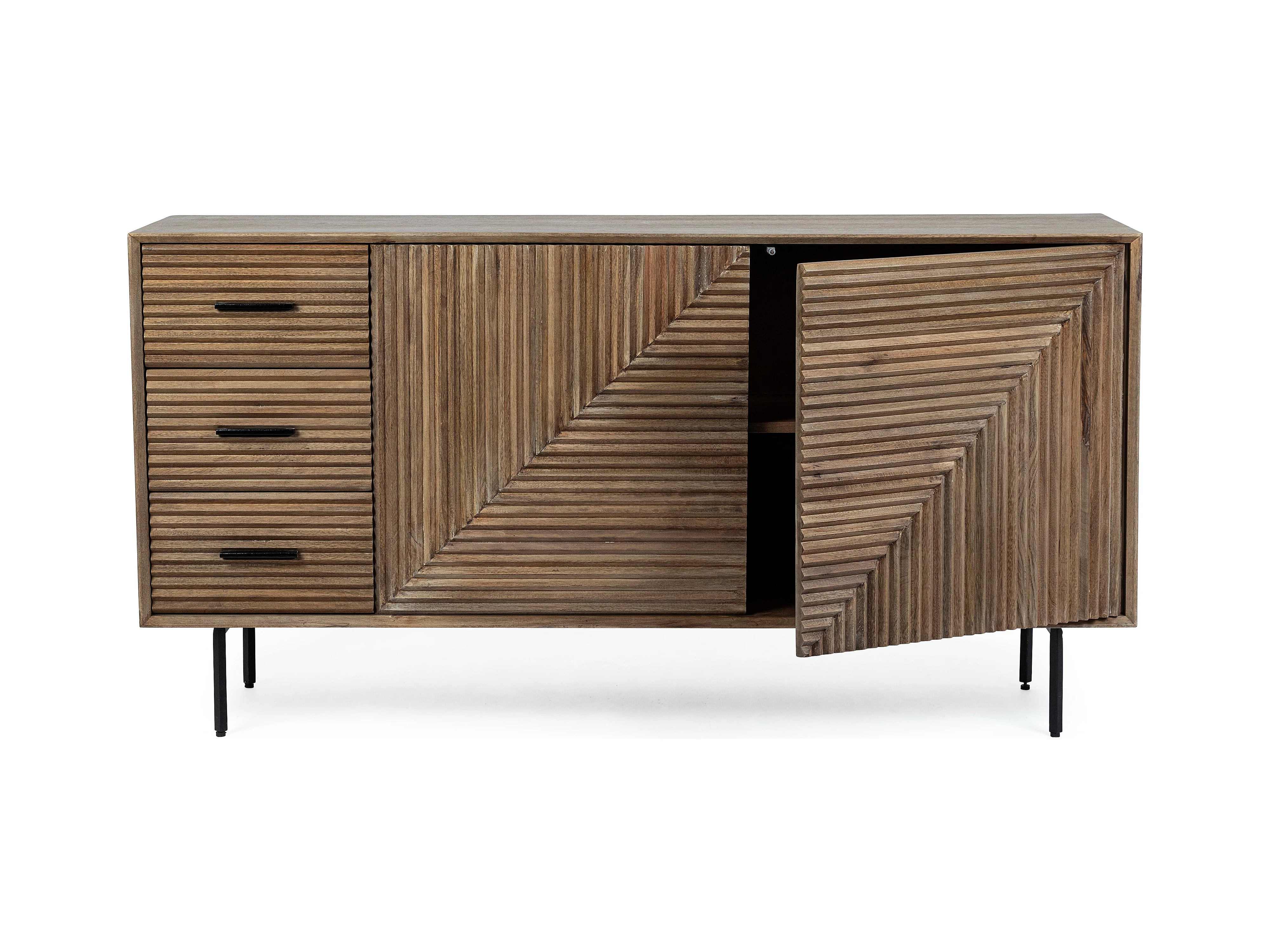 Buffet 2 portes 3 tiroirs en bois massif naturel de manguier Dary 160cm