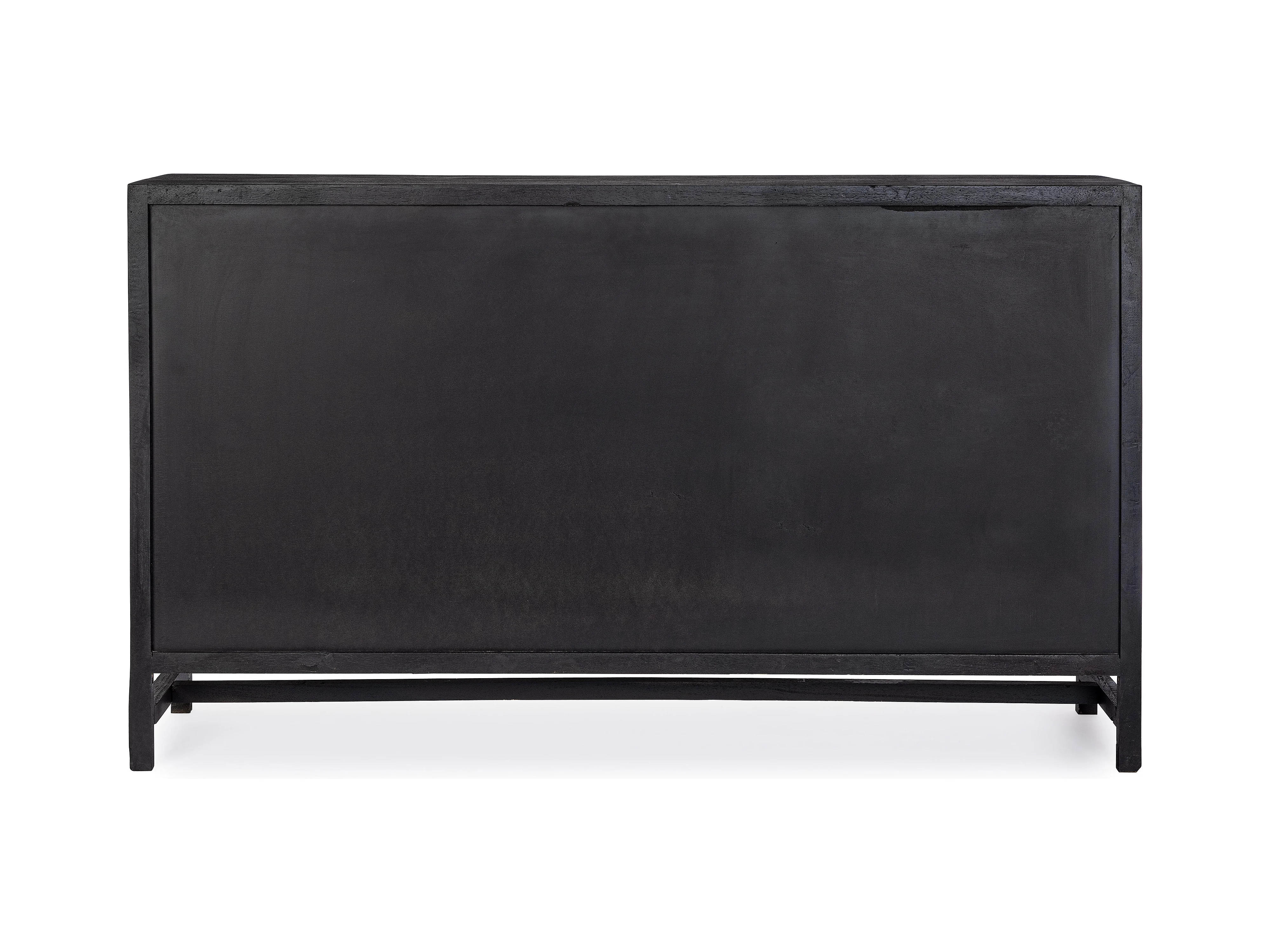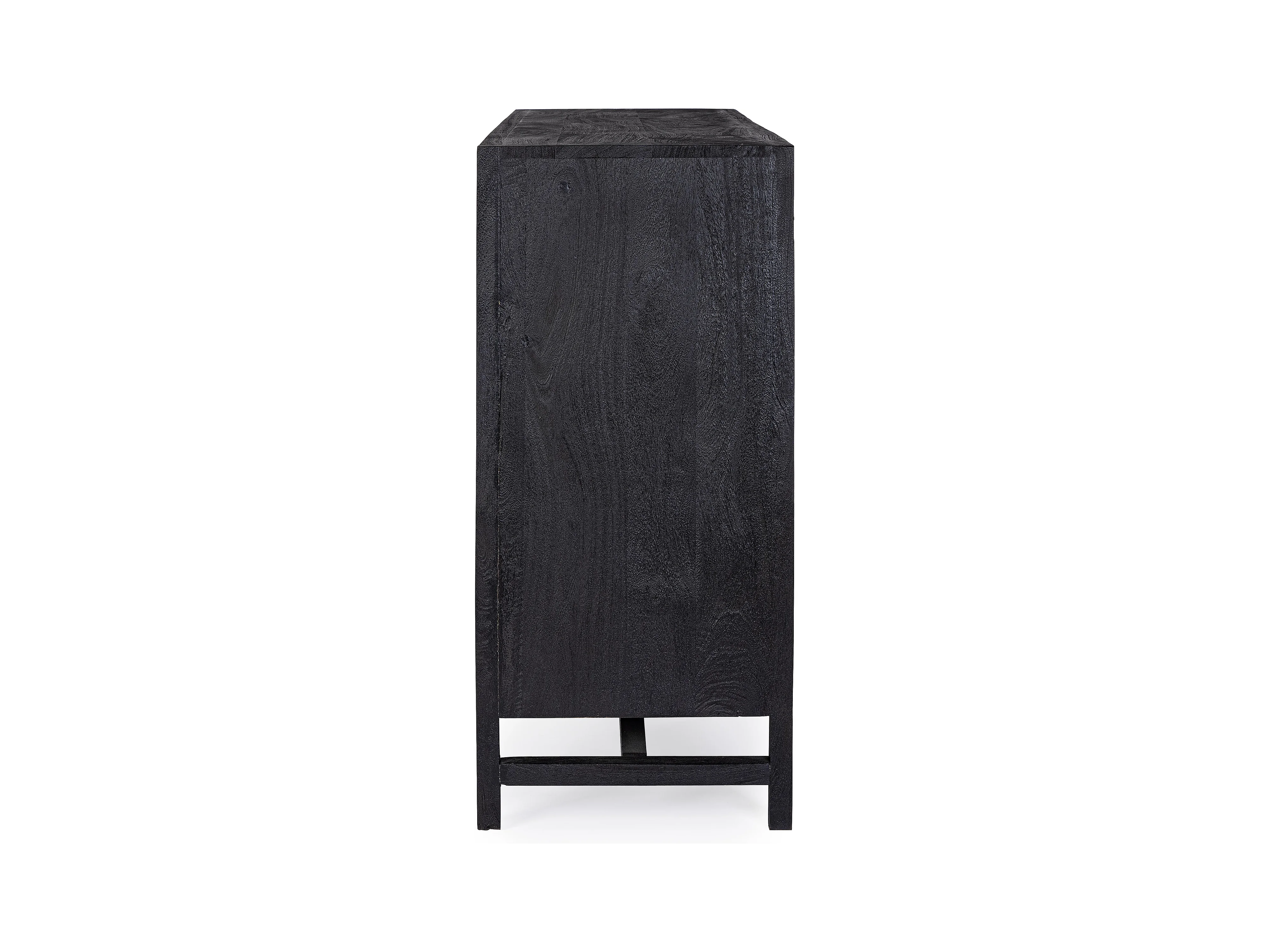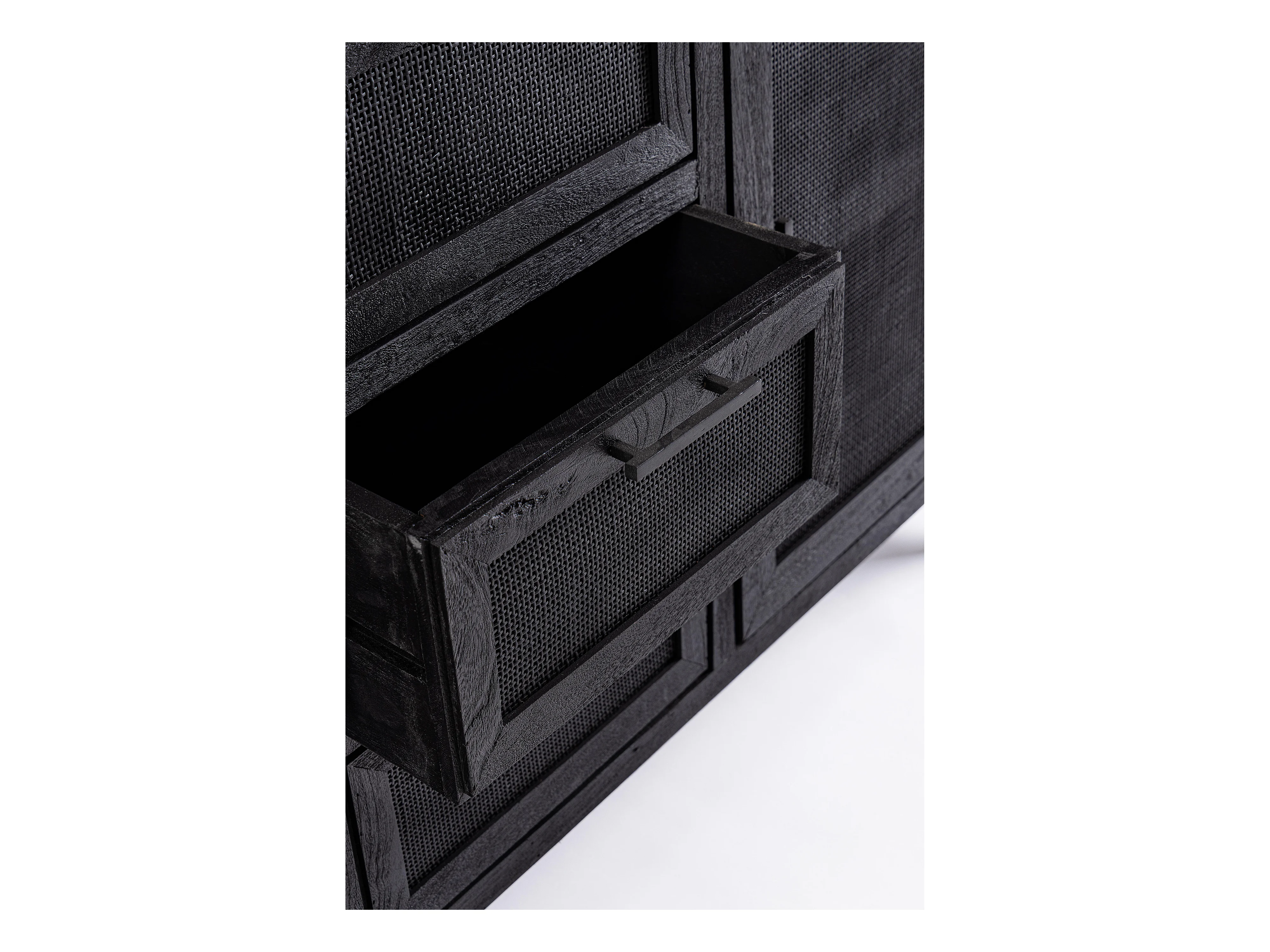 Buffet 2 portes 3 tiroirs en bois massif noir de manguier et rotin noir Waky 150cm