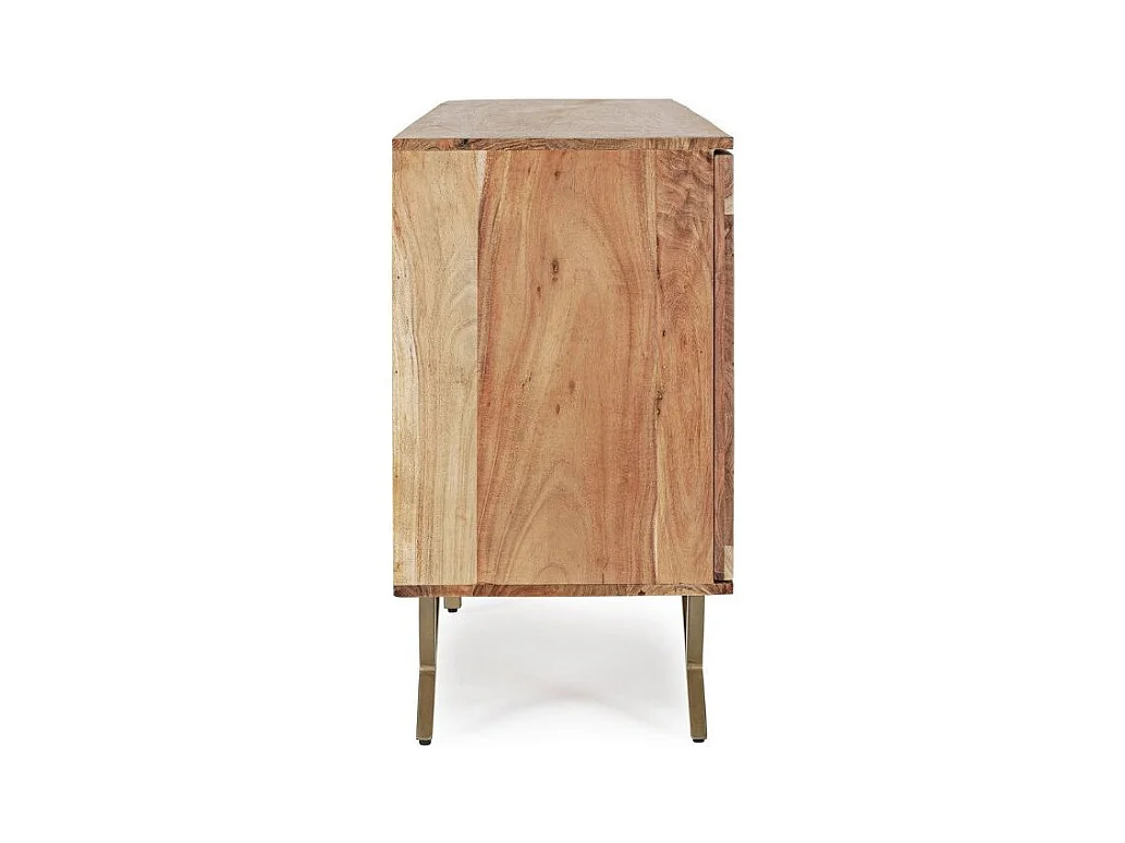 Buffet 3 portes bois d'acacia et pieds acier doré mat Dinka 160cm