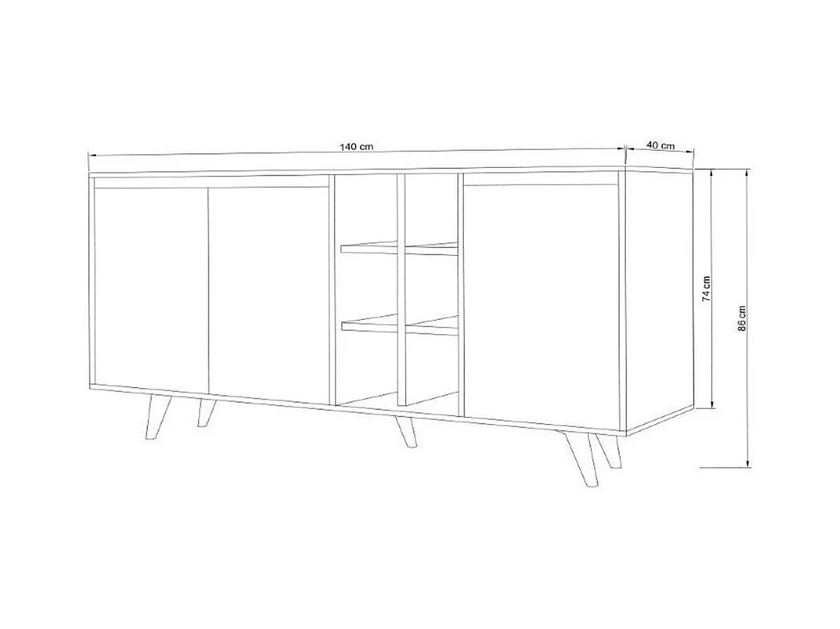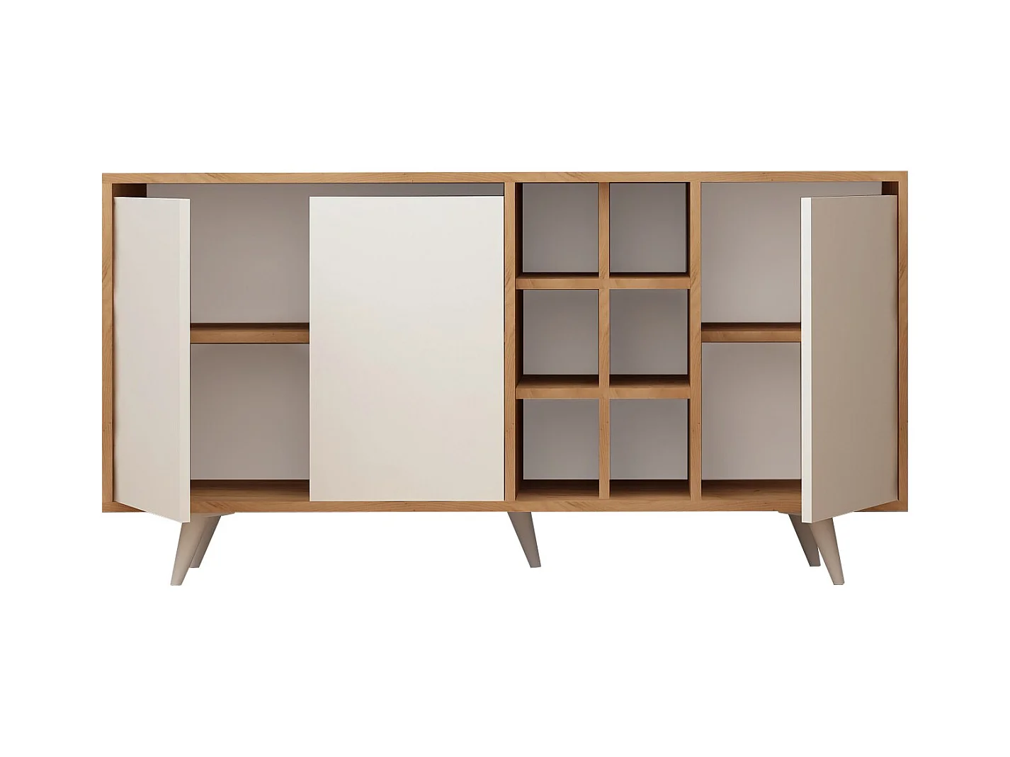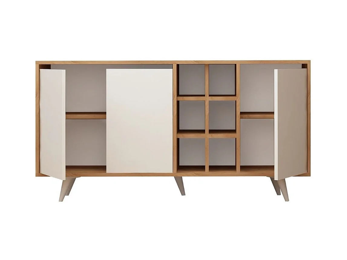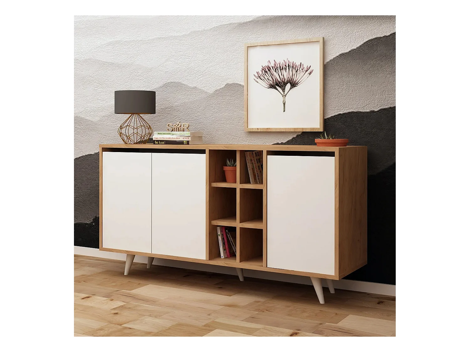 Buffet 3 portes et 6 niches décor chêne et blanc L140 cm - Seria