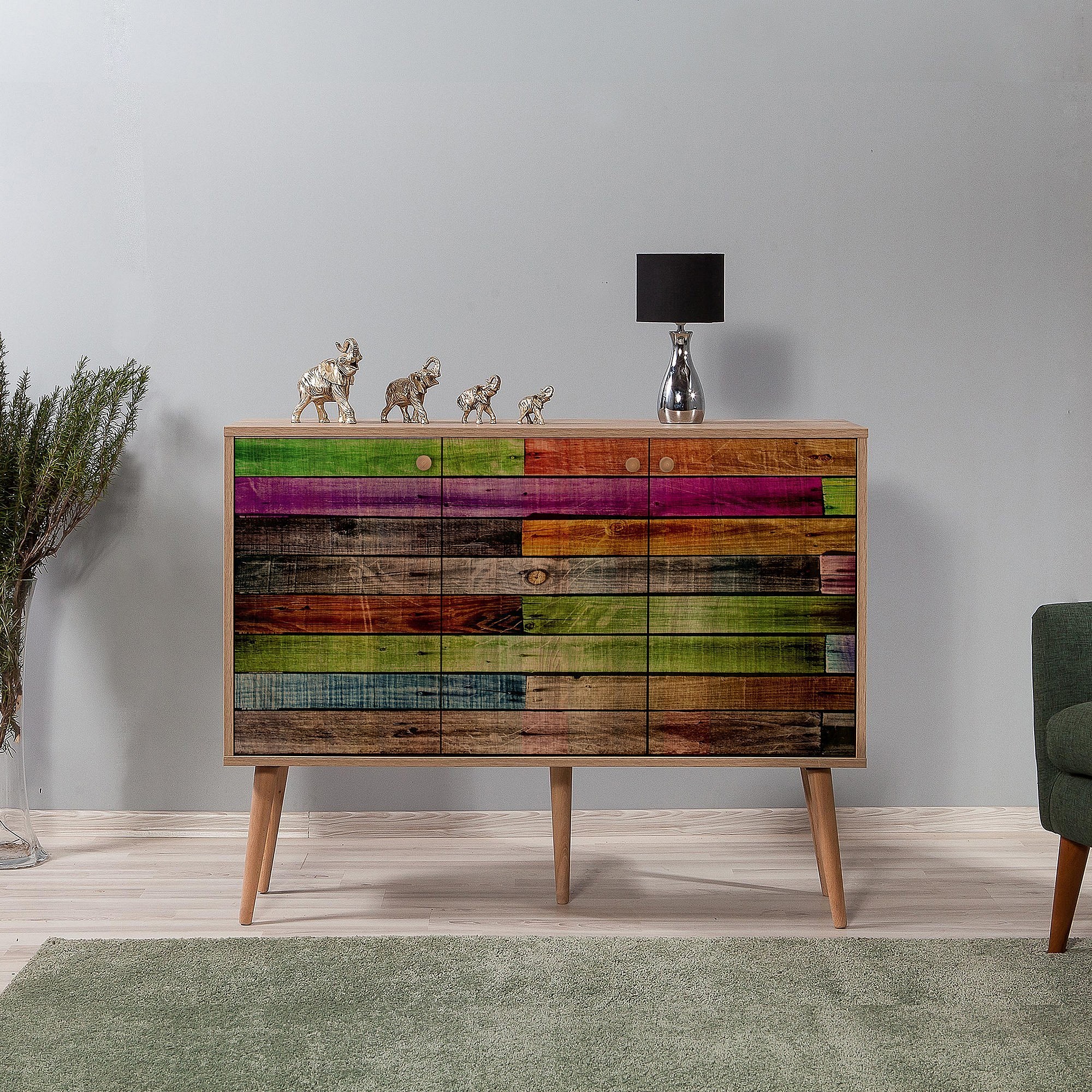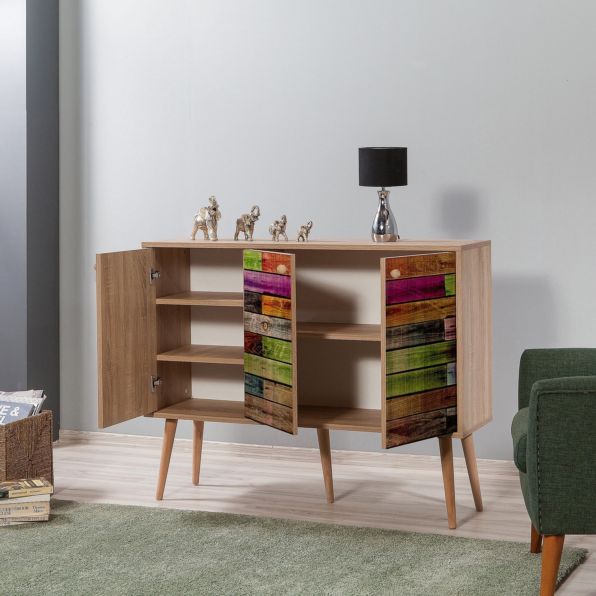 Buffet 3 portes Repono 120x90cm Bois Multicolore