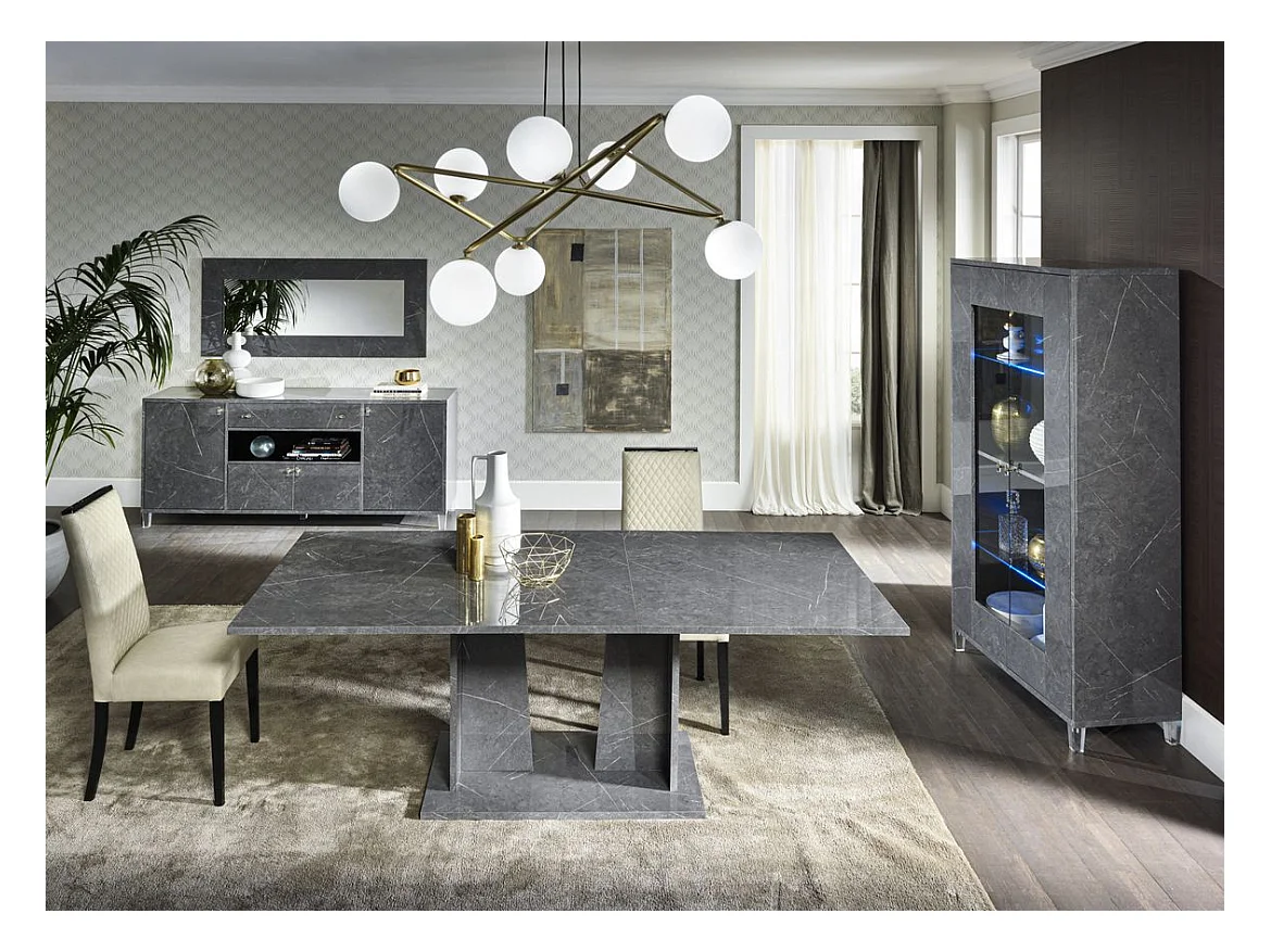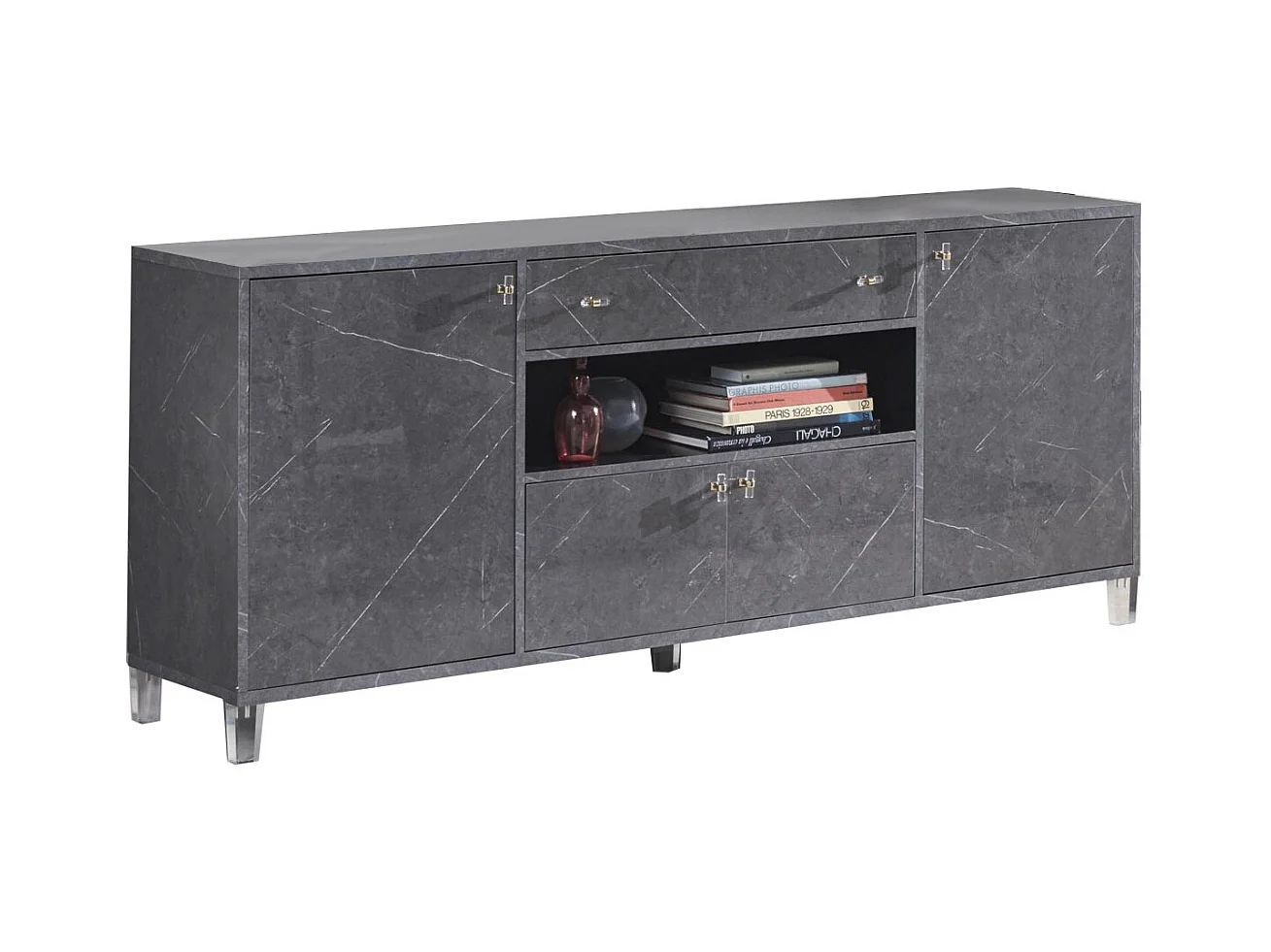 Buffet 4 portes 1 tiroir bois gris effet marbre vernis Botela 190cm
