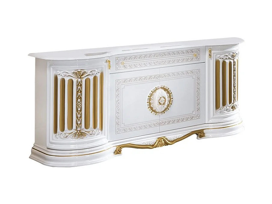 Buffet 4 portes 1 tiroir bois laqué vernis laqué brillant et doré Lesly 168cm