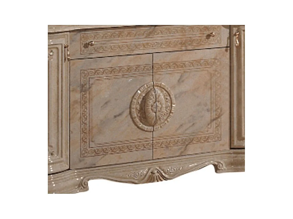 Buffet 4 portes 1 tiroir bois vernis laqué brillant beige et onyx effet marbré Lesly 168cm