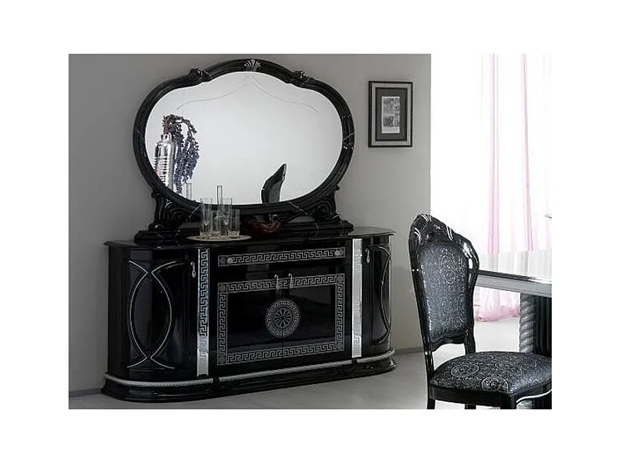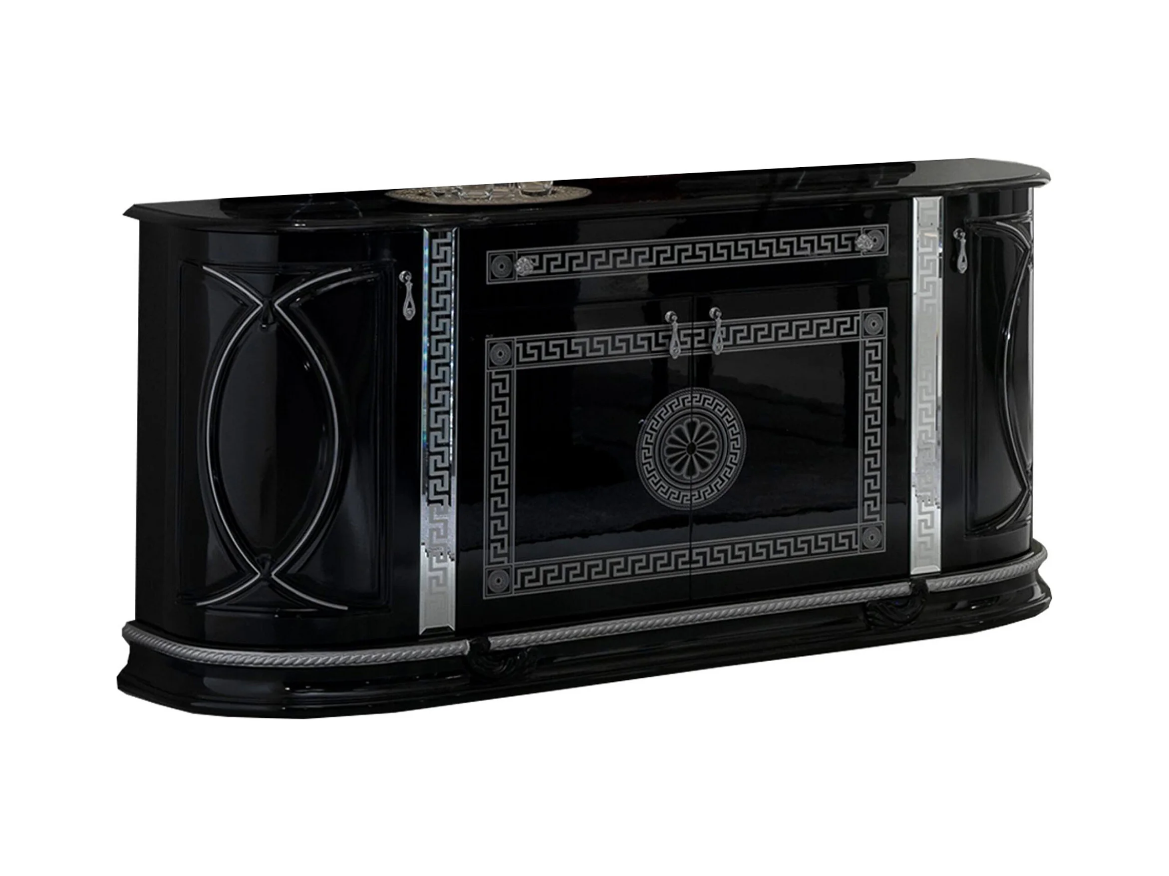 Buffet 4 portes 1 tiroir bois vernis laqué brillant noir et gris Venus 163cm