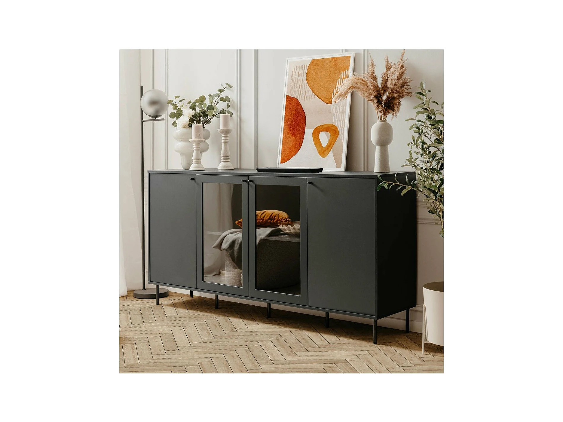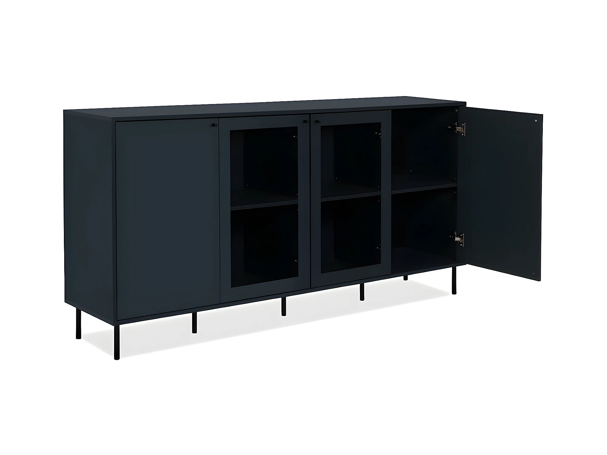 Buffet 4 Portes dont 2 Vitrées Bleu Marine L180 cm - BOGOTA