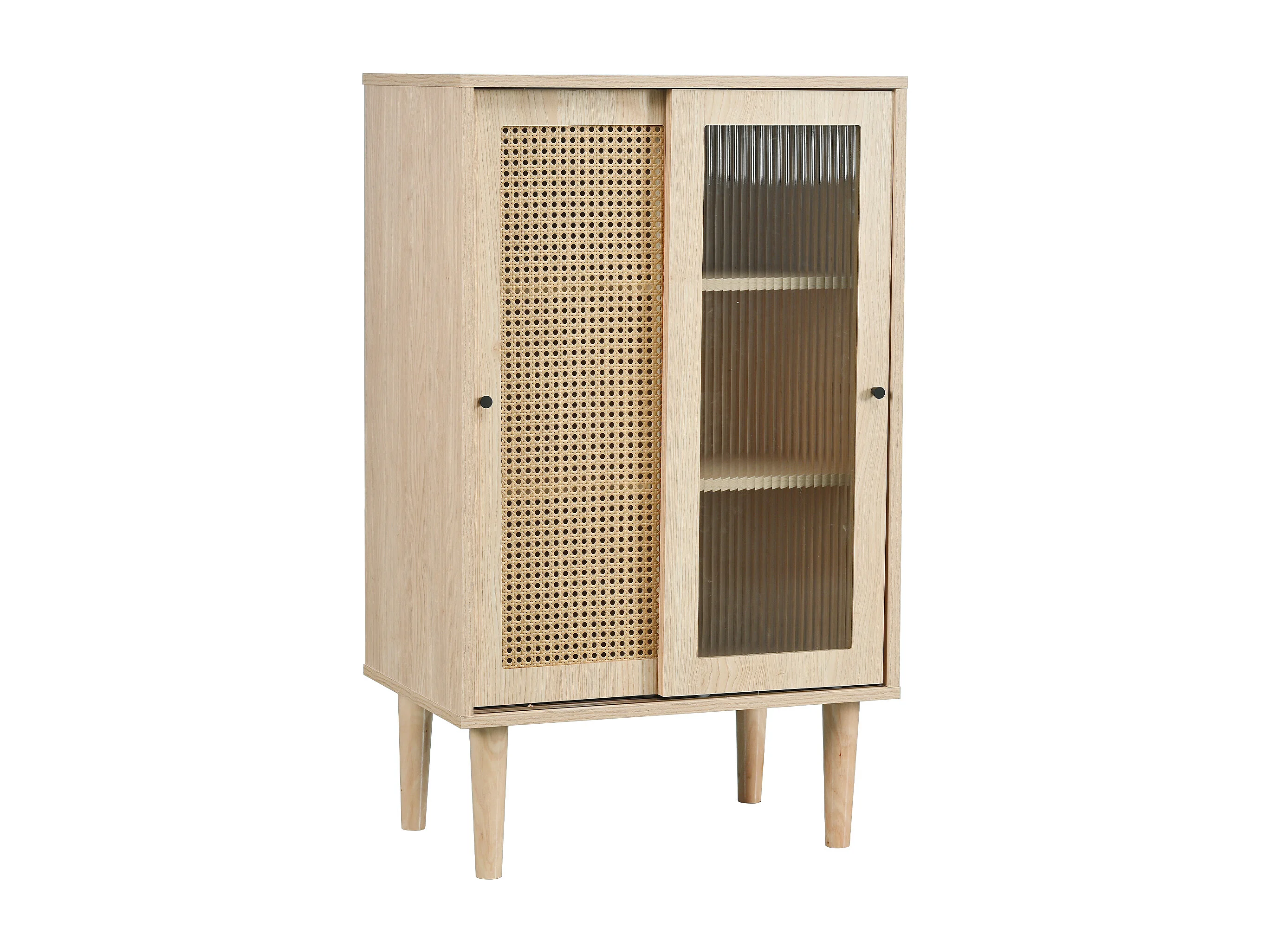 Buffet 60x40x100 cm bois 2 portes coulissantes en rotin et verre meuble de rangement - étagères réglables - chêne