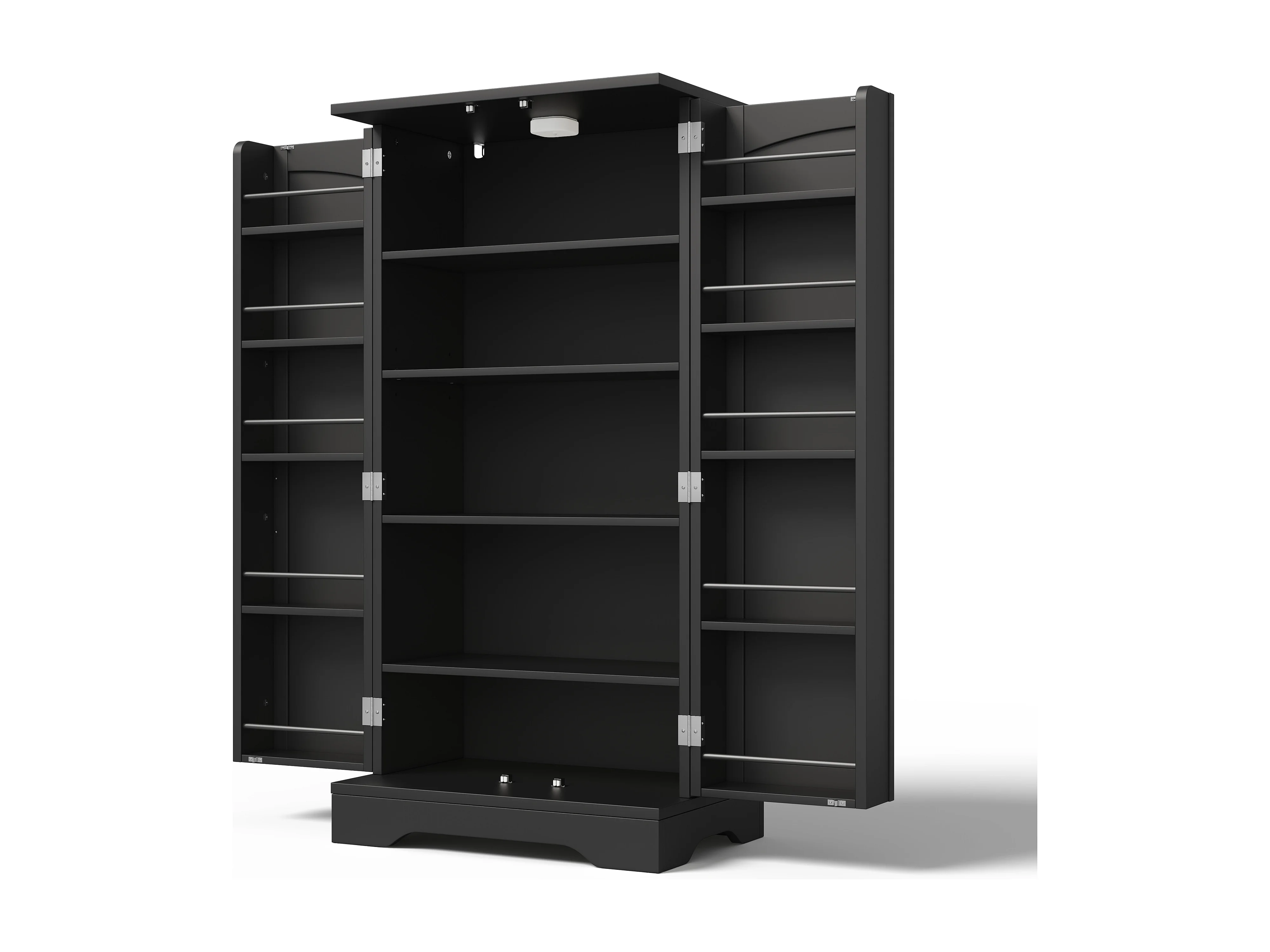 Buffet de cuisine 60x40x120.5 cm avec LED Étagères réglables et placards à double porte Matériau MDF en noir pour Salle à manger et cuisine
