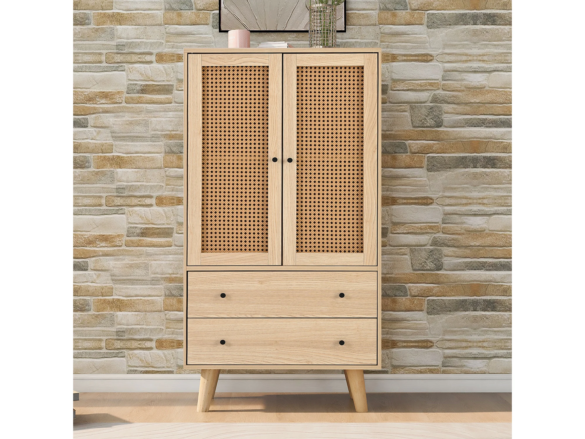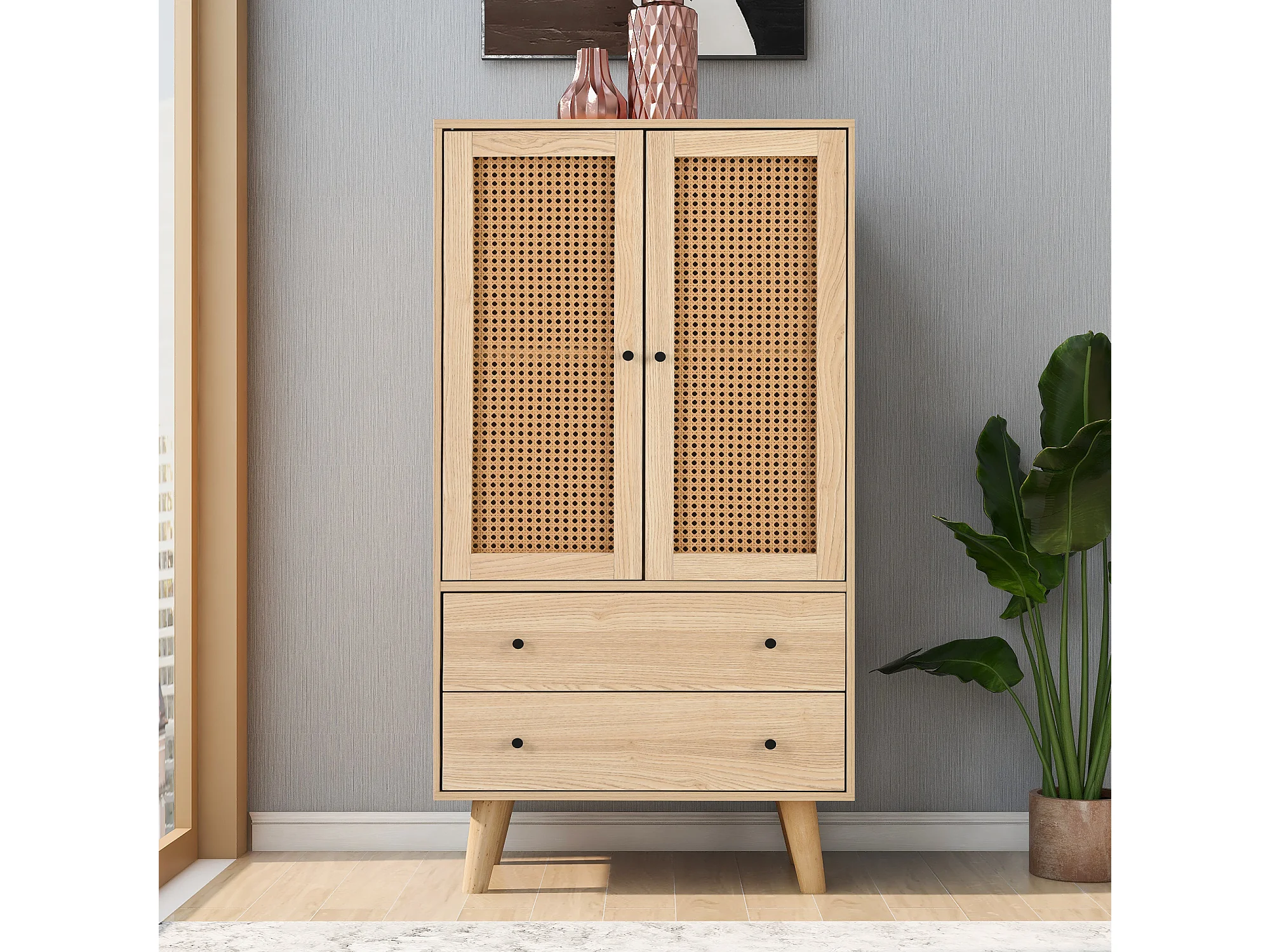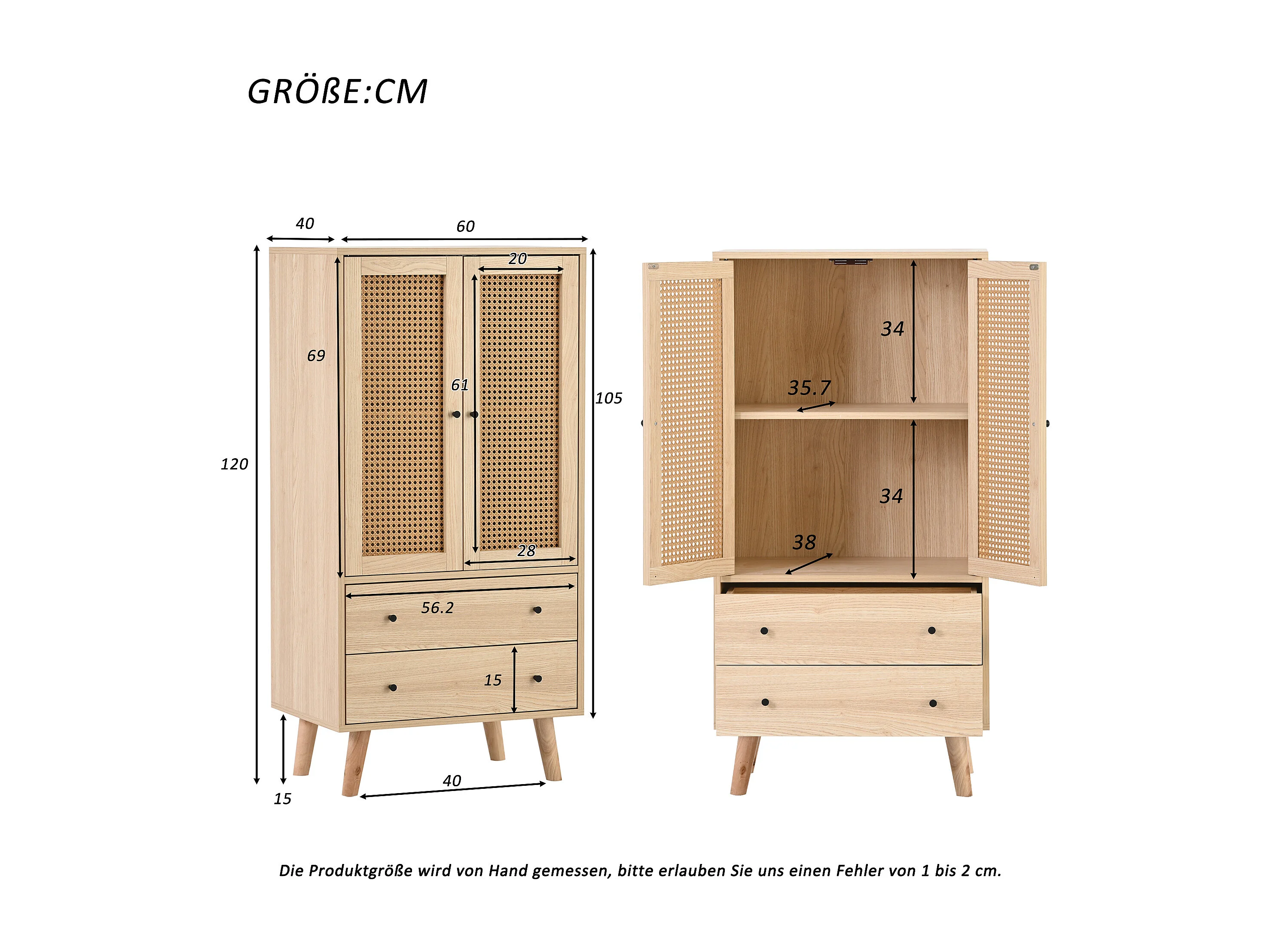 Buffet 60x40x120 cm, 2 portes et 2 tiroirs, grand espace de rangement, panneaux de particules, coloris chêne