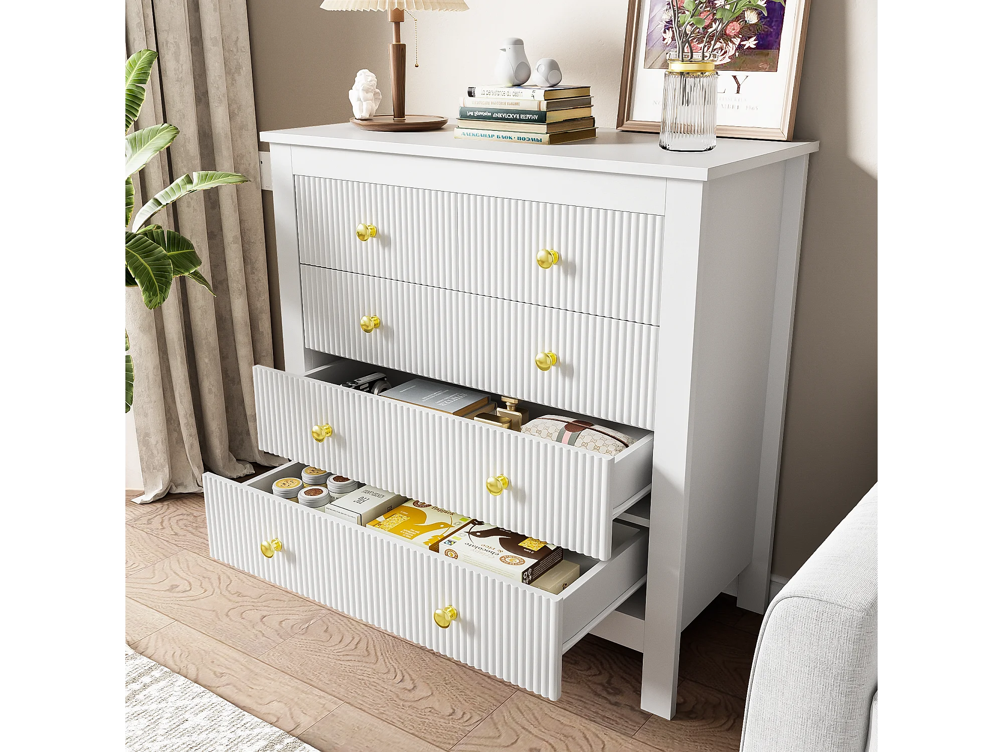 Commode Chambre Bealife 4 Tiroirs Meuble de Rangement Chambre Salon Porche Poignée Intégrée Dispositif Anti-trébuchement