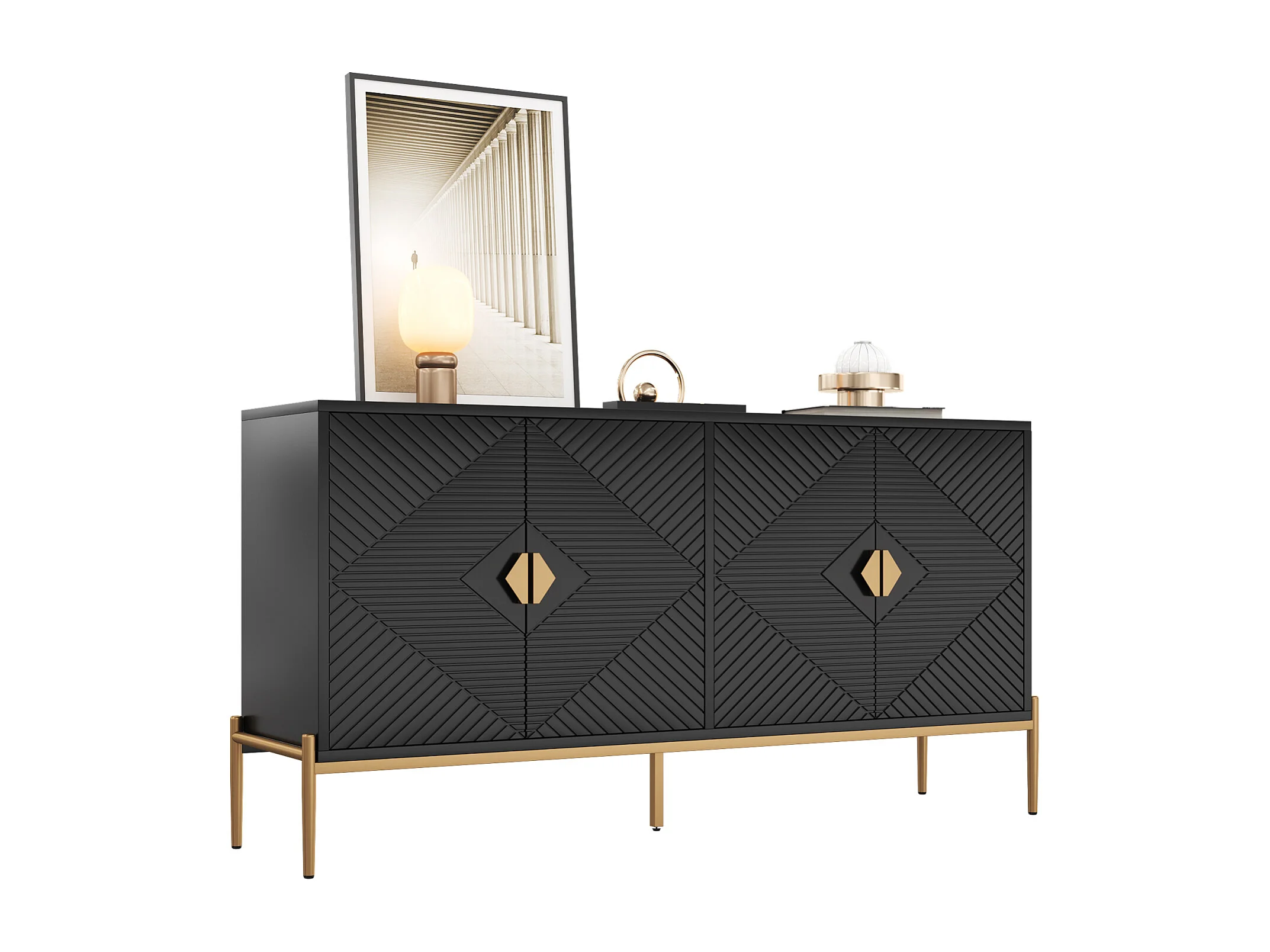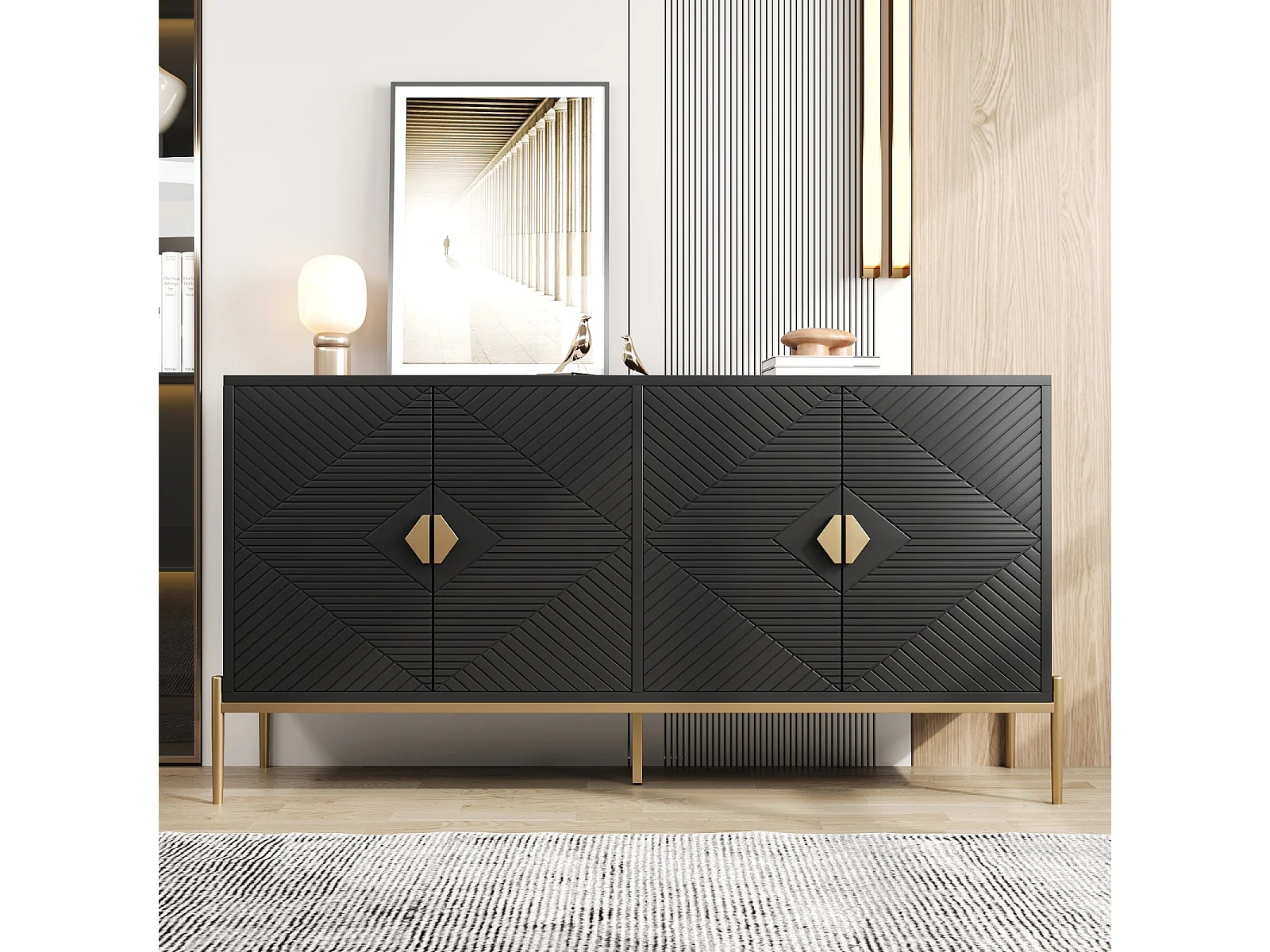 Buffet à 4 Portes, Meuble de Rangement, pour Salon Salle à Manger, Entrée, 162 x 40 x 80cm, Noir