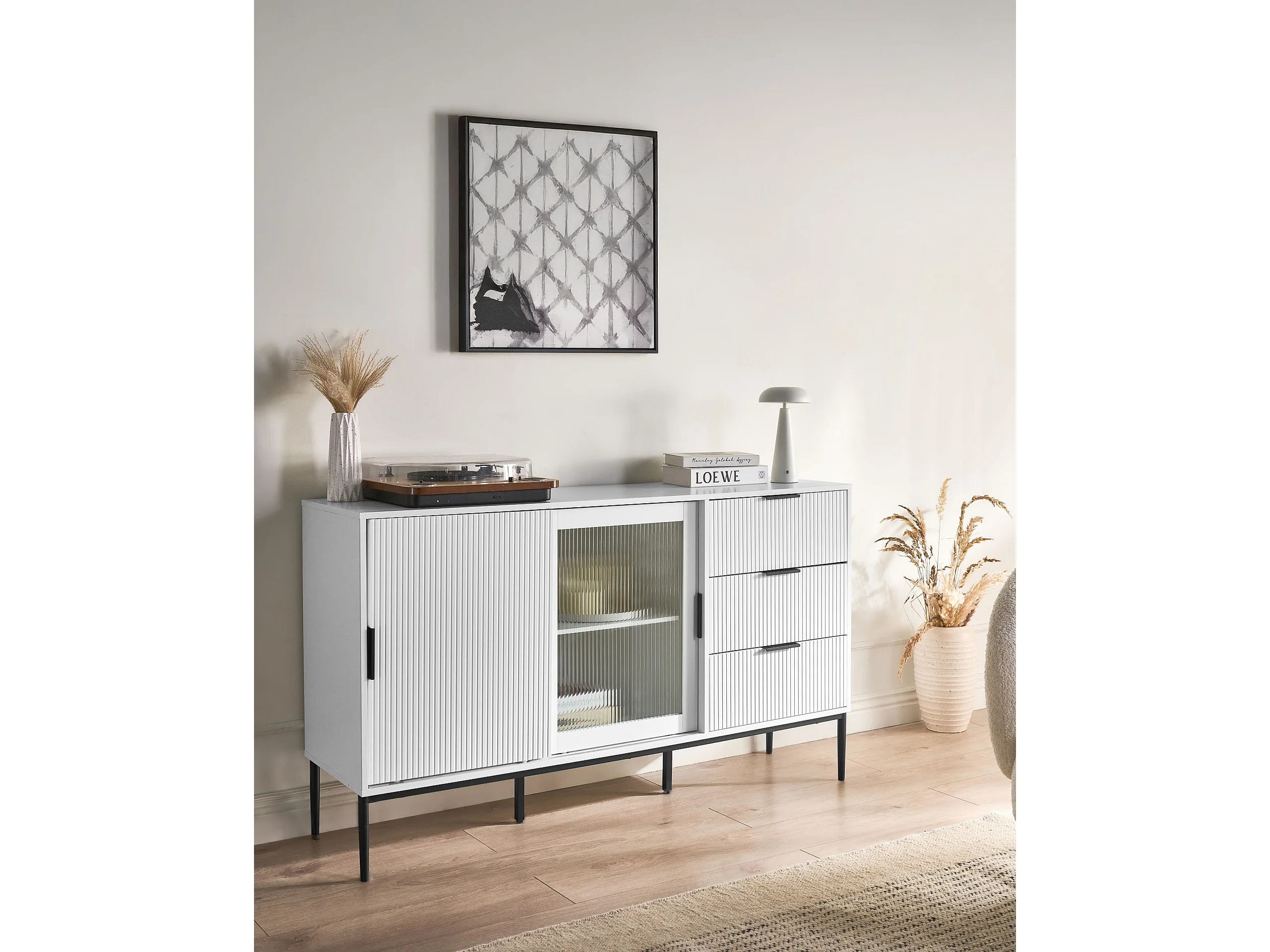 Buffet avec vitrine en verre CRABTREE 86 cm Blanc
