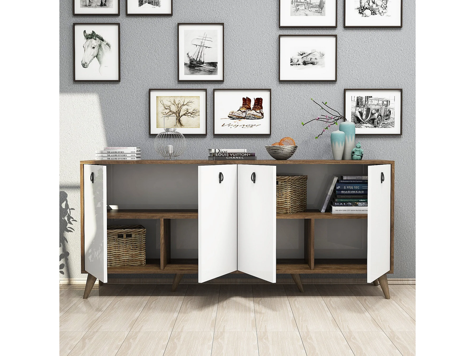 Buffet bas 4 tiroirs Bergat 180cm Bois et Blanc
