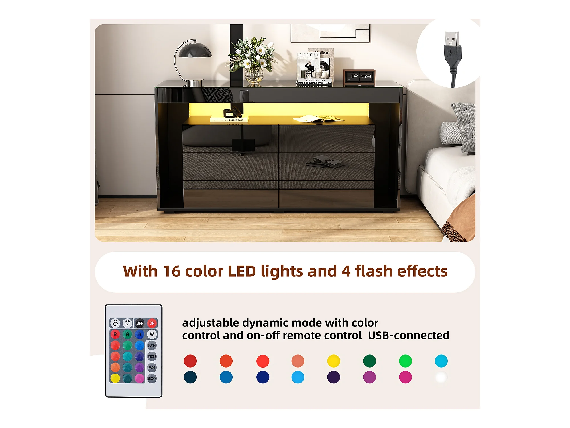 Buffet bas brillant - 150 x 40 x 80 cm - avec 1 tiroir + 4 portes - Panneau de particules + MDF - noir