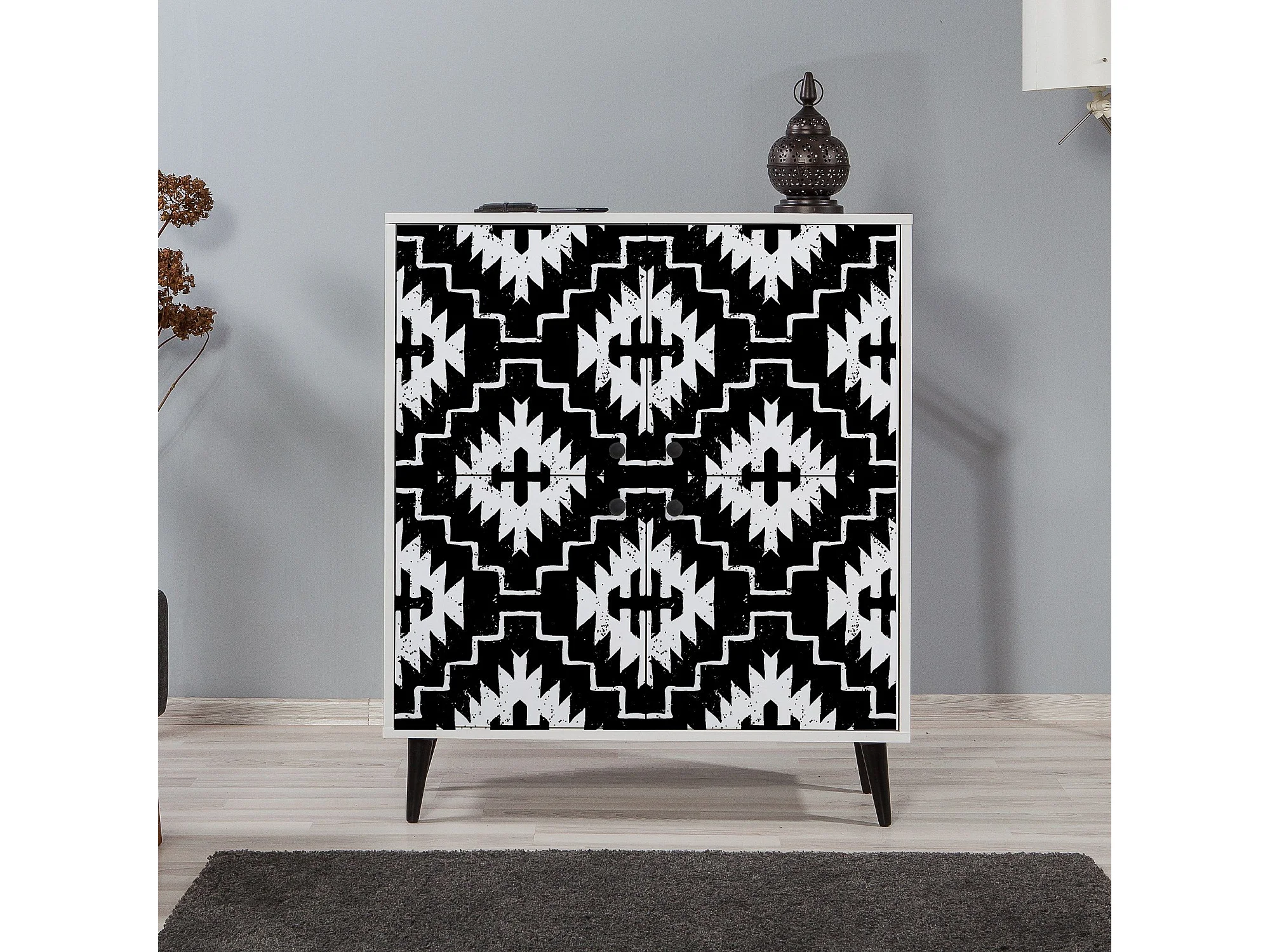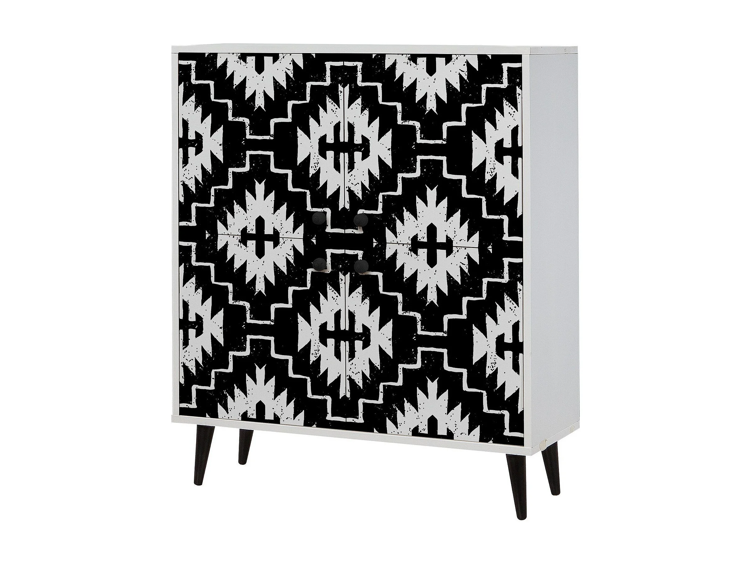Buffet bas Esdela L95xH111cm Motif Berbère Noir et Blanc