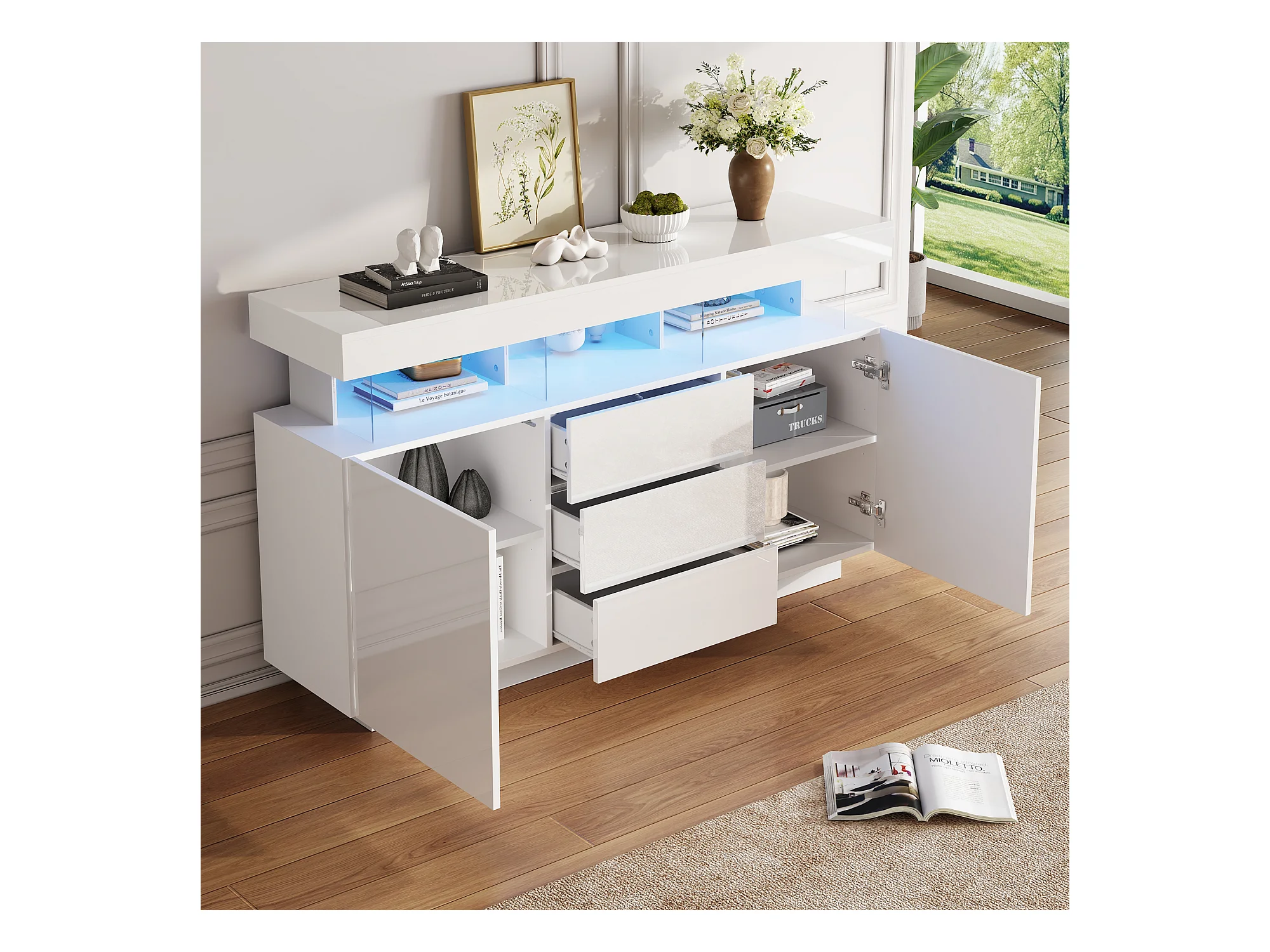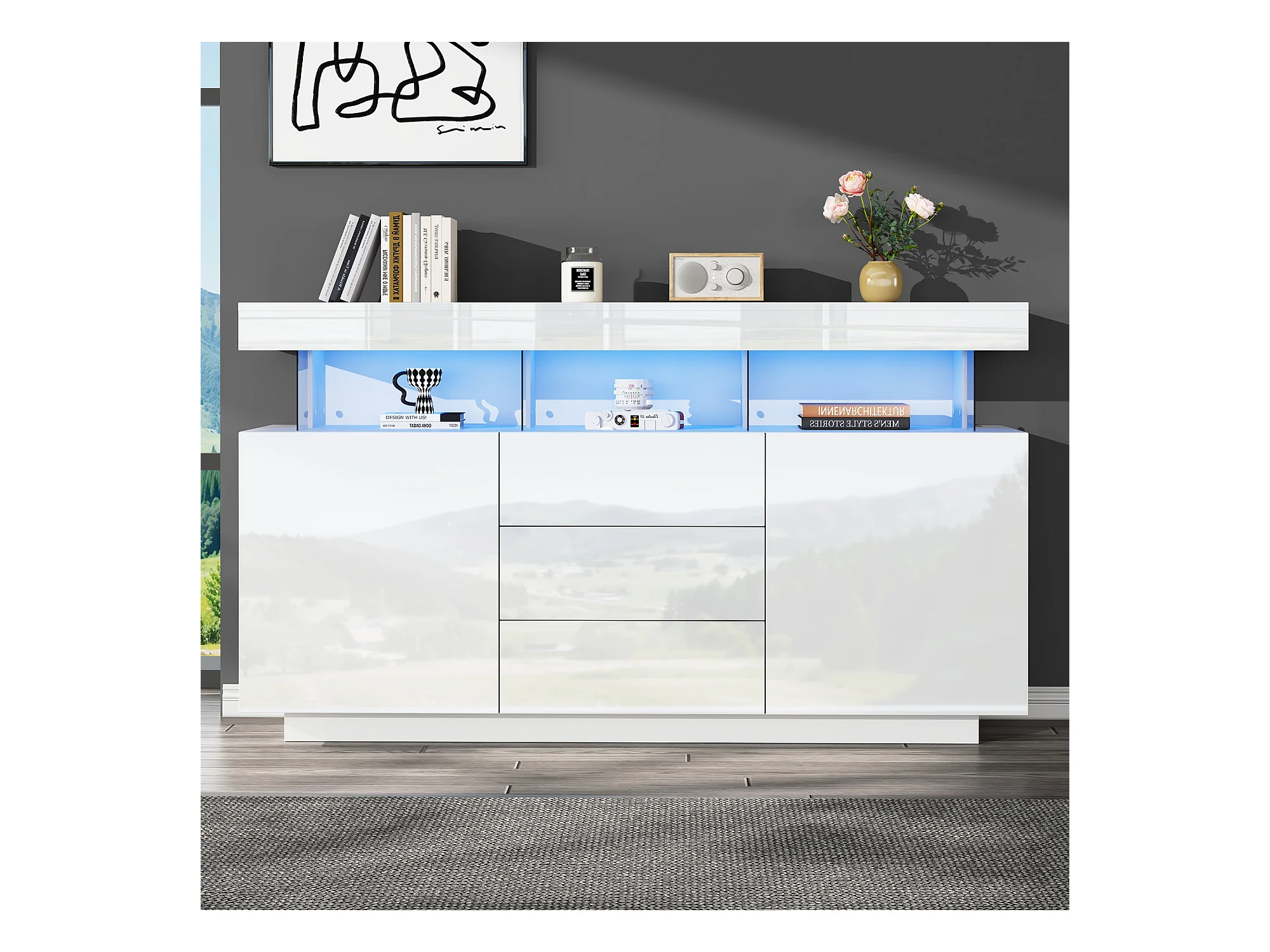 Buffet moderne - avec bande lumineuse LED 16 couleurs - 3 tiroirs - 2 portes - blanc