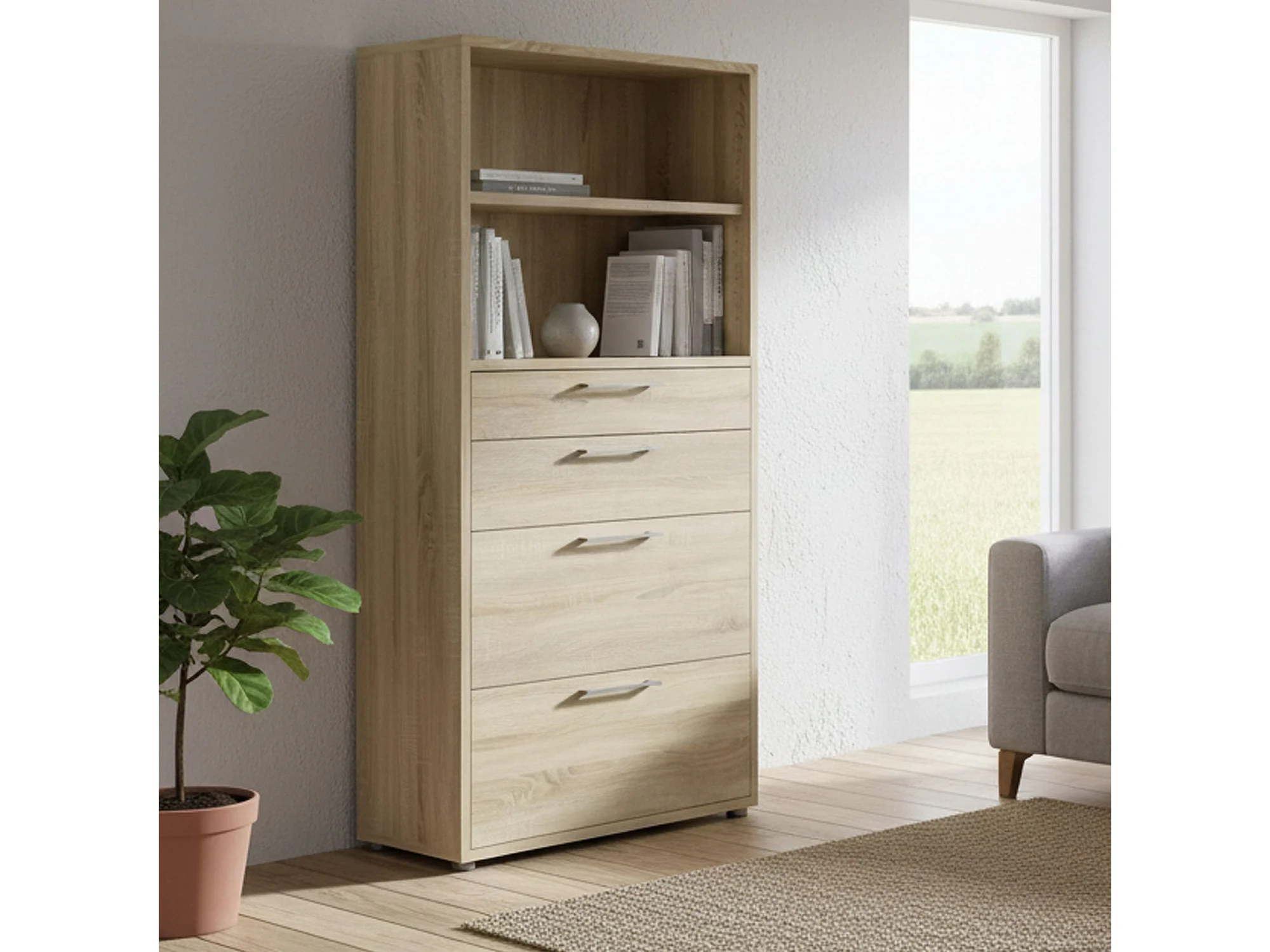 Buffet Ciudad, Buffet du salon, Commode de salon, Garde-manger de cuisine, 89x40 h186 cm, Chêne