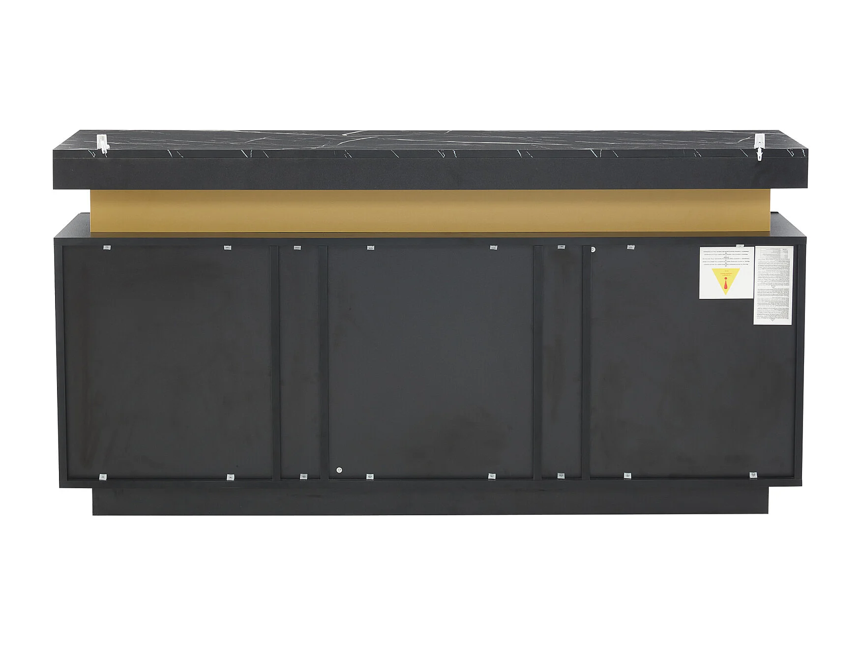 Buffet de cuisine à 3 portes et plateau de table à motif marbré pour salon, chambre à coucher, noir
