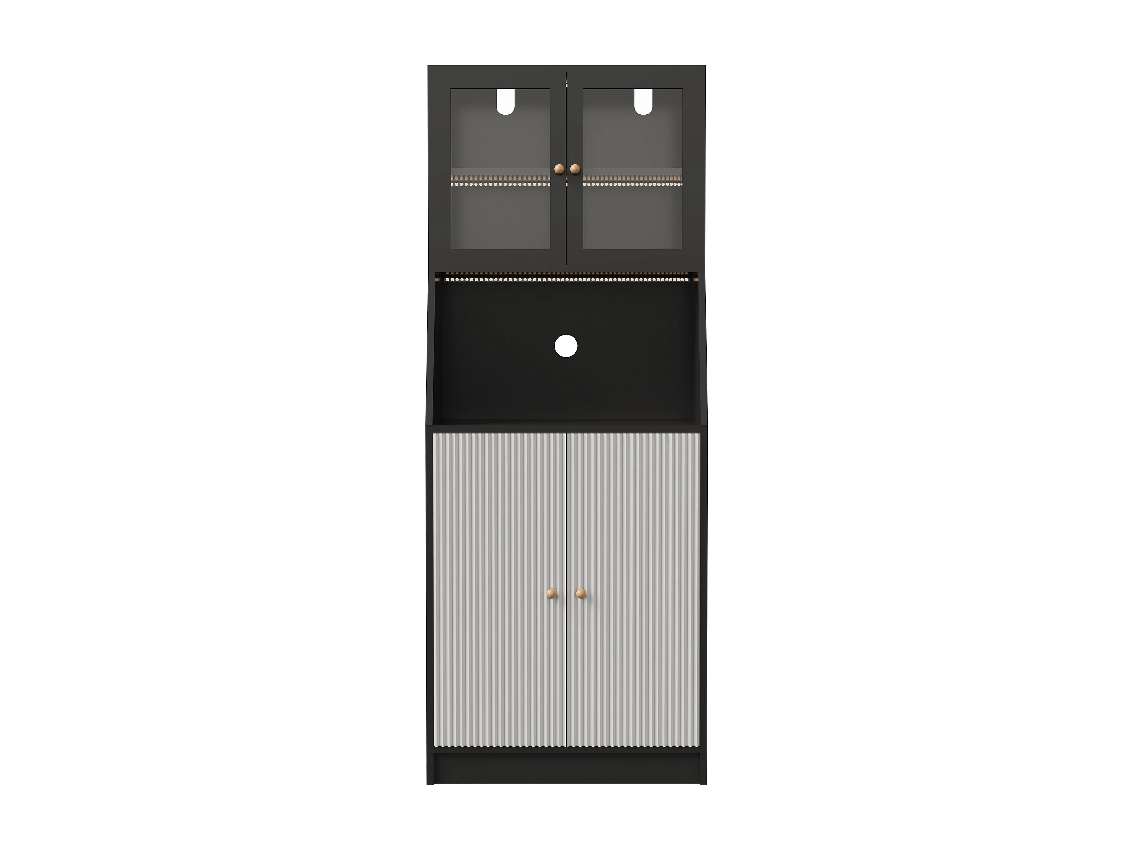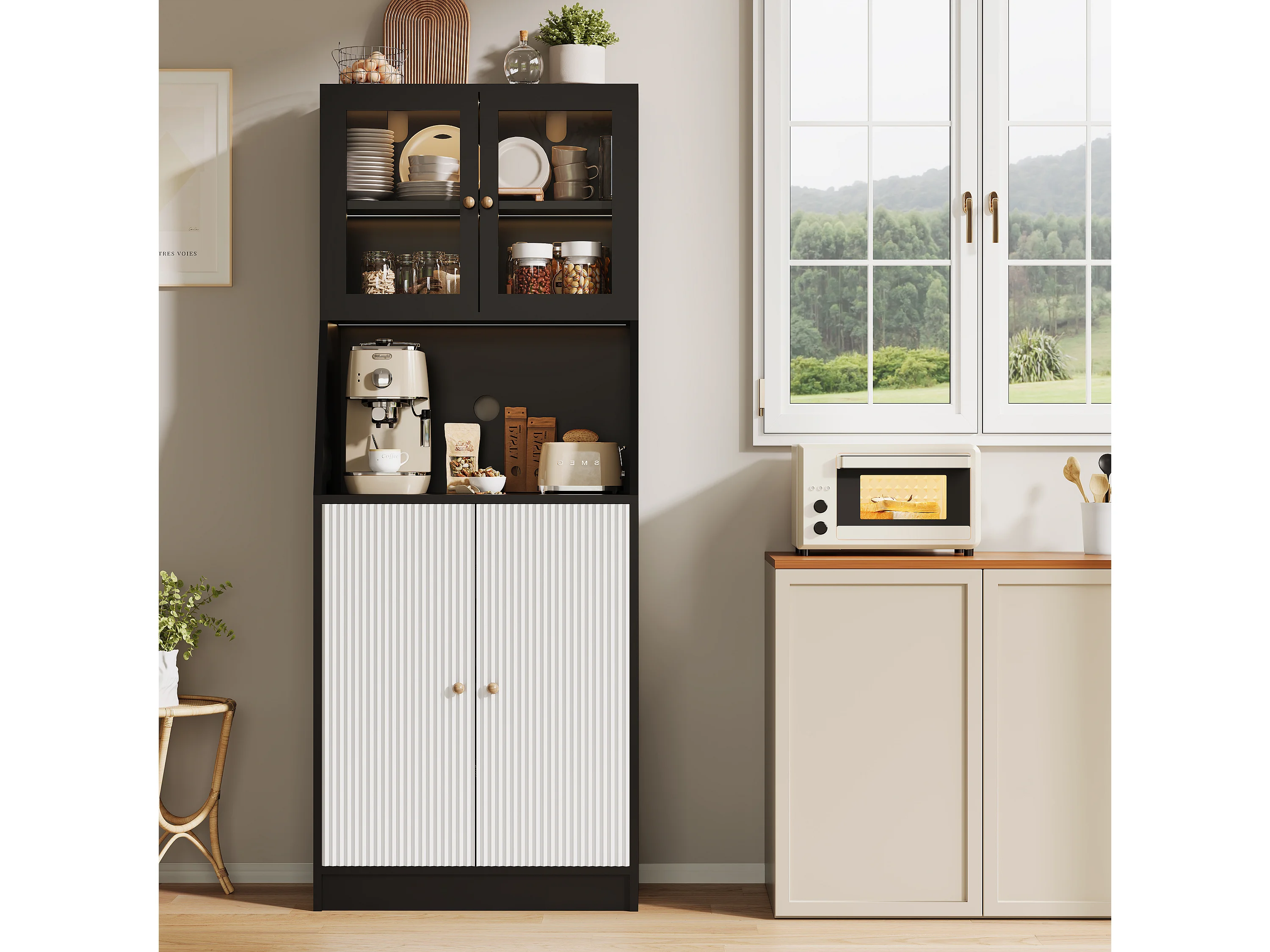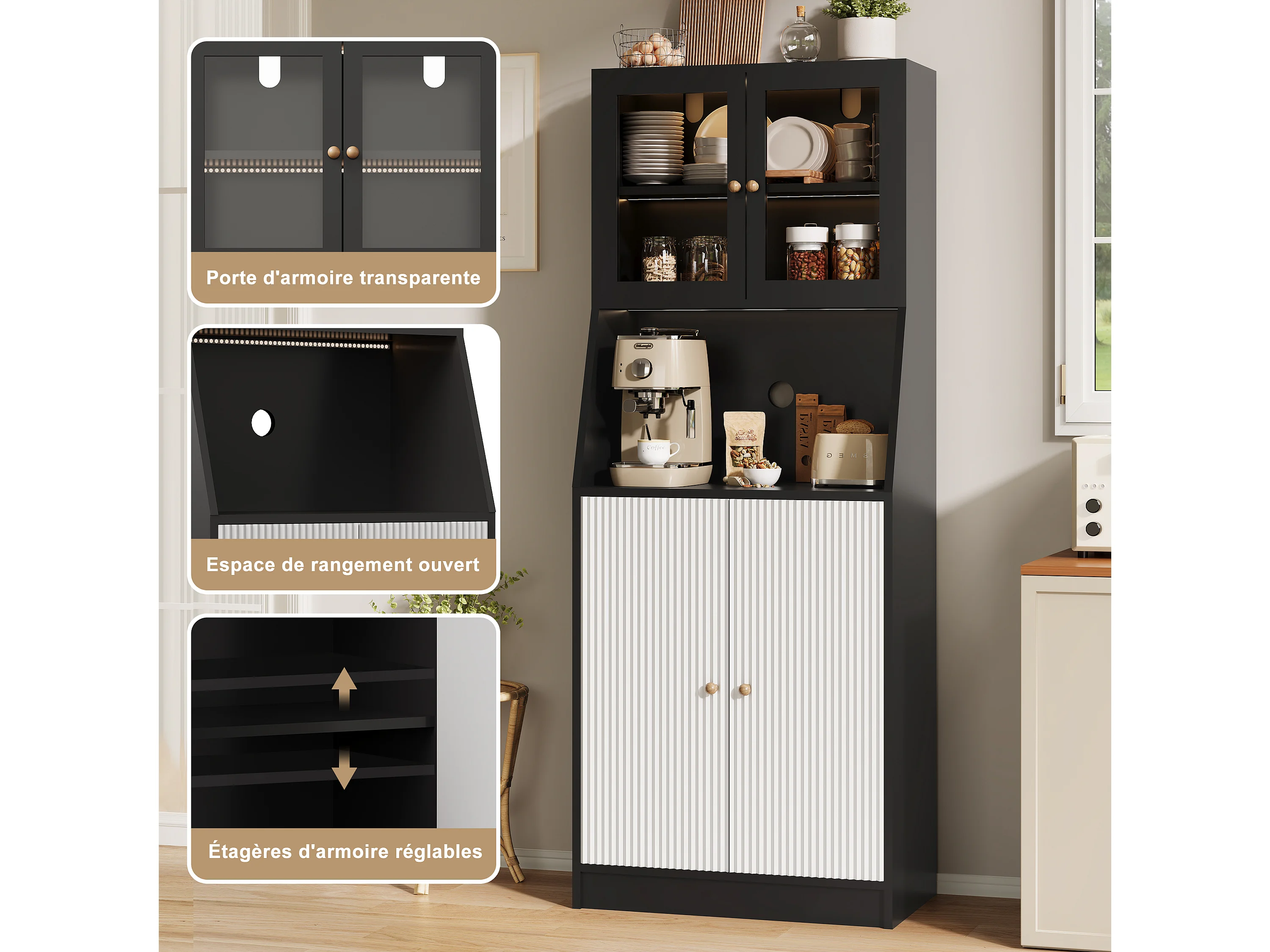 Buffet de cuisine - 4 portes et 2 tiroirs - Étagères et casiers à vin réglables - Noir