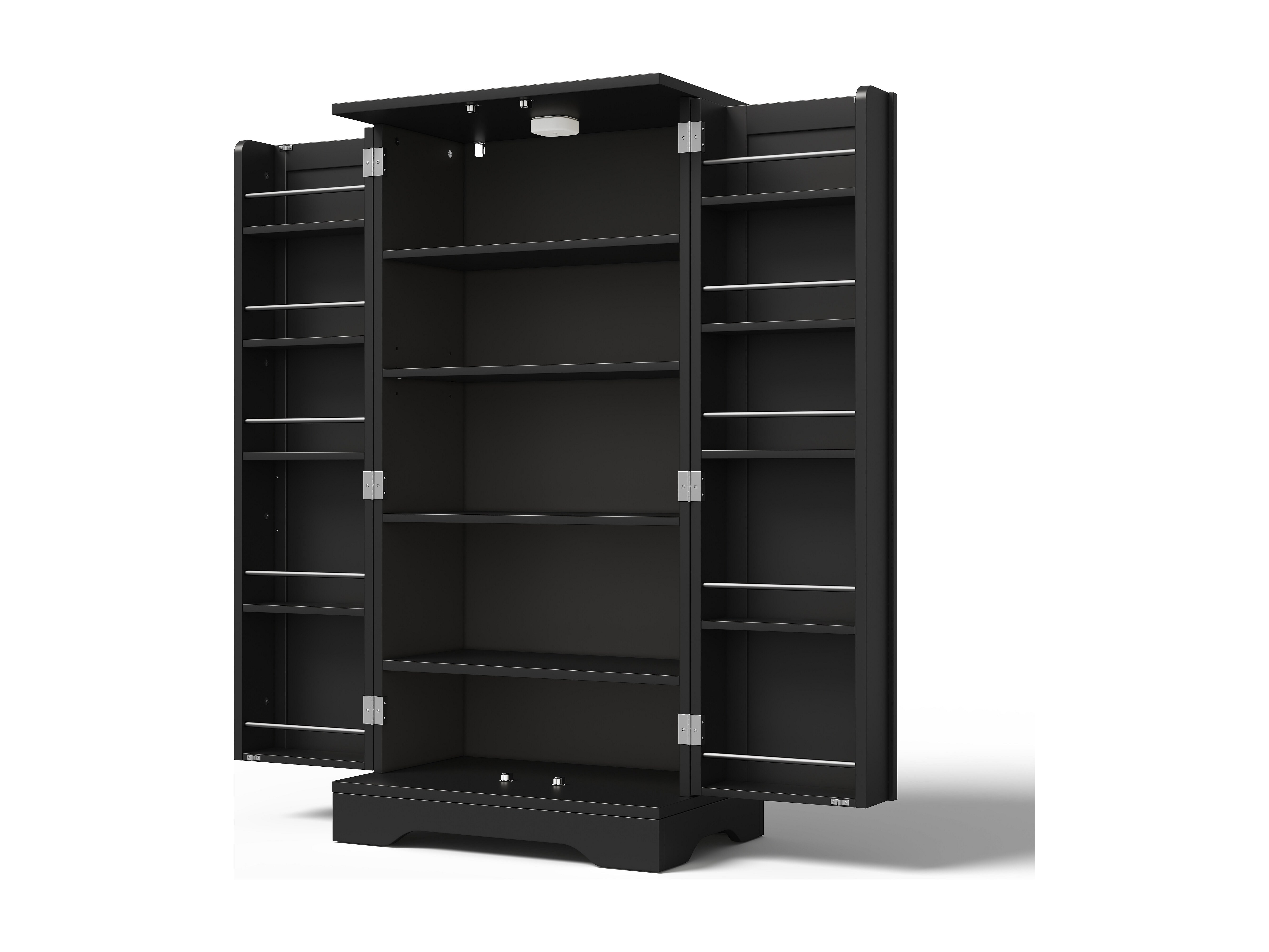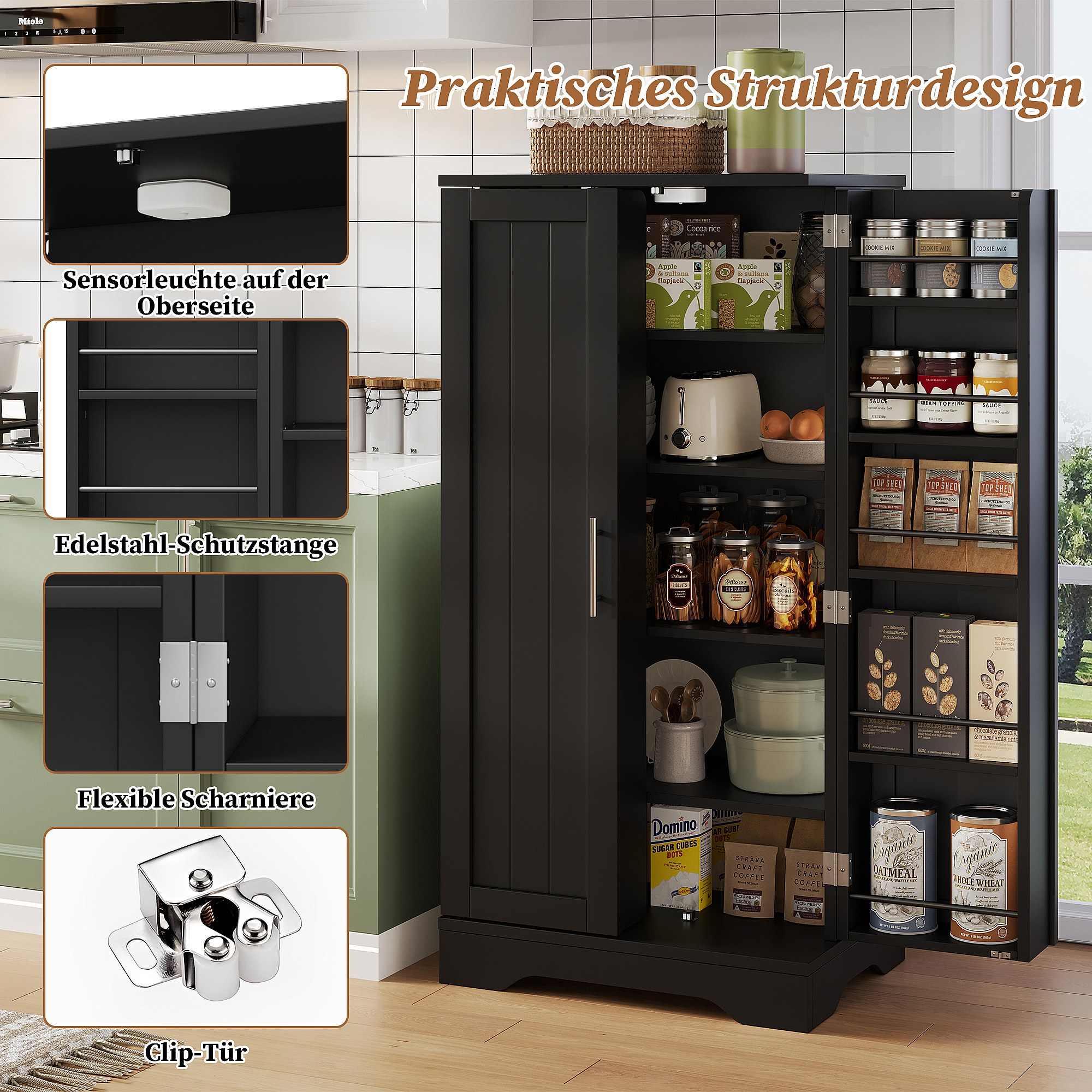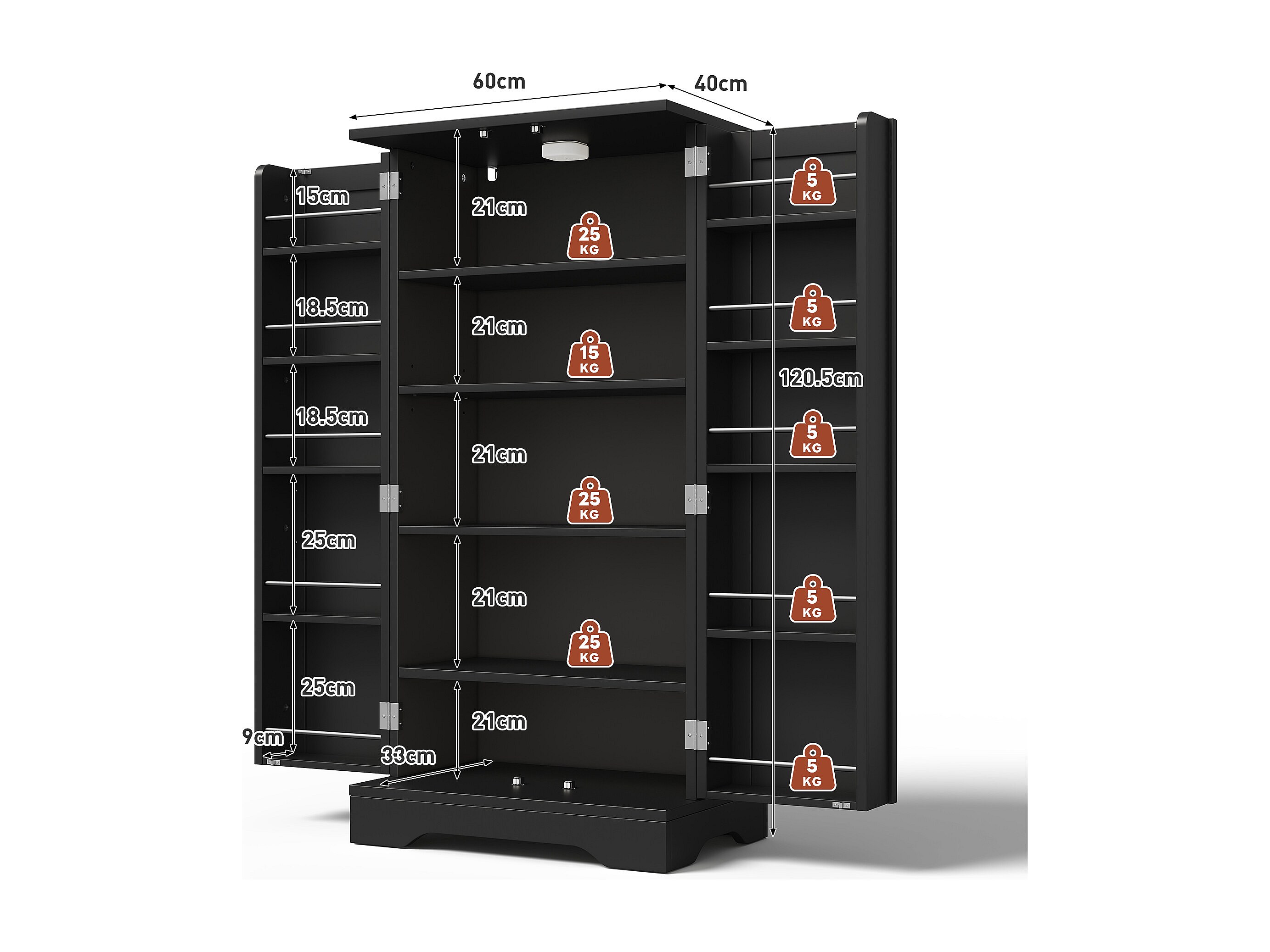 Buffet de cuisine haut - 60 x 40 x 120 cm - avec Leds + 2 portes avec étagères réglables et étagères de porte - MDF - noir