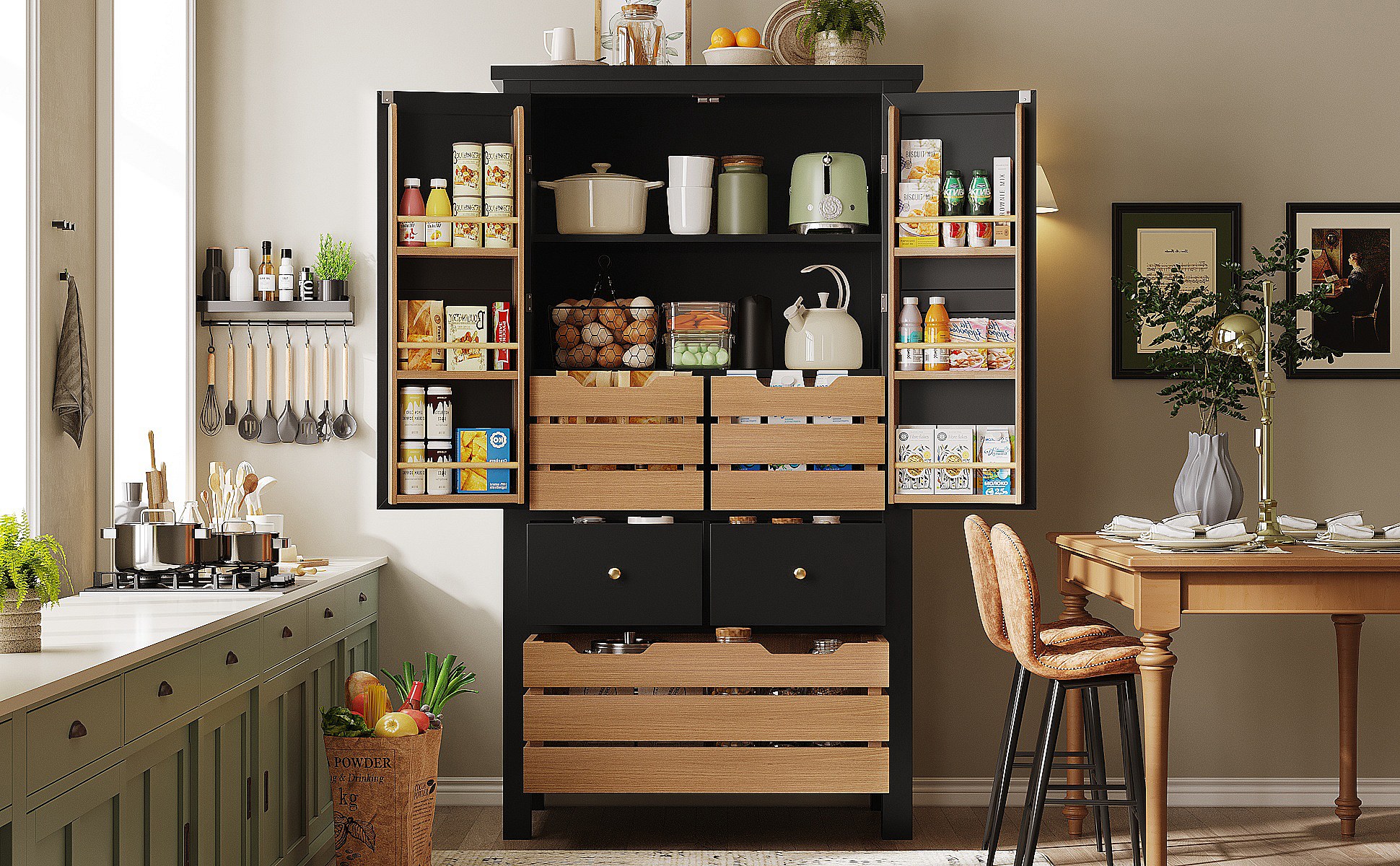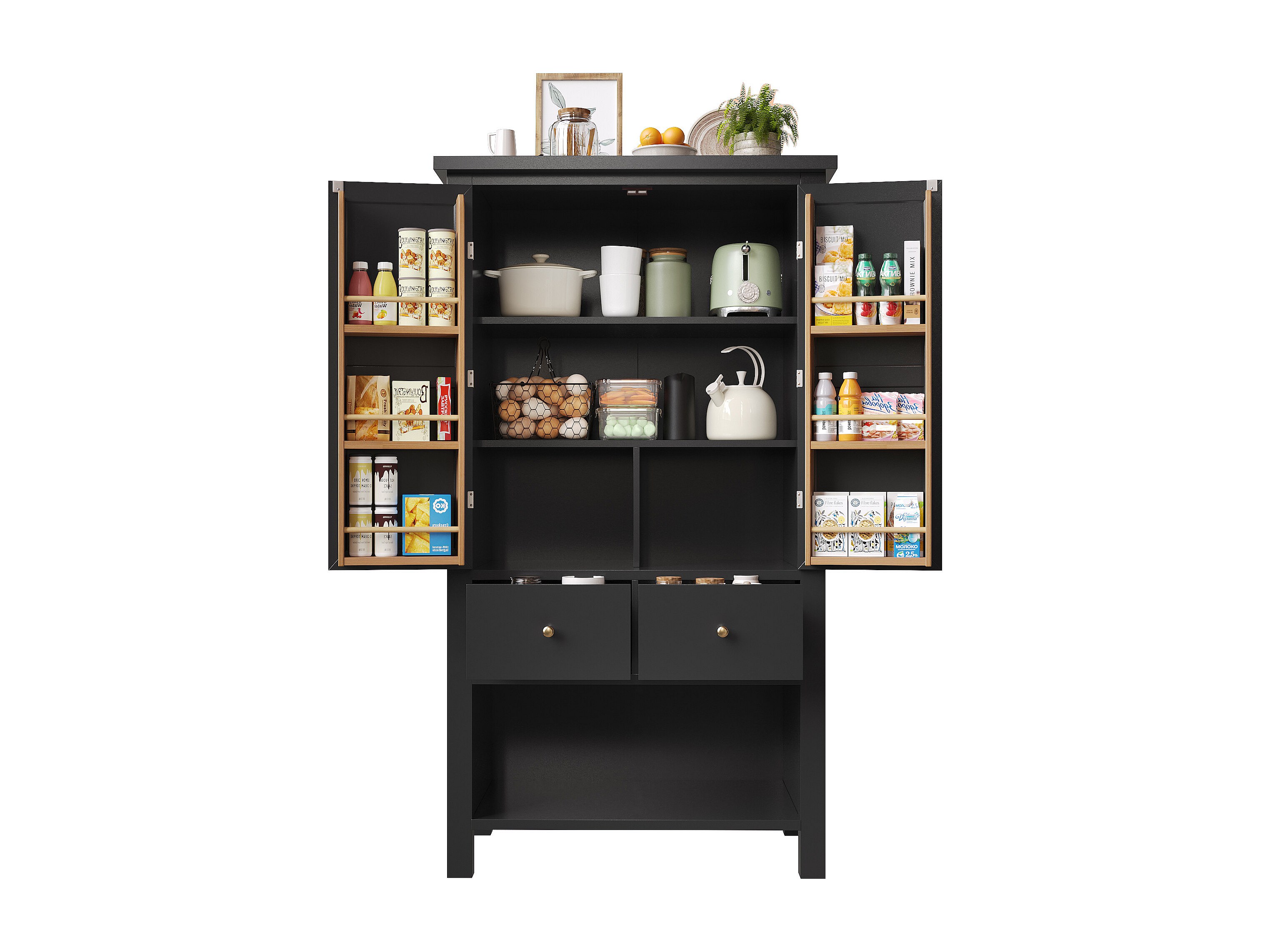Buffet de cuisine avec 4 portes et 1 tiroir - 80 x 40 x 182 cm - étagères réglables - Bois MDF - Noir