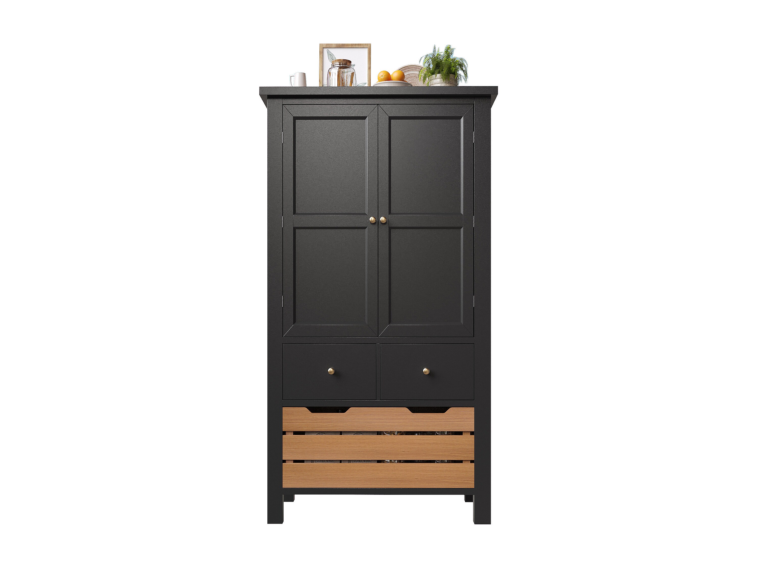 Buffet de cuisine - 120 x 40 x 188 cm - avec étagères réglables + casier à vin + 4 portes + 2 tiroirs - MDF - noir