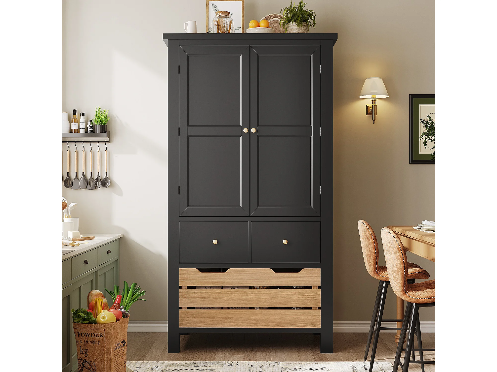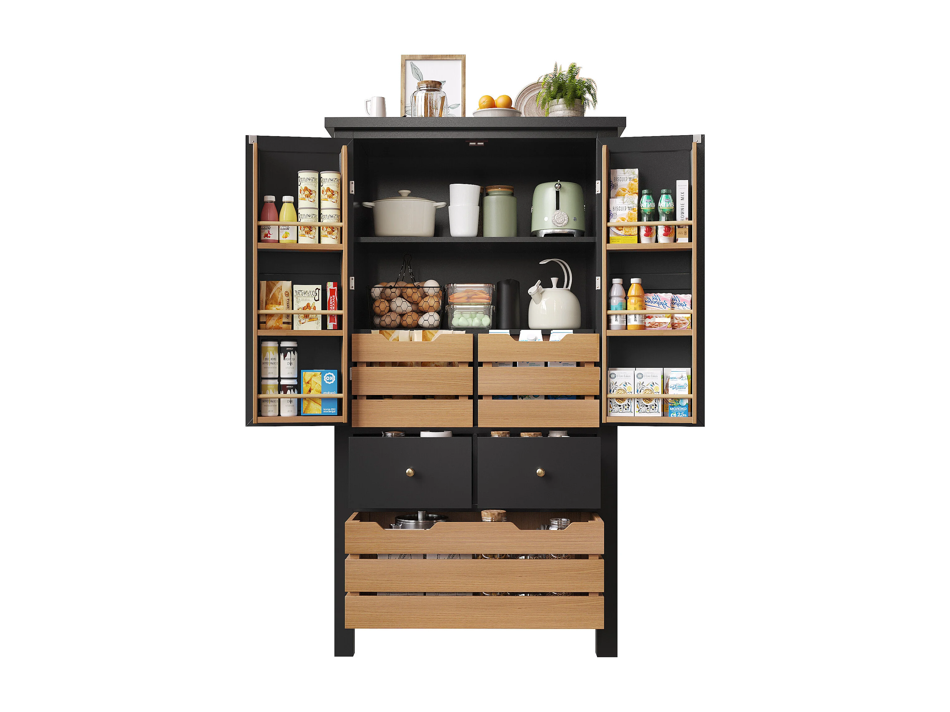 Buffet de cuisine haut - 80 x 40 x 140 cm - meuble de rangement avec 2 portes + 5 tiroirs - MDF - noir